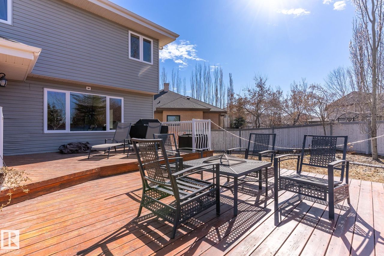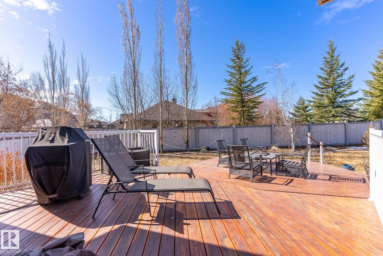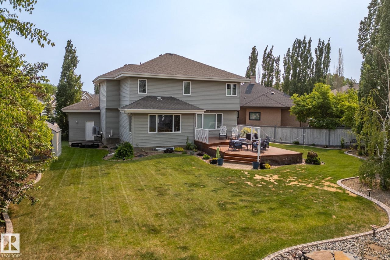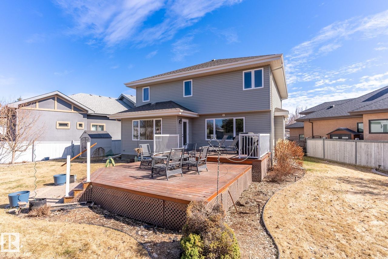 PREMIUM EXECUTIVE beautifully crafted custom home in Lacombe Park Estates, offering over 3,500 sq. ft. of finished living space on a quiet cul-de-sac. Nestled on a sun-soaked massive pie-shaped lot, enjoy your private backyard oasis with a two-tier deck, pond, fountains, and stunning landscaping. Step inside to a warm and welcoming layout with 4 bedrooms plus den, 4 bathrooms, a chef’s kitchen with granite counters and abundant cabinetry, and a spacious family room with a stone gas fireplace. The main floor also features a bright den and elegant crown mouldings throughout. Retreat to the large primary suite with a spa-inspired ensuite and jetted tub. The fully finished basement is perfect for entertaining, with a rec room, wet bar, gas fireplace, and 9' ceilings. Some upgrades include new furnace in 2025, paint and flooring. Central A/C, natural light throughout, oversized insulated triple garage, and exposed aggregate driveway complete this exceptional home! SIMPLY GORGEOUS!