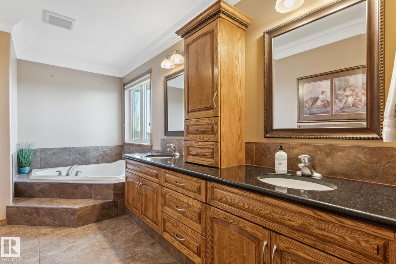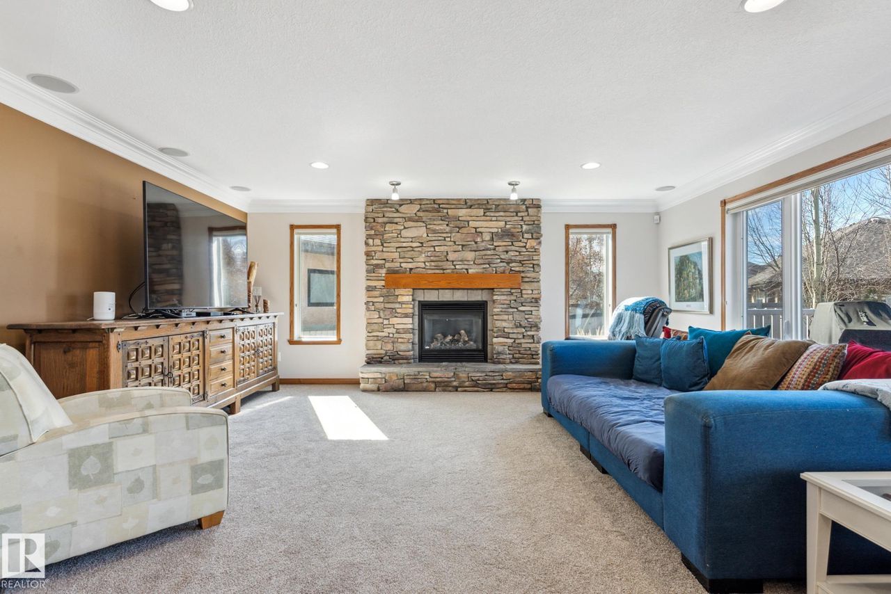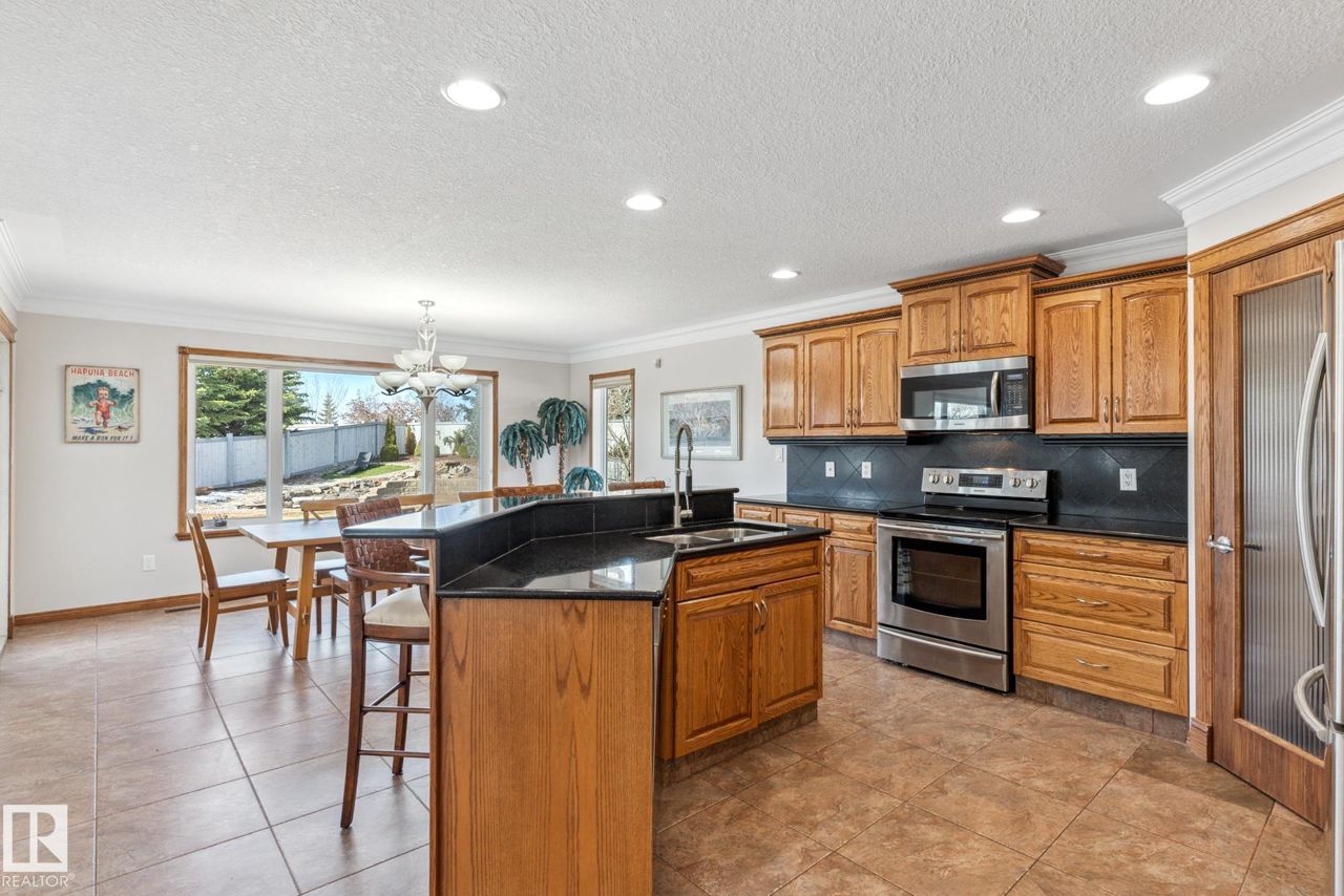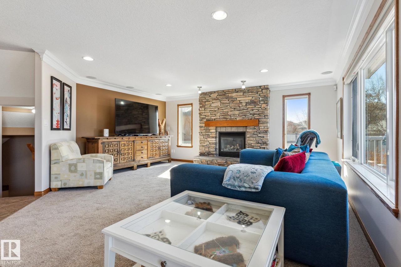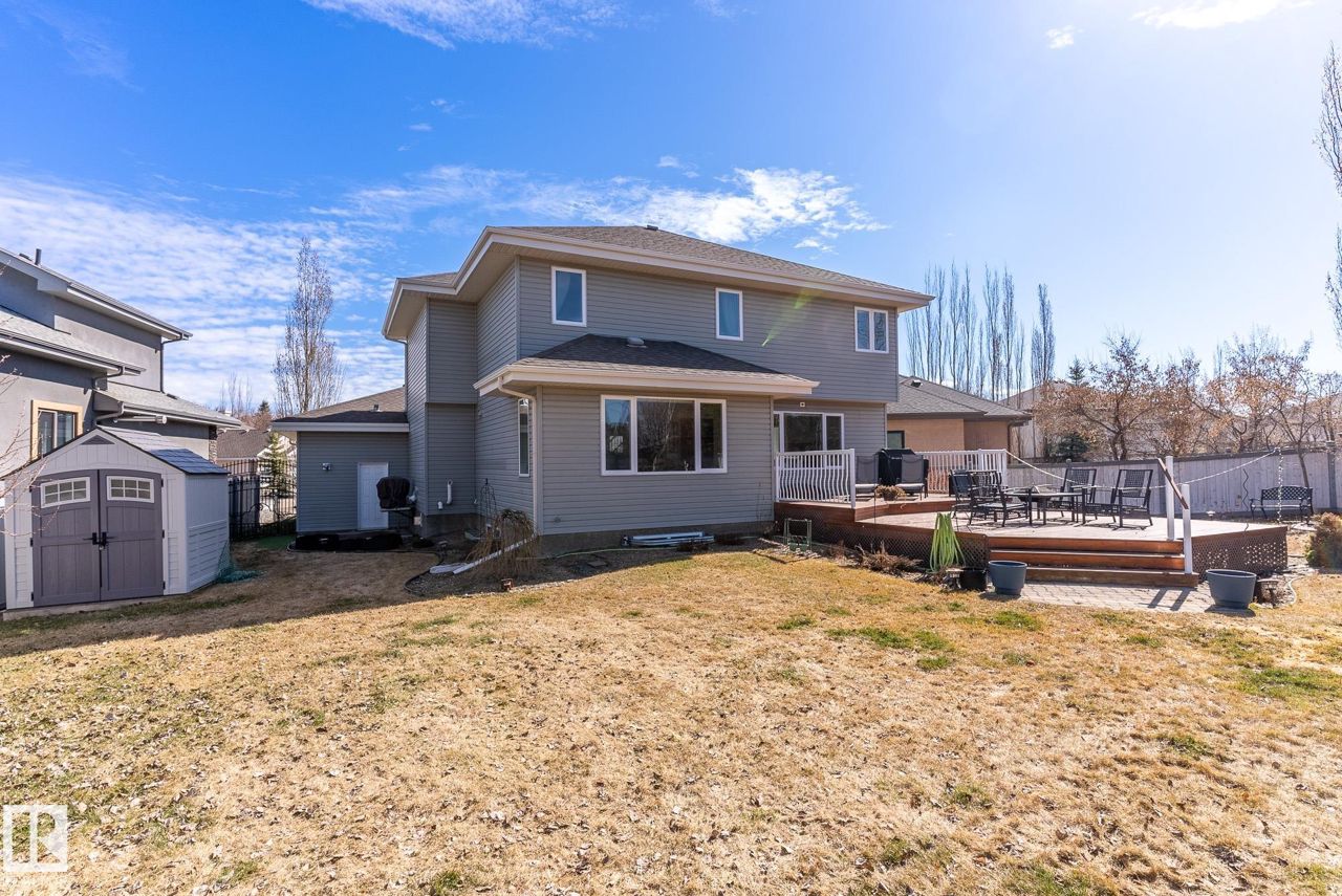 PREMIUM EXECUTIVE beautifully crafted custom home in Lacombe Park Estates, offering over 3,500 sq. ft. of finished living space on a quiet cul-de-sac. Nestled on a sun-soaked massive pie-shaped lot, enjoy your private backyard oasis with a two-tier deck, pond, fountains, and stunning landscaping. Step inside to a warm and welcoming layout with 4 bedrooms plus den, 4 bathrooms, a chef’s kitchen with granite counters and abundant cabinetry, and a spacious family room with a stone gas fireplace. The main floor also features a bright den and elegant crown mouldings throughout. Retreat to the large primary suite with a spa-inspired ensuite and jetted tub. The fully finished basement is perfect for entertaining, with a rec room, wet bar, gas fireplace, and 9' ceilings. Some upgrades include new furnace in 2025, paint and flooring. Central A/C, natural light throughout, oversized insulated triple garage, and exposed aggregate driveway complete this exceptional home! SIMPLY GORGEOUS!