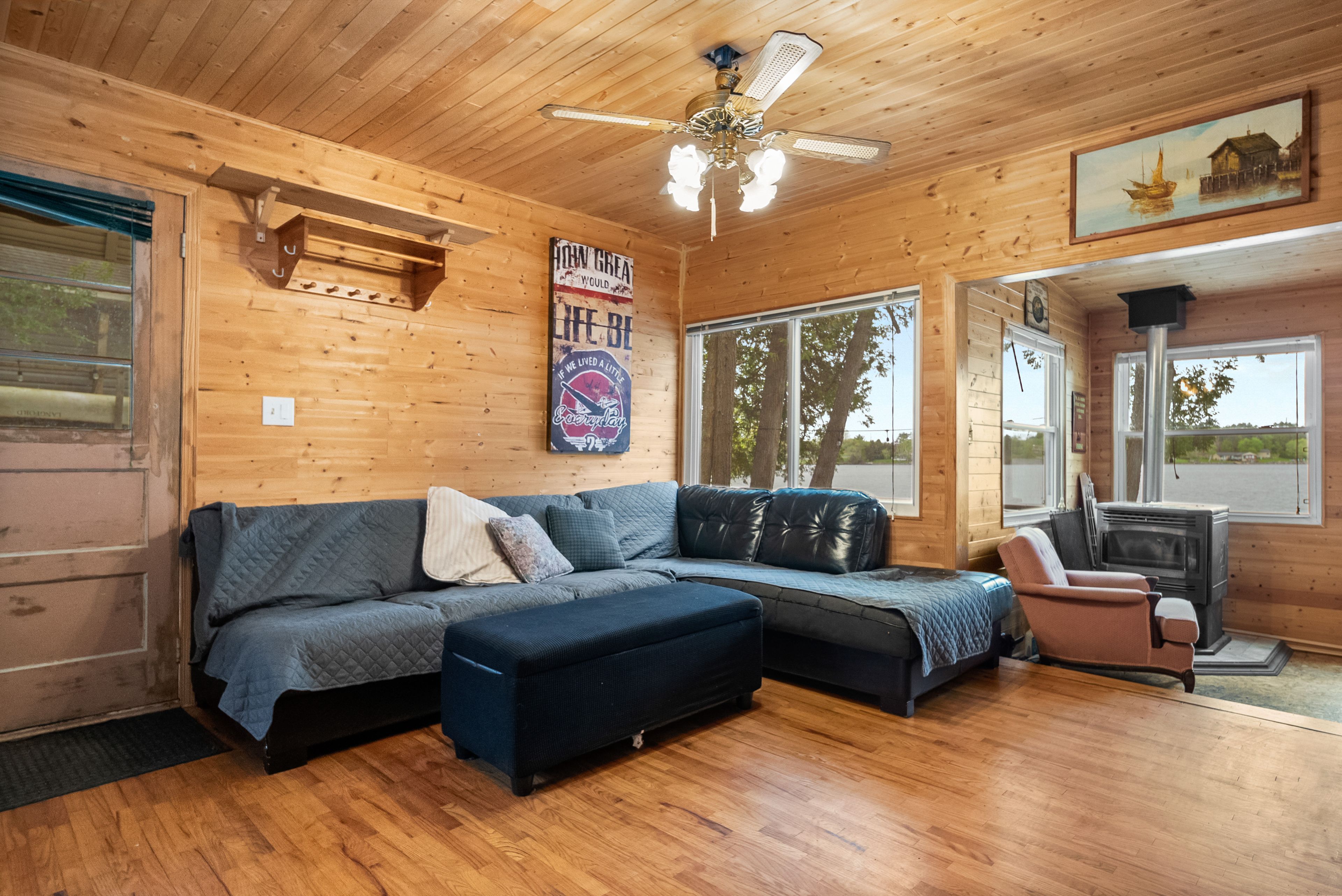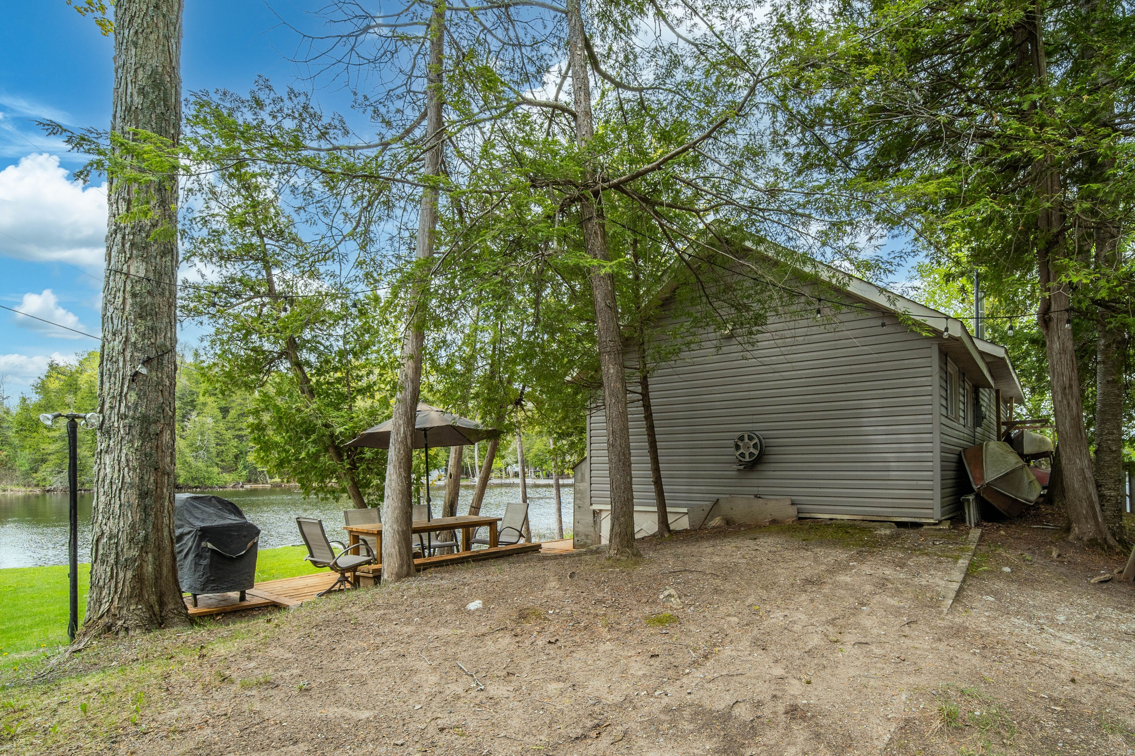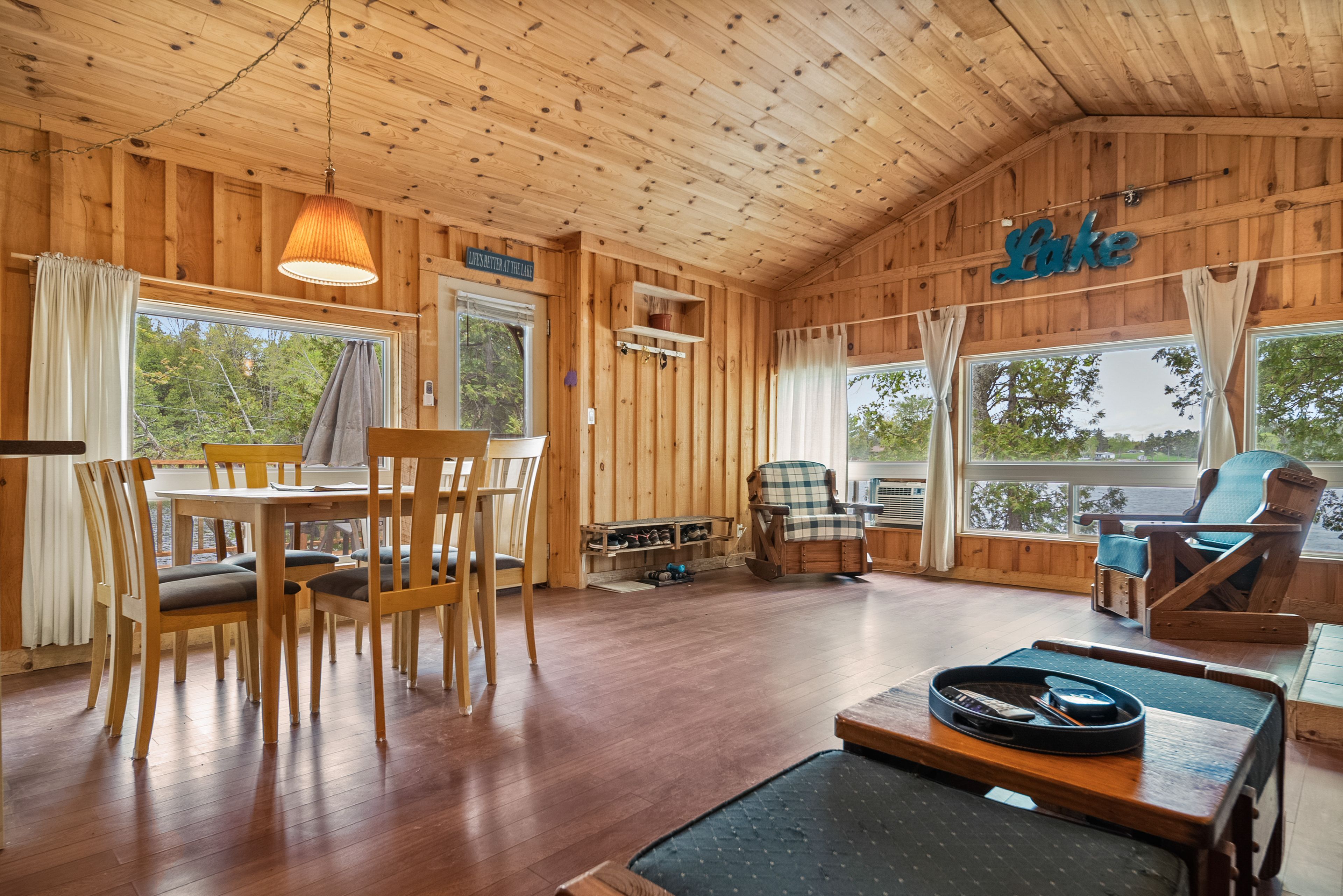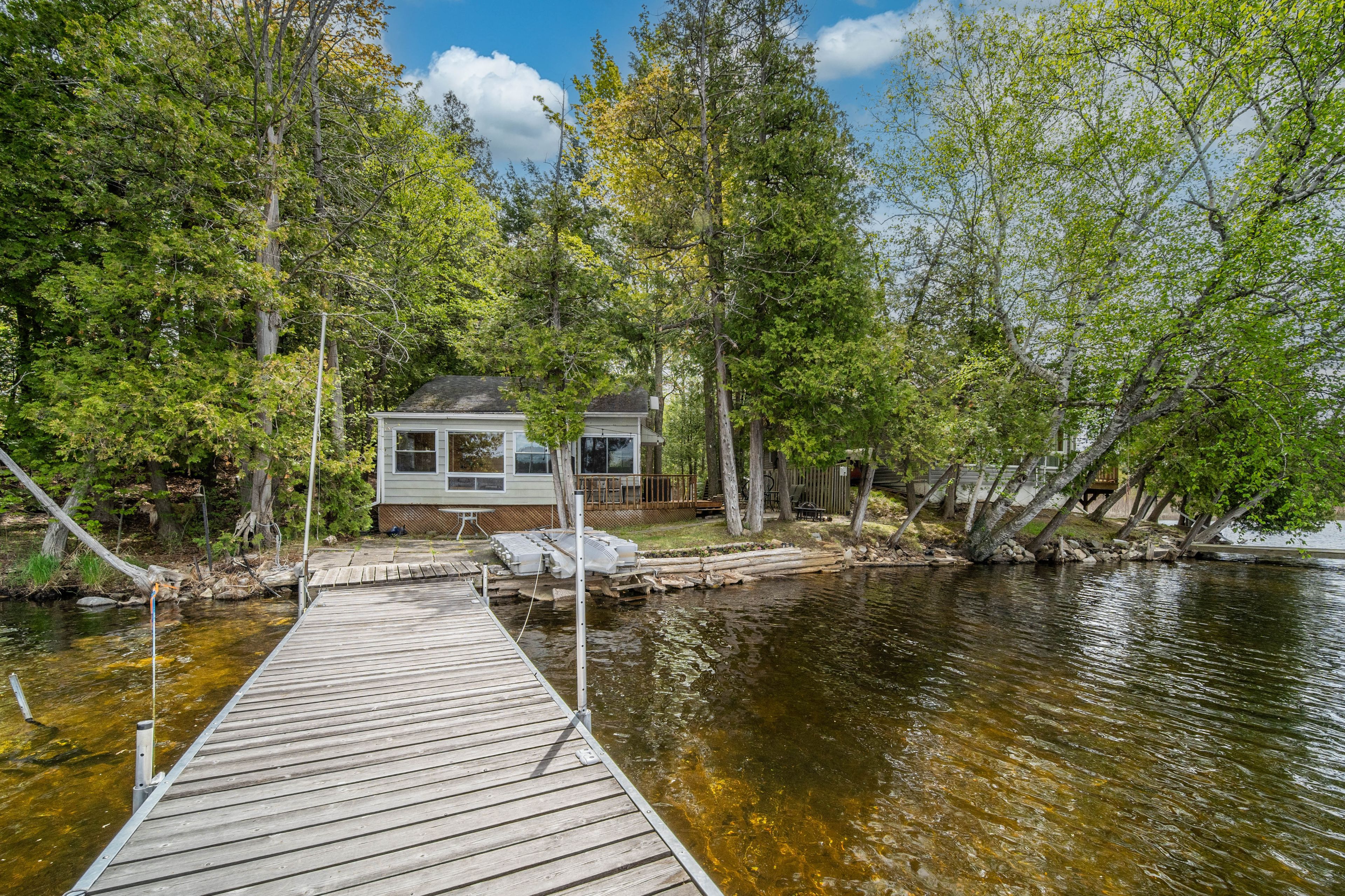 这片广受欢迎的湖泊以绝佳游泳、皮划艇、游船、垂钓体验著称,坐拥原始自然风光与丰富野生动物资源,同时享受便利周边设施。24A号小屋拥有110英尺滨水岸线,2008年全面翻新,采用松木墙板内饰、现代窗户及乙烯基外墙。配备3间卧室、3件套浴室,开放式厨房与家庭活动厅配有柴火炉,为寒冷季节增添温暖。户外设有工具棚、双层床小屋、篝火坑及两大观景露台,尽享西南朝向壮丽日落。码头区域既可畅泳,也为湖上探险提供泊船便利。