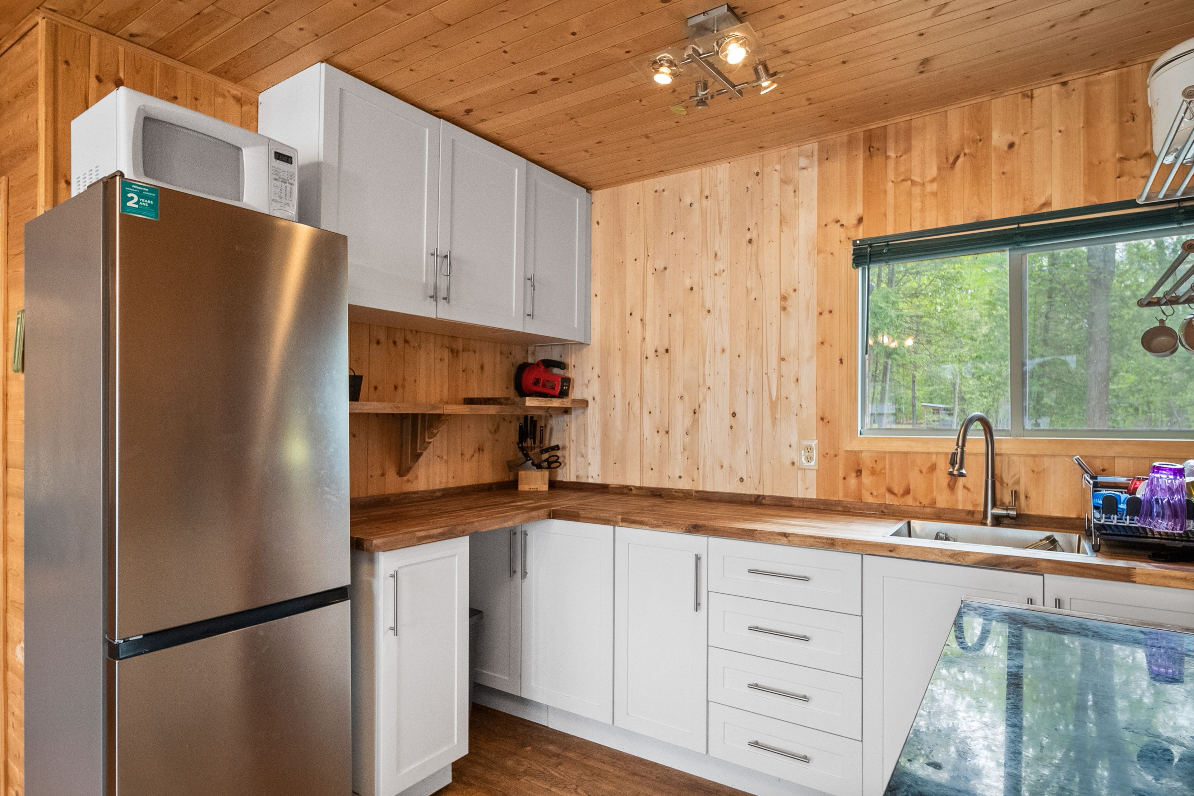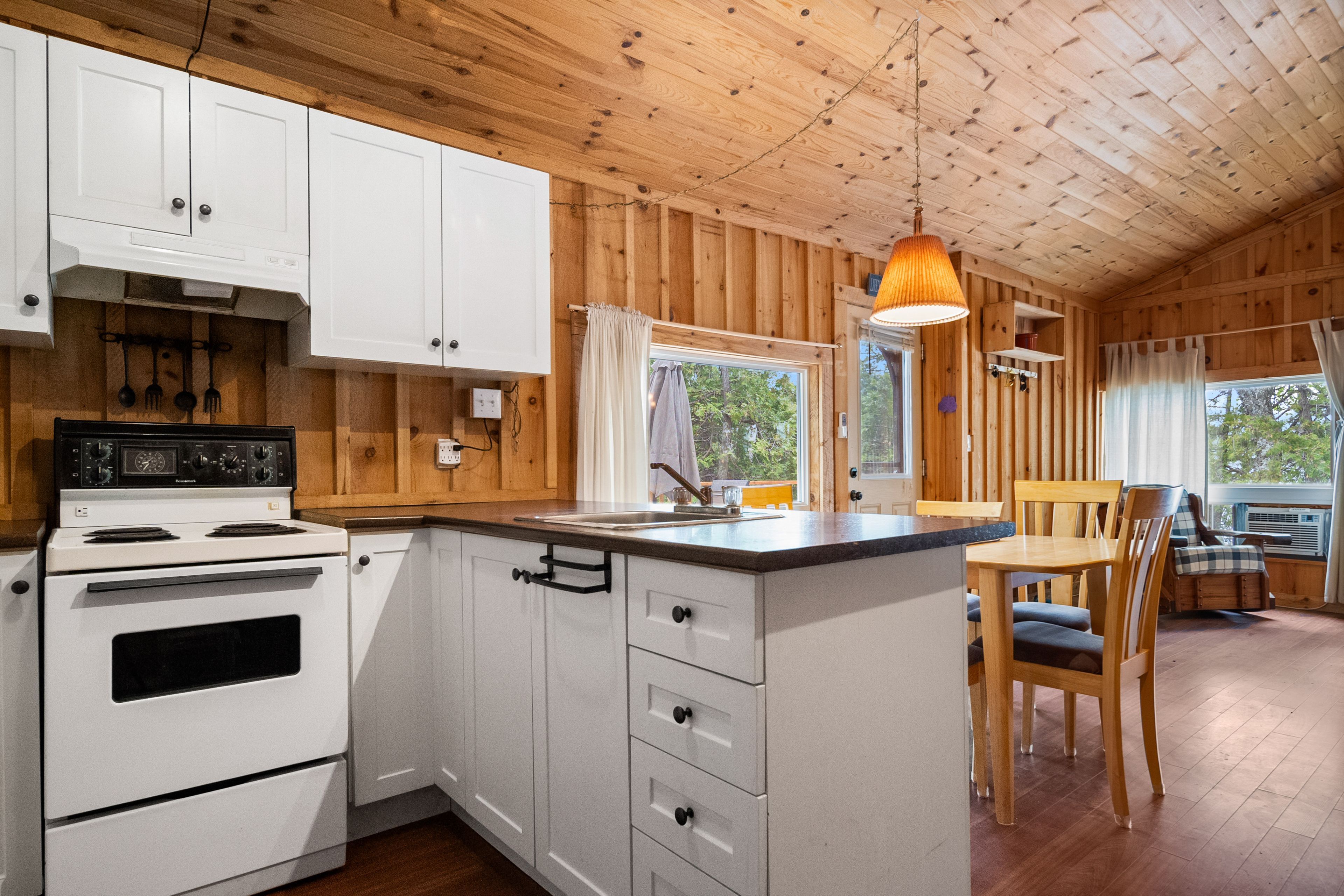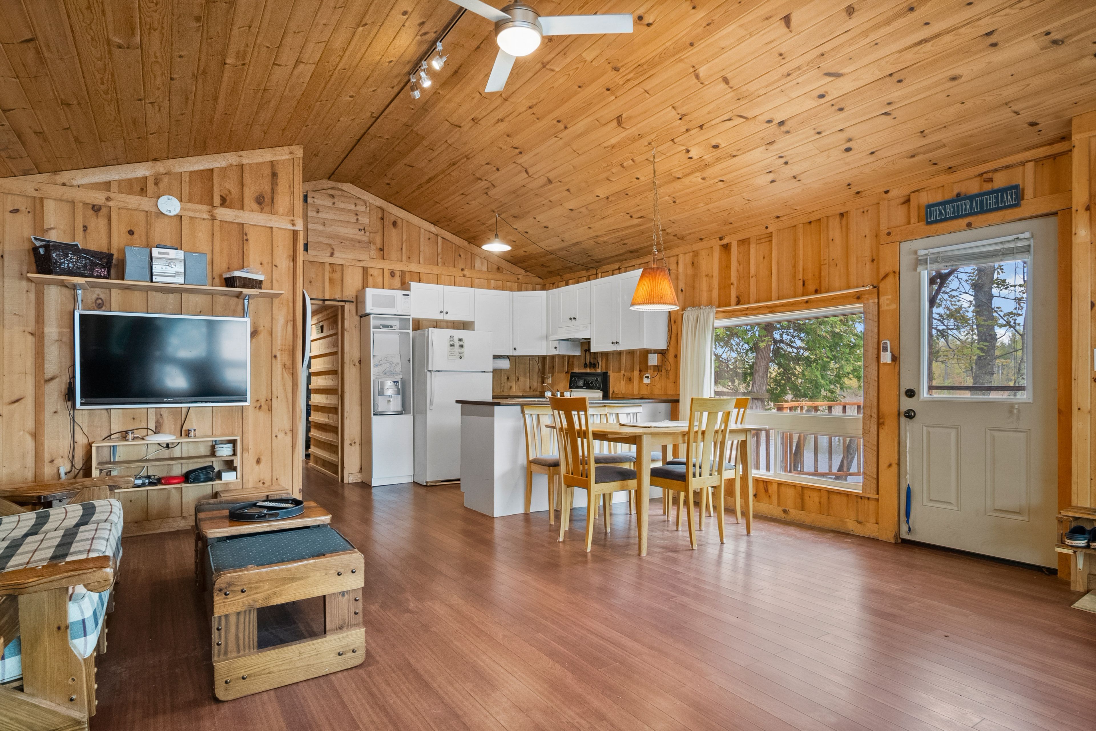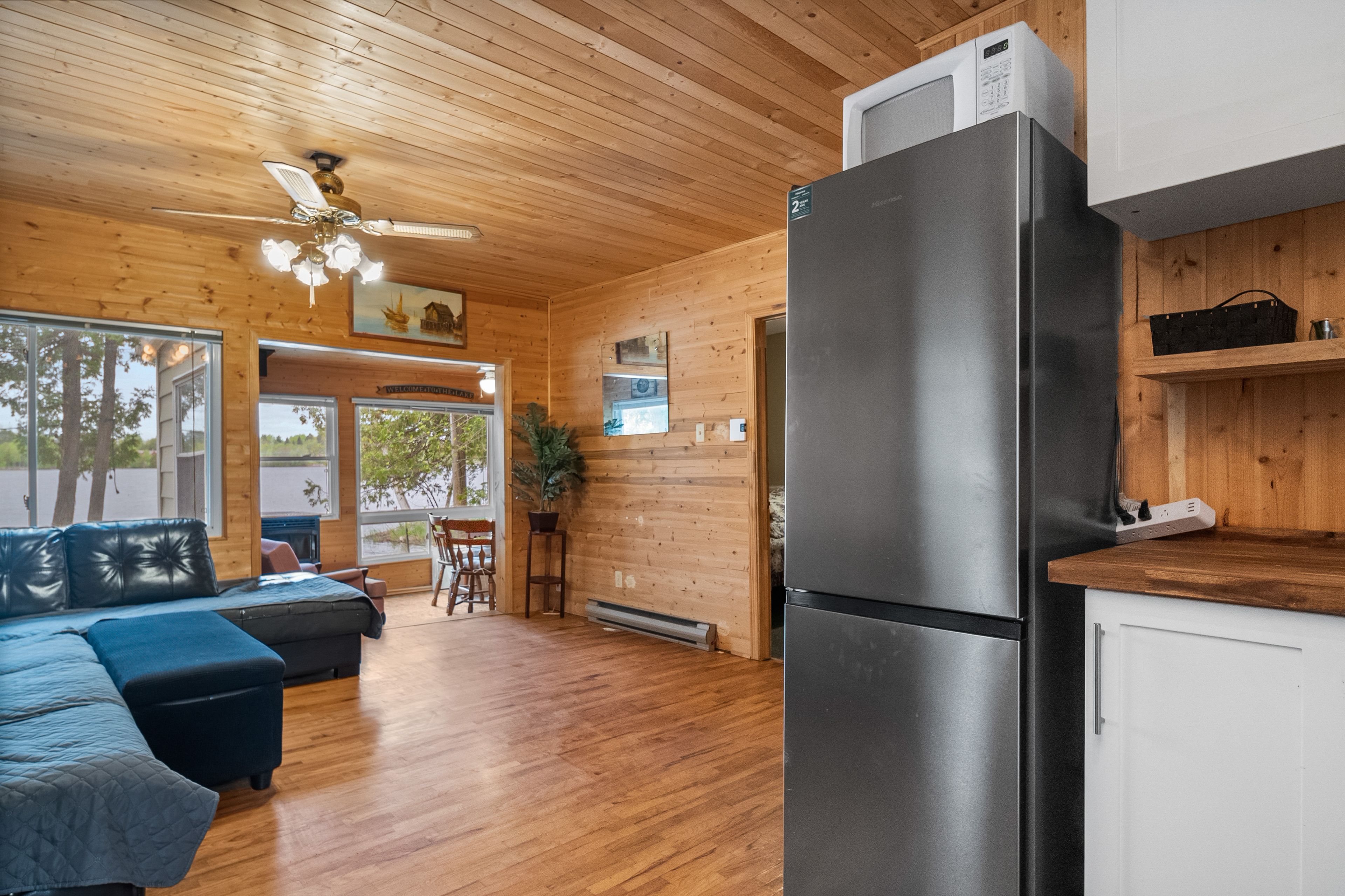 24B号小屋拥有约60英尺清澈滨水区。室内含两间卧室、宽敞开放式餐客厅、新式厨房、3件套浴室及环保颗粒取暖炉。户外保留结构坚固的外屋、电动汽车充电桩、树屋、深水码头,以及距水边仅数步之遥的观景平台,坐拥绝美湖景与便捷亲水通道。快带上亲友开启欢乐时光,在湖畔缔造珍贵回忆吧!