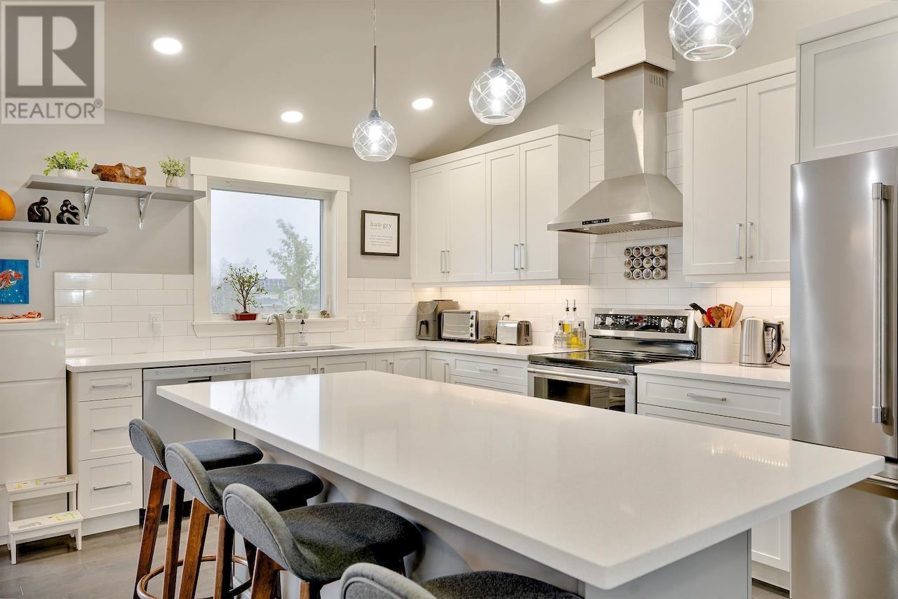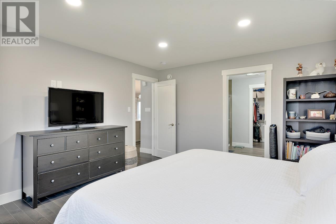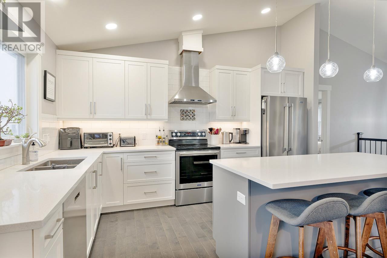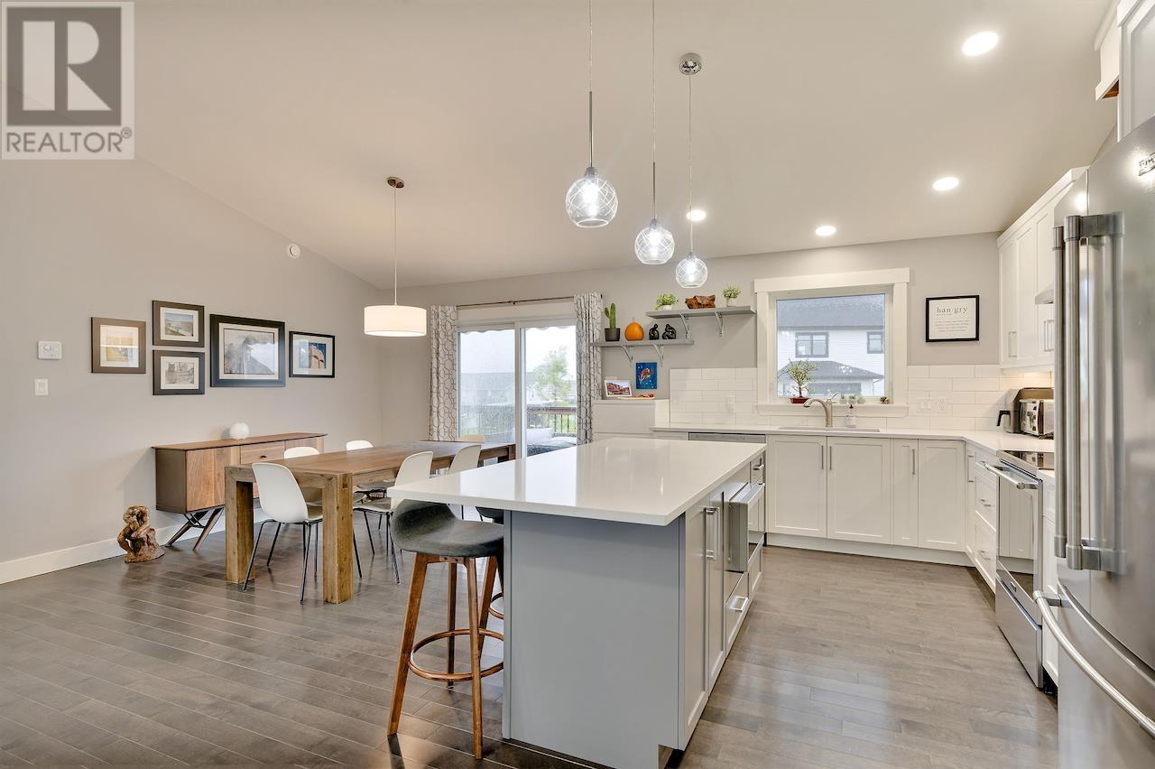 Great home in a great area, tastefully designed and well maintained. Spacious entrance. Upper level has an open kitchen, living and dining area with appliances and electric fireplace included and backyard deck access, one side has a large primary bedroom with a large private bathroom and a walk in closet, the other side has two bedrooms and a bathroom. Lower level has a private rec room, bedroom and a bathroom complete with laundry closet along with access to the large garage, utility room and storage room. Nice home inside and out. (id:22211)
