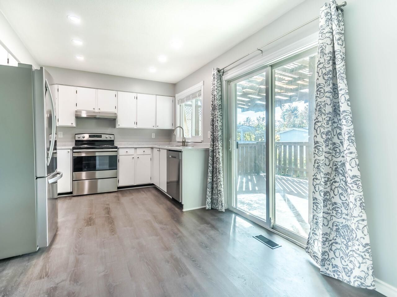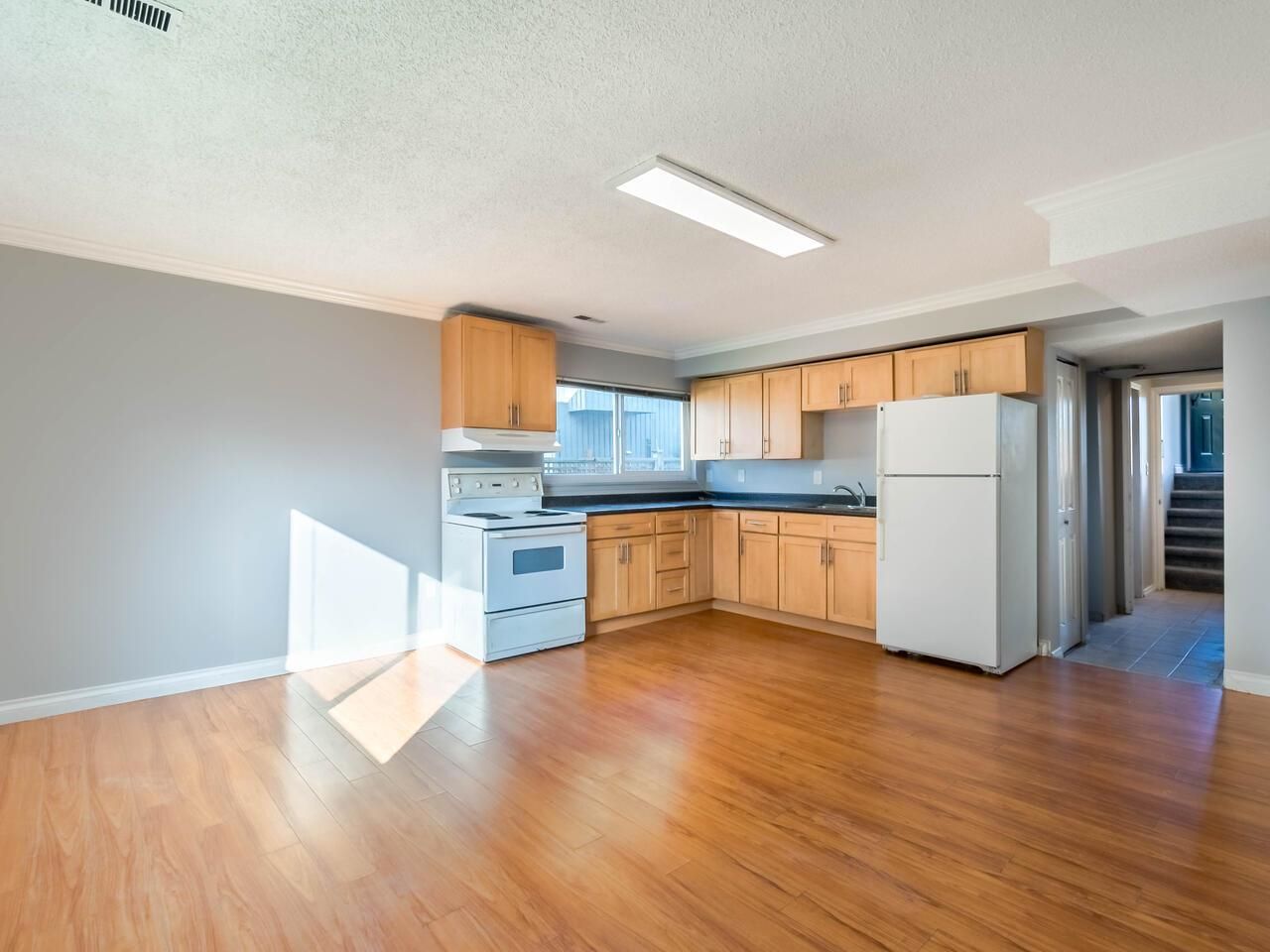 The best-priced 5-bedroom home you'll find in North Surrey! This turnkey residence boasts a spacious 2-bedroom, 1-bathroom suite with a private entrance on the ground floor. The upper level has been beautifully renovated, offering 3 bedrooms, a modernized full bathroom, and features newly installed engineered hardwood flooring. The kitchen is adorned with brand new stainless steel appliances, and a convenient covered patio for outdoor enjoyment. This property is conveniently located near schools, shopping centers, transportation hubs, and recreational facilities, making it an ideal choice for families and investors alike.