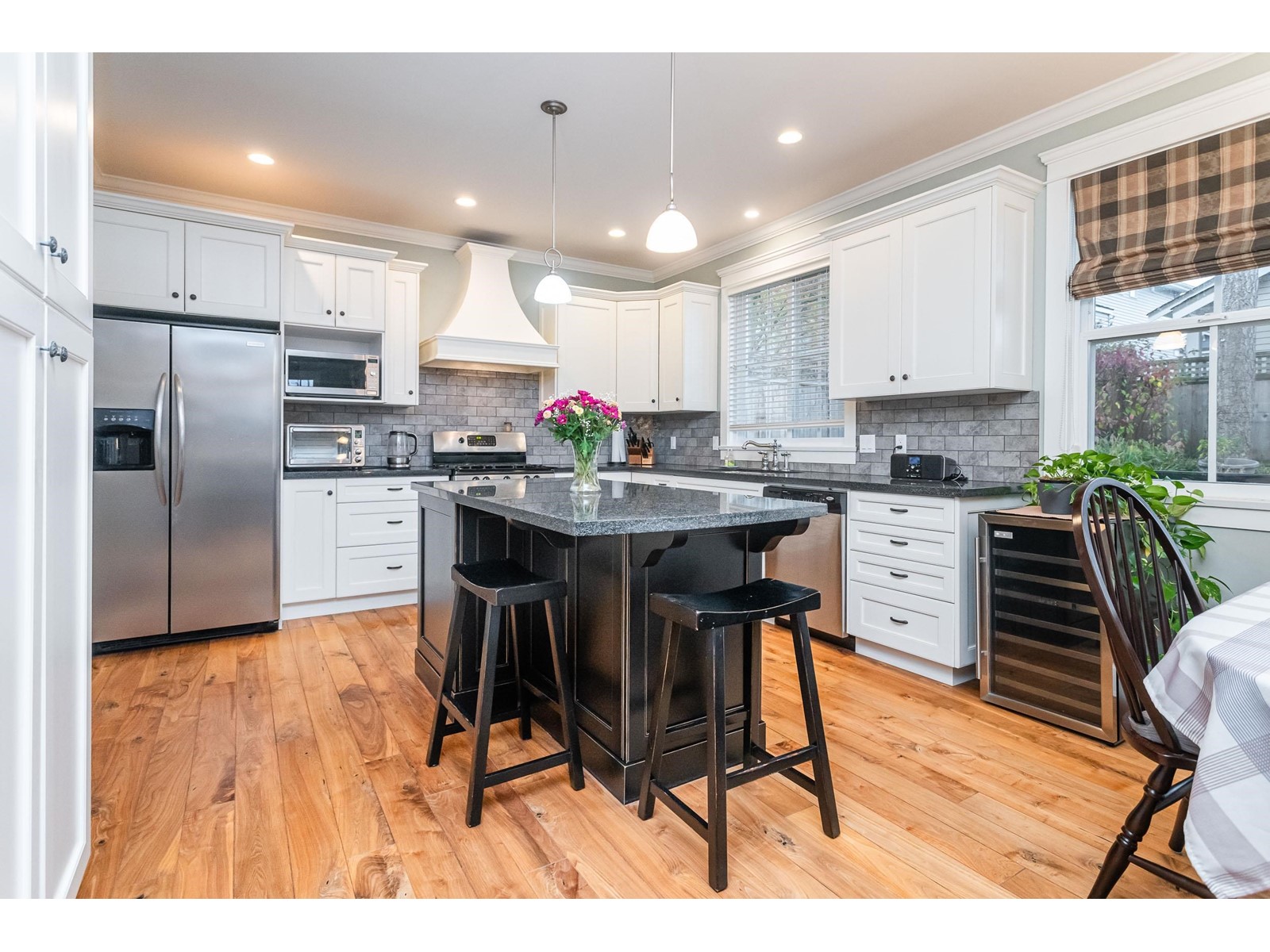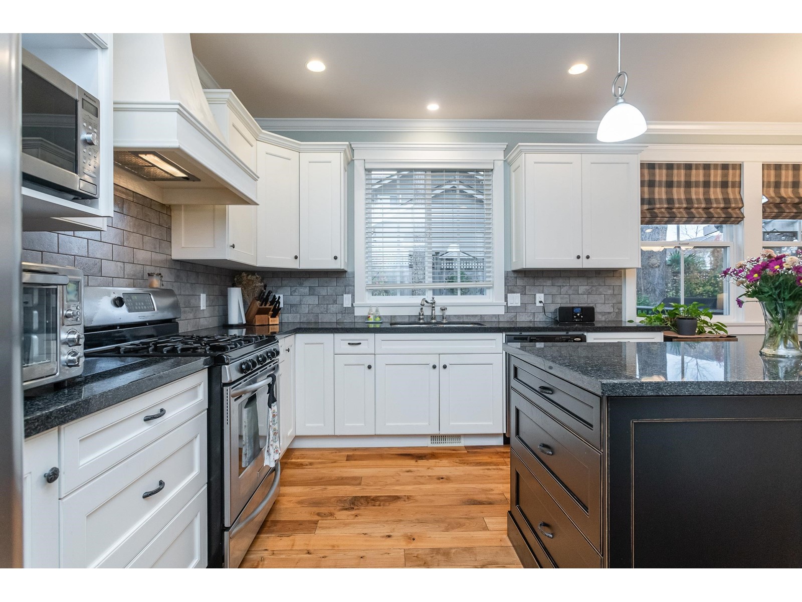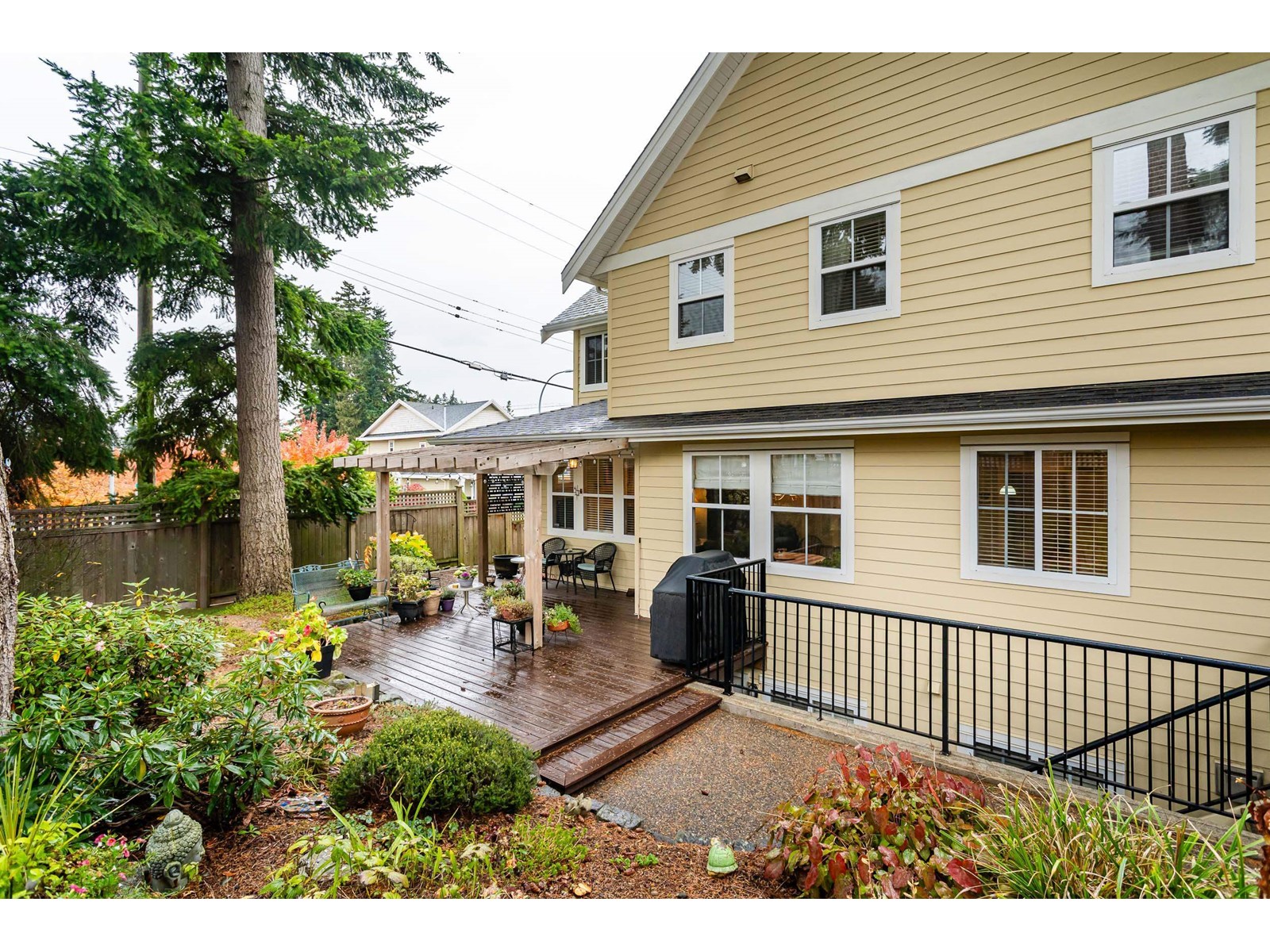 WOW!! Beautiful, large 5-bed, 4-bath, 3600 sqft home in South Surrey! Fantastic floorplan w/front sitting room, formal dining room, open family room & gourmet kitchen w/S/S appliances, granite counters & large island. Primary bedroom w/vaulted ceiling, large W/I closet & ensuite bath w/clawfoot bathtub, sep shower & dual sinks. 4 spacious bedrooms upstairs! Fully finished basement, recently renovated w/vinyl plank floors, has HUGE rec room w/rock fireplace. Basement has another bedroom & awesome media room w/wall & ceiling speakers. Basement has SEPARATE ENTRANCE too! Former SHOWHOME - so MANY extra features in this home - hardwood flooring, high ceilings, crown moulding, wainscotting, arches & much more. South-facing landscaped & fully-fenced backyard w/pergola & spacious composite deck! (id:22211)