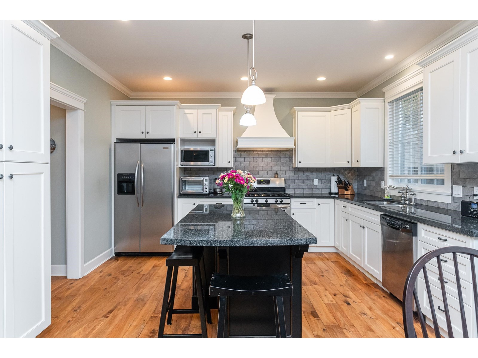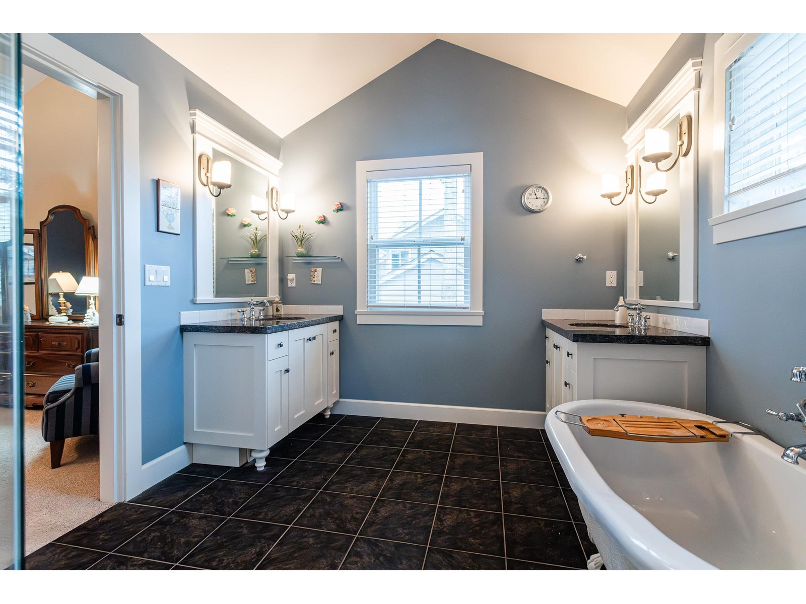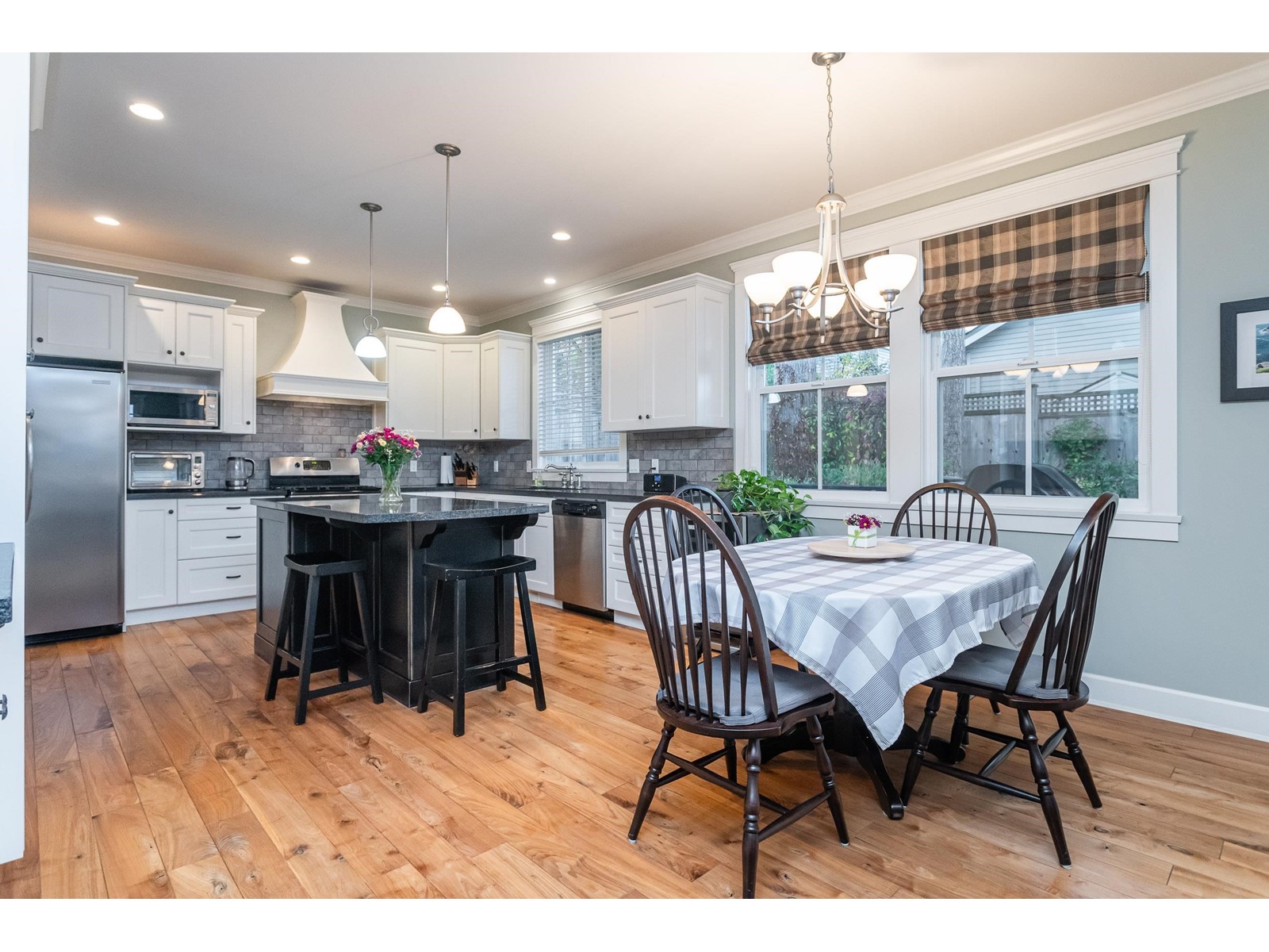 WOW!! Beautiful, large 5-bed, 4-bath, 3600 sqft home in South Surrey! Fantastic floorplan w/front sitting room, formal dining room, open family room & gourmet kitchen w/S/S appliances, granite counters & large island. Primary bedroom w/vaulted ceiling, large W/I closet & ensuite bath w/clawfoot bathtub, sep shower & dual sinks. 4 spacious bedrooms upstairs! Fully finished basement, recently renovated w/vinyl plank floors, has HUGE rec room w/rock fireplace. Basement has another bedroom & awesome media room w/wall & ceiling speakers. Basement has SEPARATE ENTRANCE too! Former SHOWHOME - so MANY extra features in this home - hardwood flooring, high ceilings, crown moulding, wainscotting, arches & much more. South-facing landscaped & fully-fenced backyard w/pergola & spacious composite deck! (id:22211)