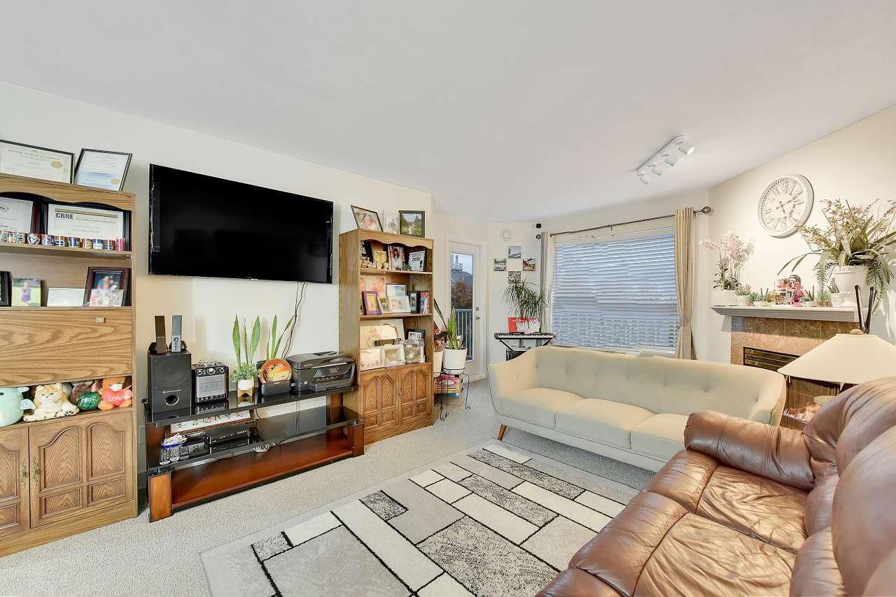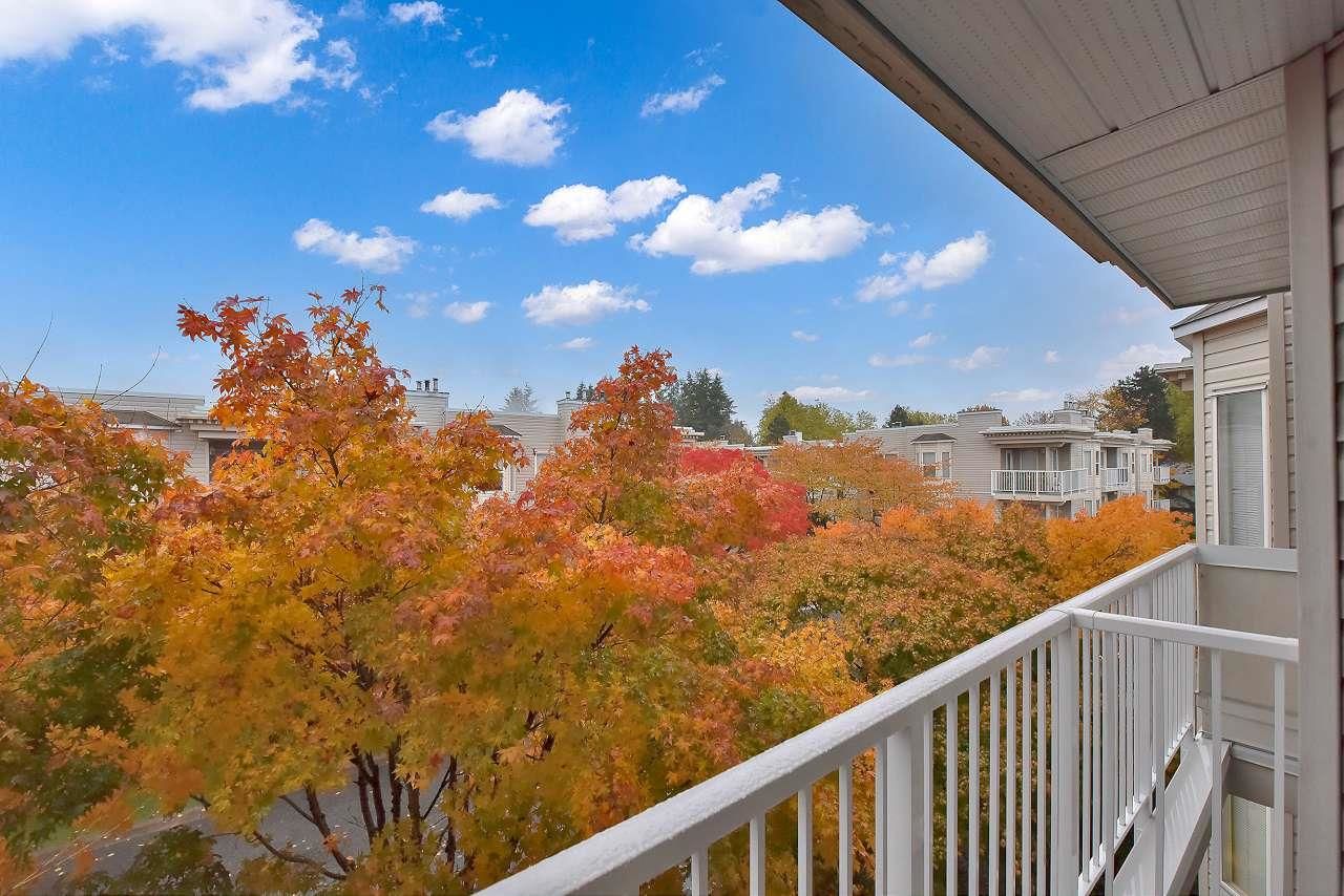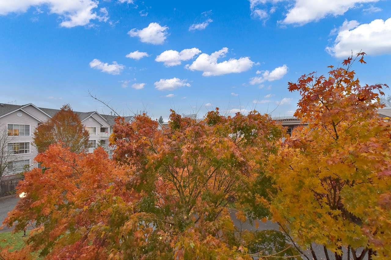 Gorgeous and Affordable + 2 Parking stalls! TOP FLOOR unit in popular Westchester Place! This spacious 2-bedroom, 2-bathroom condo offers more than 1,000 sqft with a smart, functional layout that includes space for a home office/den, plus full-size laundry, a cozy gas fireplace, and an east-facing covered balcony with peaceful view of flourishing trees and foliage; perfect for morning coffee/evening relaxation. Comes with 2 parking stalls and a storage locker. Updated with new counter tops, washer/dryer. Strata fees include Gas & Hot-water. Conveniently located near bus route #320, and quick access to the SkyTrain and Highway 1. Walk to Schools, Guildford Mall, T&T, Restaurants, Library, Gym, Pool, etc. This gem combines comfort, convenience and value in an unbeatable Guildford location!