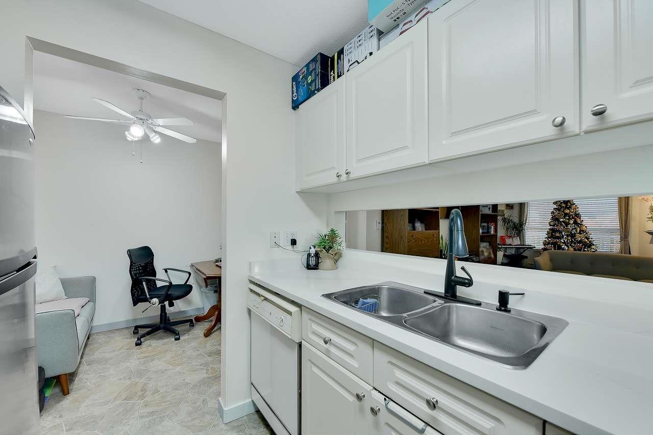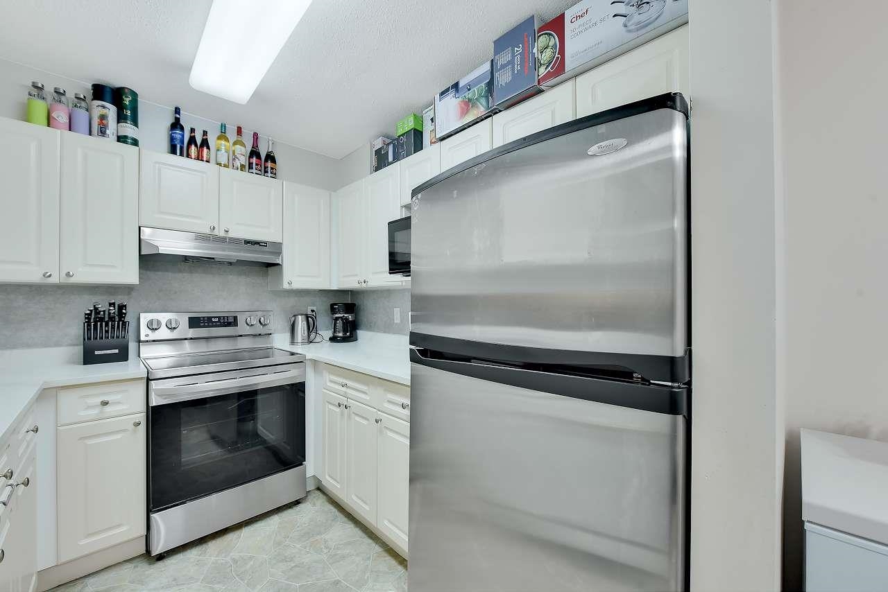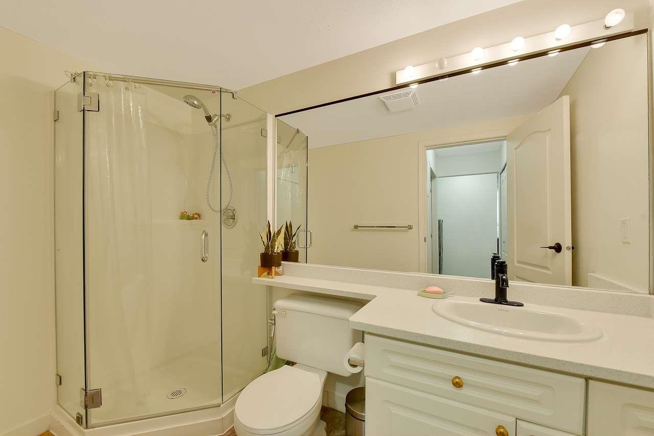 Gorgeous and Affordable + 2 Parking stalls! TOP FLOOR unit in popular Westchester Place! This spacious 2-bedroom, 2-bathroom condo offers more than 1,000 sqft with a smart, functional layout that includes space for a home office/den, plus full-size laundry, a cozy gas fireplace, and an east-facing covered balcony with peaceful view of flourishing trees and foliage; perfect for morning coffee/evening relaxation. Comes with 2 parking stalls and a storage locker. Updated with new counter tops, washer/dryer. Strata fees include Gas & Hot-water. Conveniently located near bus route #320, and quick access to the SkyTrain and Highway 1. Walk to Schools, Guildford Mall, T&T, Restaurants, Library, Gym, Pool, etc. This gem combines comfort, convenience and value in an unbeatable Guildford location!