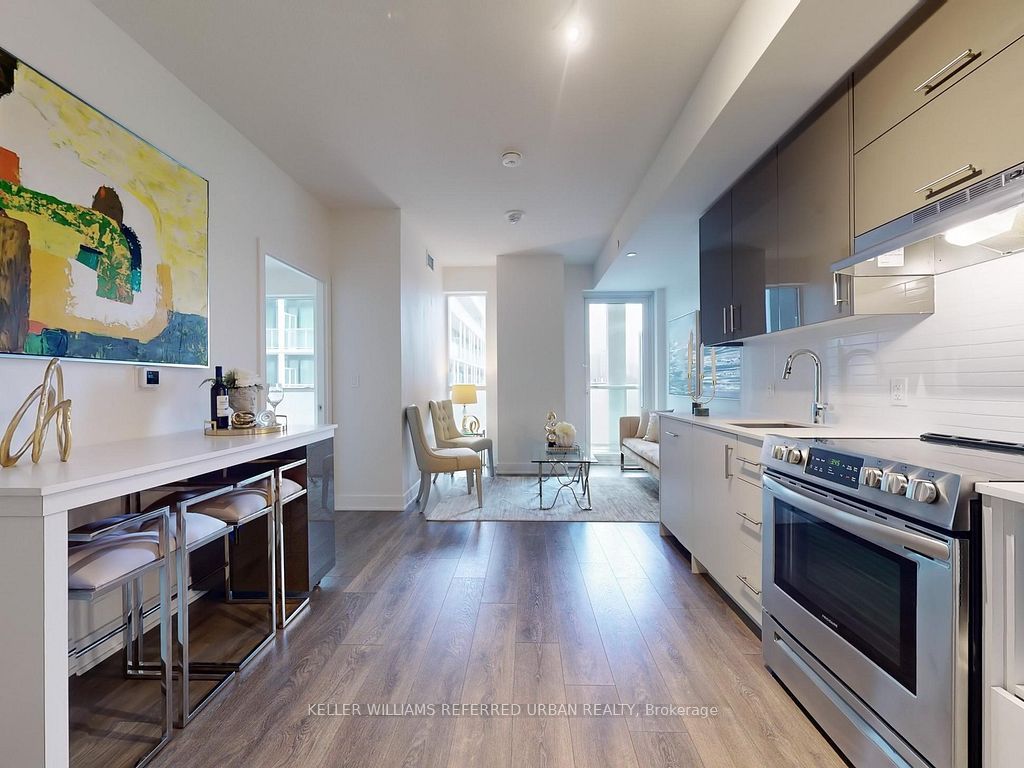 Experience contemporary urban living in this stunning 1-bedroom + Den with 2-bath suite at the highly sought-after Verde Condos in Don Mills & Sheppard. Boasting a total of 855 sq. ft. of living space (745 sq. ft. interior + 110 sq. ft. balcony), this unit features 9-ft ceilings, floor-to-ceiling windows, and sleek laminate flooring. The den has been fully enclosed, creating a true second bedroom for added versatility. The stylish open-concept kitchen is designed for both form and function, featuring a moveable island, quartz countertops, and a modern backsplash. Enjoy unobstructed, breathtaking west-facing views and the convenience of EV-ready parking. Prime location just steps from Fairview Mall, supermarkets, a cinema, restaurants, and more. Commuting is effortless with Don Mills Subway Station, TTC access, and quick connections to Hwy 404 & 401. A perfect blend of style, comfort, and convenience this unit is a must-see!