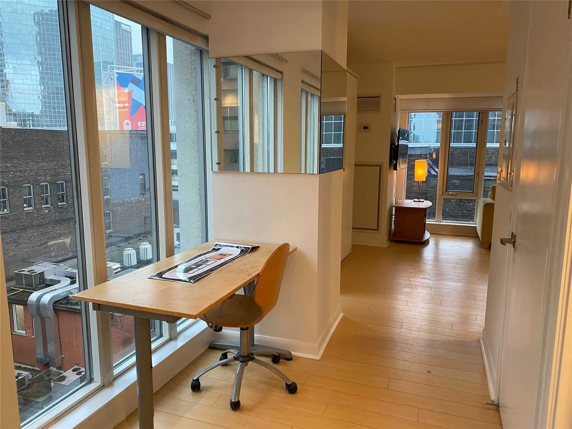 Rare Find Large Furnished Studio Unit (542' As Per Builder's Plan). Great Opportunity To Live In An Executive Suite At Pantages Tower. Newly Painted & Renovated Kitchen, Newer Appliances In Kitchen, Bath Vanities. Good Use Of Space W/Sep Work Area. Excellent Walk/Transit Score. Steps To Eaton Centre, Dundas Square, Toronto Metropolitan University, St Michael Hospital. Short Walk To Financial District & St. Lawrence Market. Air B&B and Short Term Rent Is Not Allowed By Condo Corp.Renovated Kitchen & Bath Vanities