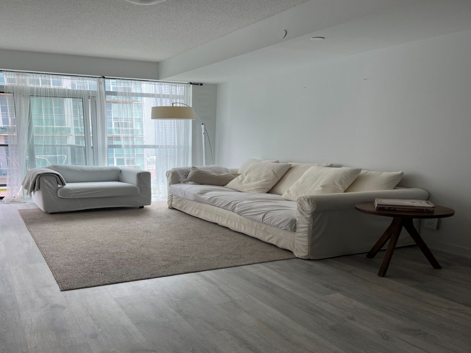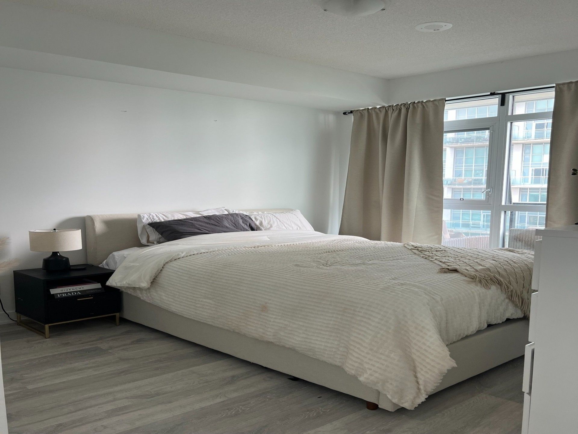 Welcome to 251 Manitoba St, featuring a 610 Sqft modern 1-bedroom, 1-bath condo located in the sought-after Mimico neighbourhood of Toronto. This bright, open-concept unit features floor-to-ceiling windows, laminate flooring throughout, and a walk-out balcony with sweeping lake and city views. The kitchen is equipped with sleek stainless steel appliances, quartz countertops, and ample storage. The spacious bedroom offers a large closet and natural light, while the stylish 4-piece bathroom includes contemporary finishes. Enjoy in-suite laundry and 1 underground parking spot included. Residents have access to outstanding building amenities: Outdoor pool, fitness centre, exercise gym, rooftop terrace, BBQ area, guest suites, and 24-hour concierge. Located just minutes to Humber Bay Shores, waterfront trails, restaurants, grocery stores, and with easy access to Gardiner Expressway, GO Transit, and TTC - perfect for professionals or couples seeking style and convenience. Don't miss your chance to live in this vibrant community!
