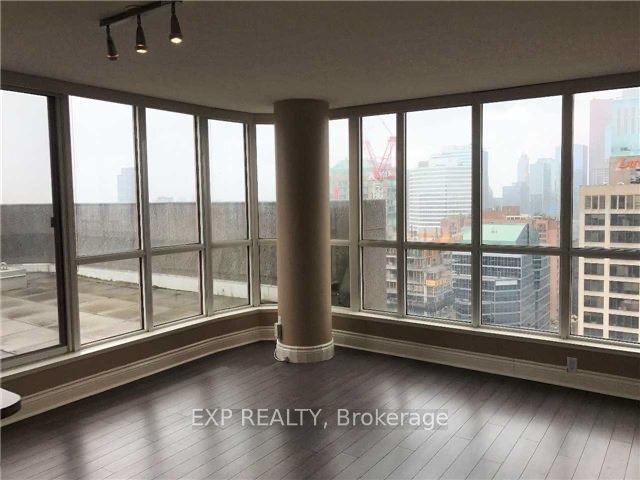 保养良好!宽敞的角落单位,整个区域采用复合地板,并配有环绕阳台露台。令人惊叹的开放式餐厅和厨房,配备不锈钢电器。卧室宽敞,可通往露台。大堂宽敞,储物充足,建筑内含室内游泳池、24小时礼宾服务、健身房和免费访客停车位,物业费包含水电气费。地理位置优越,靠近地铁、医院、大学和 Eaton Centre。