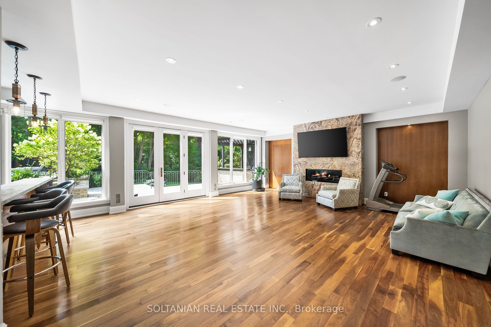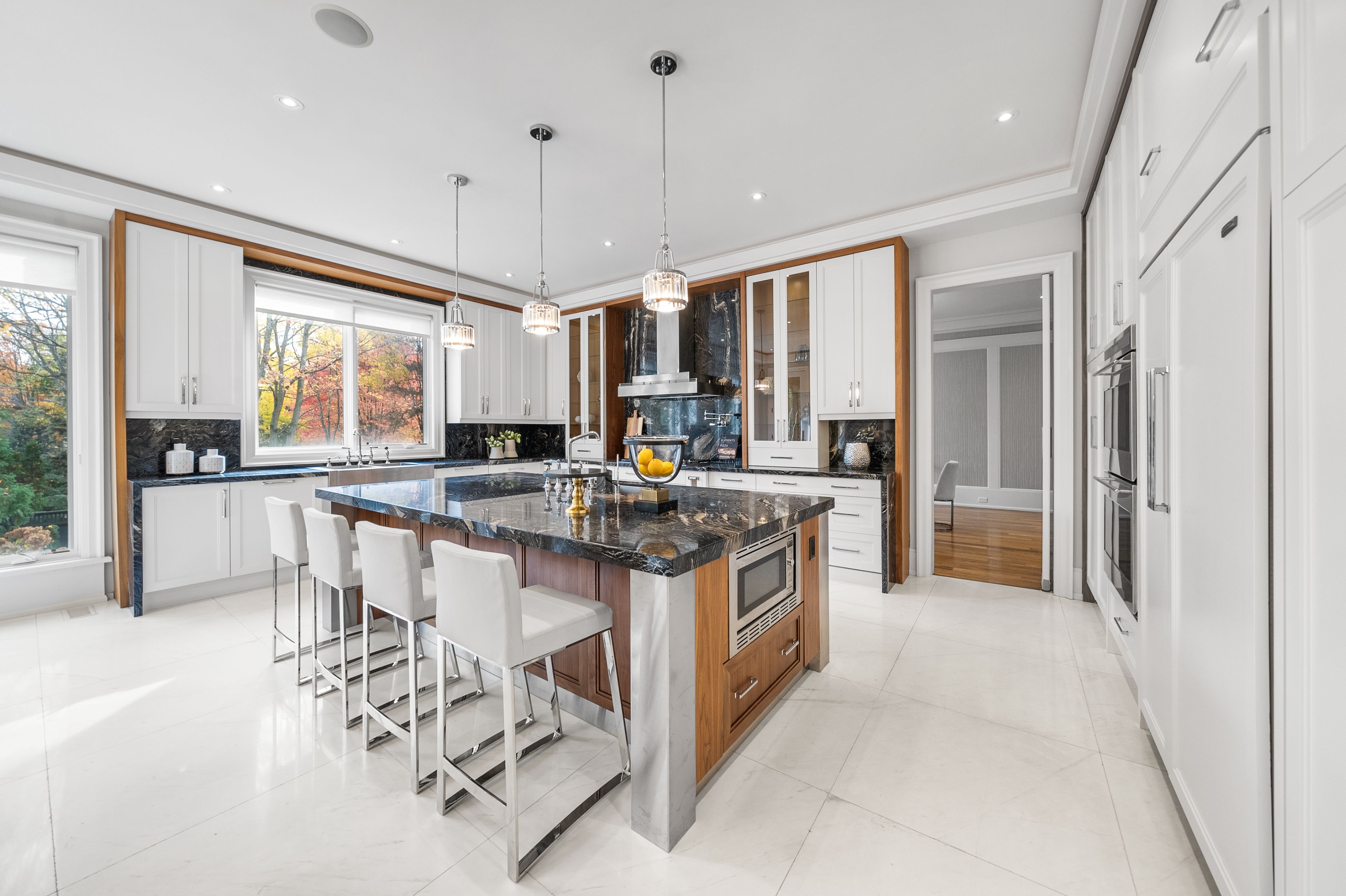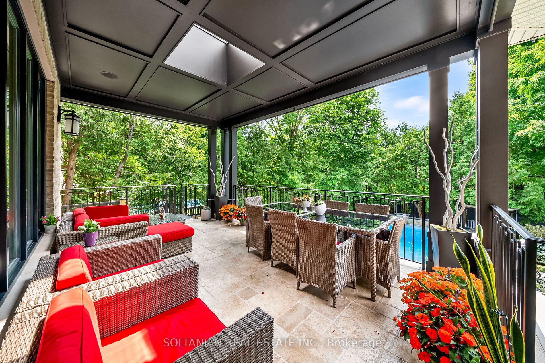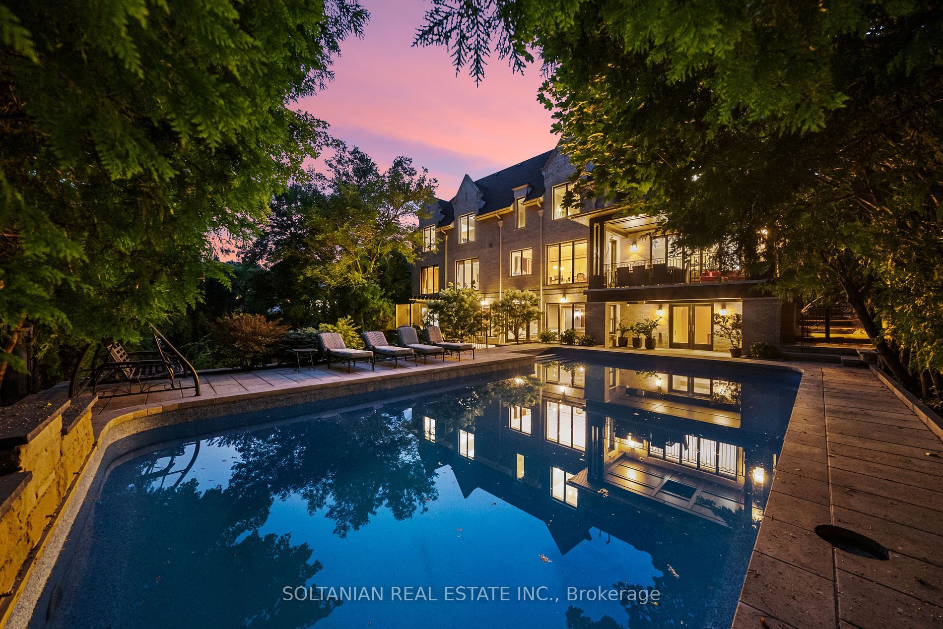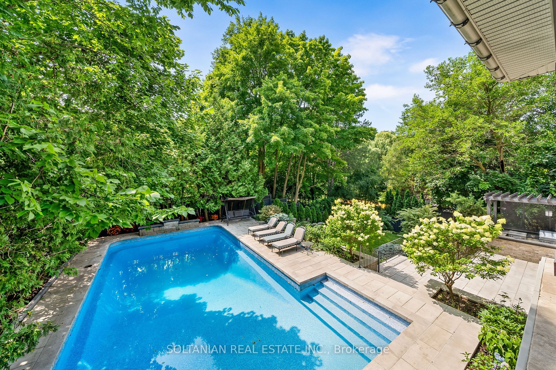 Welcome to an architectural masterpiece designed by renowned architect Peter Higgins. Nestled in a serene neighborhood on an expansive lot, this mansion combines modern elegance with timeless design. Inside, you'll be captivated by luxurious interiors and sophisticated details. The stunning facade opens to an oasis-like backyard, featuring lush landscaping, a sparkling pool, outdoor kitchen, perfectly manicured gardens, and mature trees. This extraordinary picturesque property showcases exquisite craftsmanship and unparalleled beauty at every turn. State-of-the-art gourmet kitchen designed for style and functionality. It features exquisite granite countertops and custom cabinetry, perfectly complemented by a paneled Sub-Zero fridge and top-of-the-line Wolf appliances, ensuring a premium cooking experience. The spacious breakfast area, ideal for casual dining, seamlessly opens to a covered patio, offering breathtaking views of the gorgeous grounds.Generous primary bedroom featuring 2 walk-in closets and a luxurious 7pc ensuite. Heated floor in primary Ensuite, a steam shower, and a soaker tub with beautiful backyard views, creating the perfect retreat.5+2 bedrooms, den on upper level, gorgeous office on main level. Walk out basement includes a theatre room, spa with a dry sauna, showers and change rooms leading to the swimming pool in the backyard, wine cellar, wet bar, and 2 bedrooms with private ensuites.Natural marble flooring on main floor, walnut hardwood floors throughout, control 4, security cameras, too much to list!
