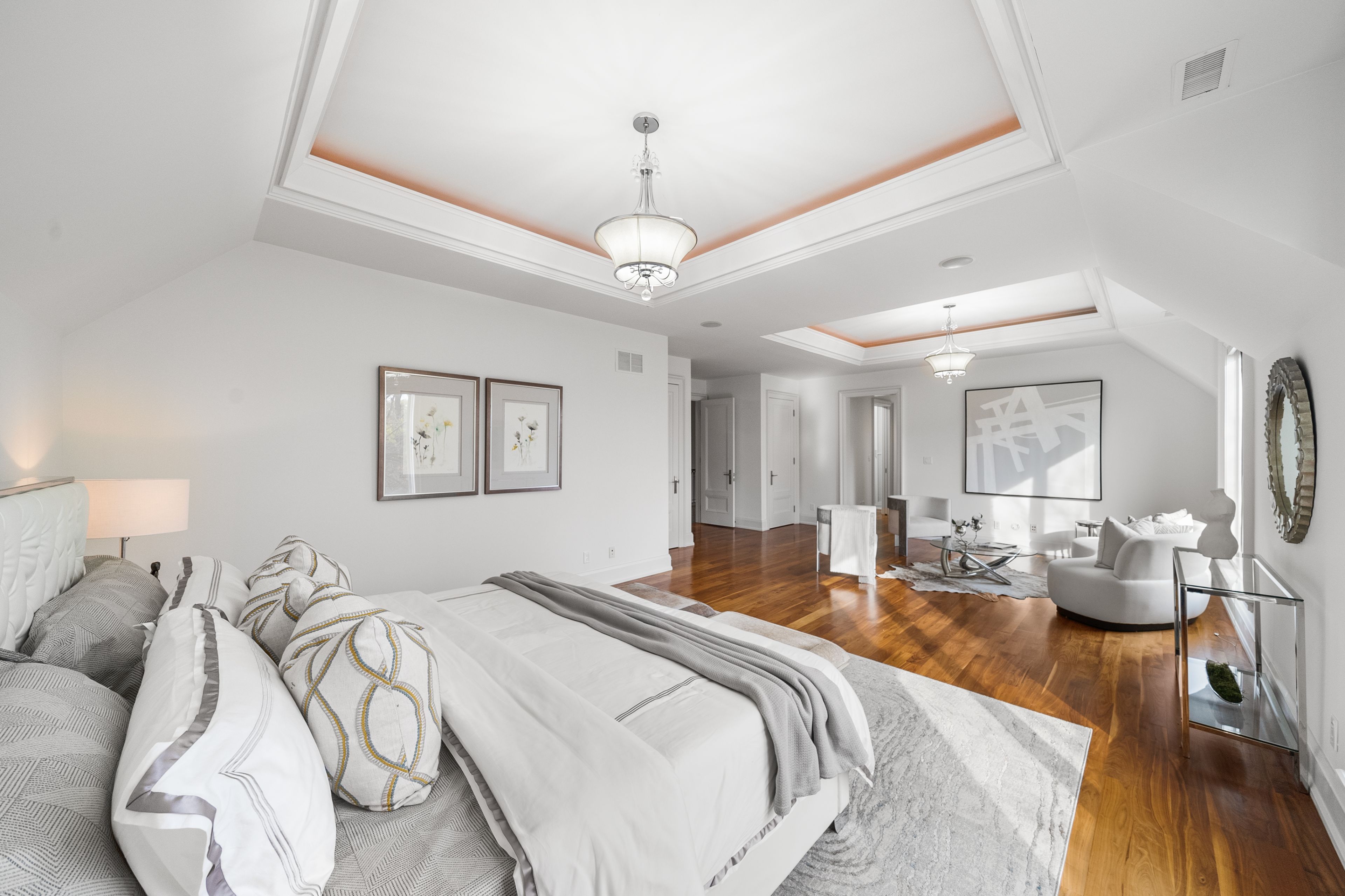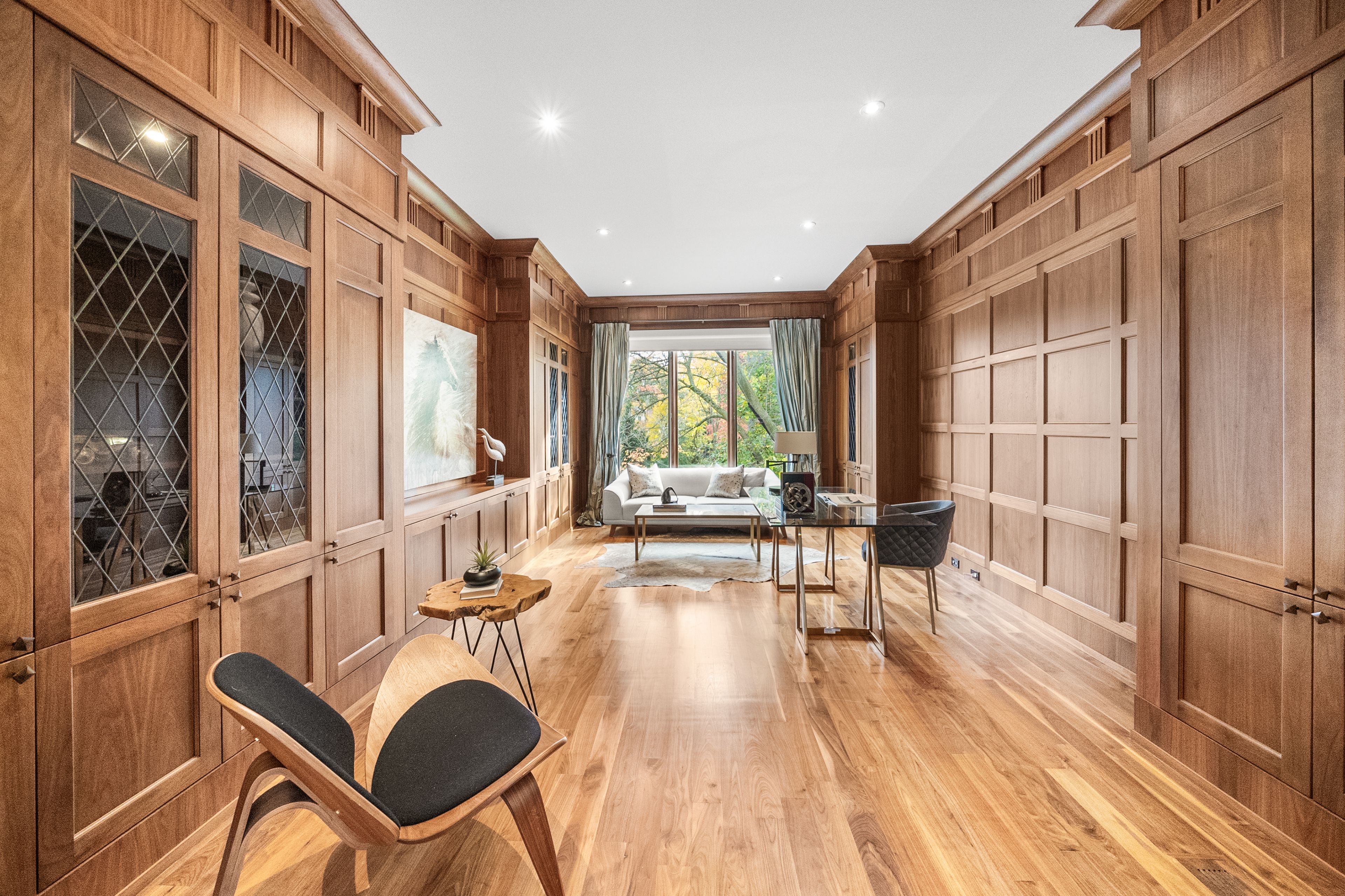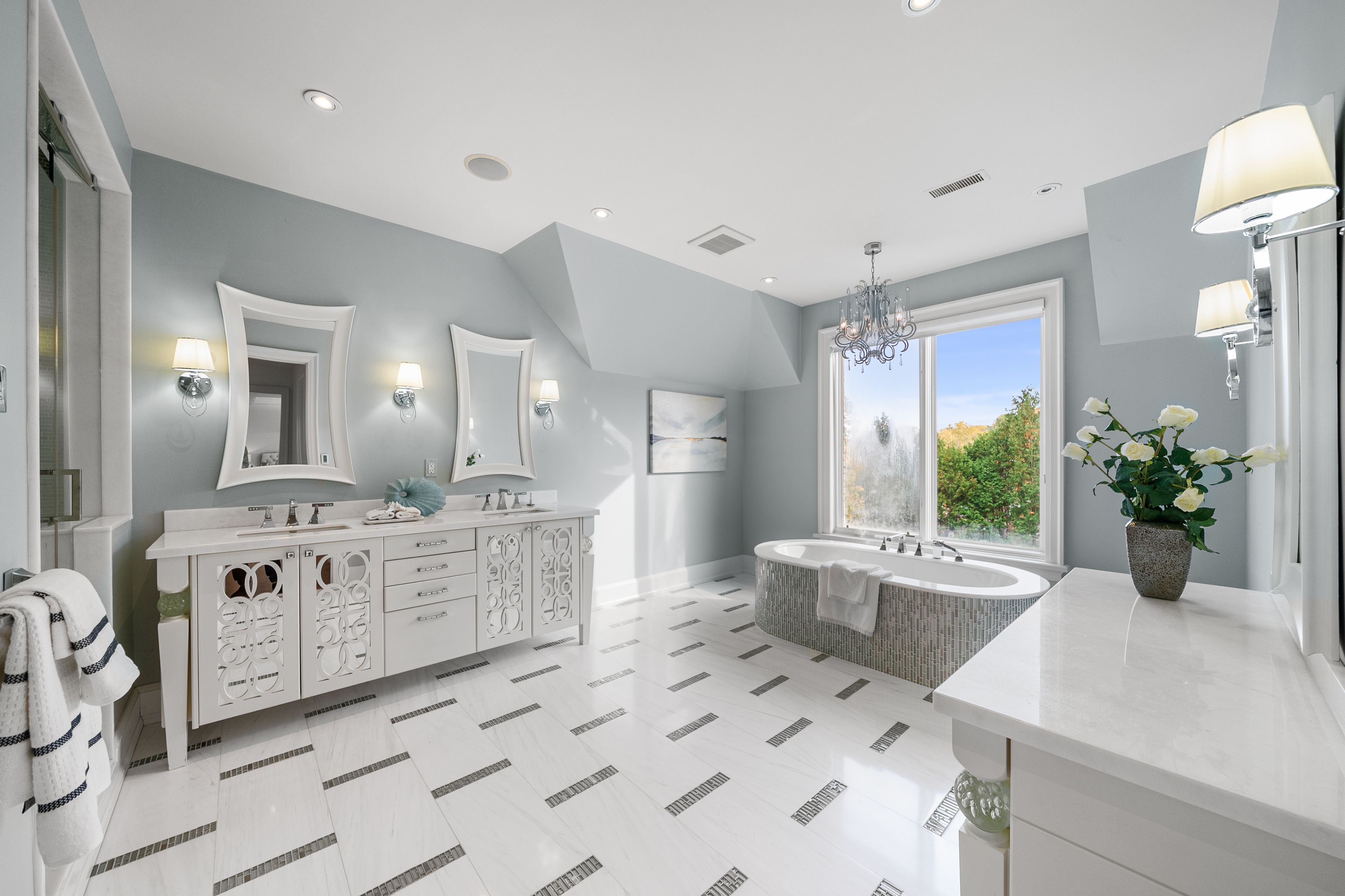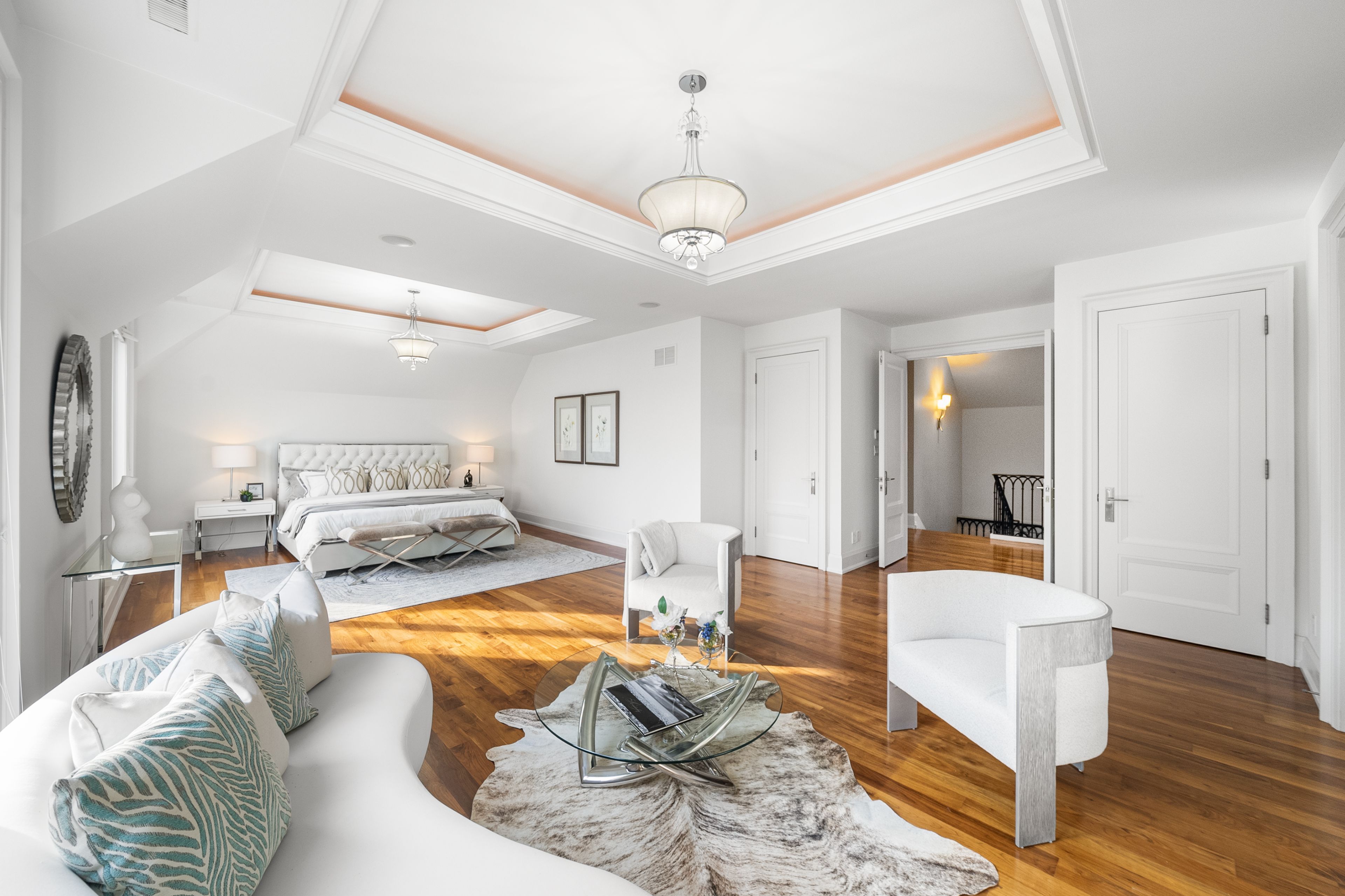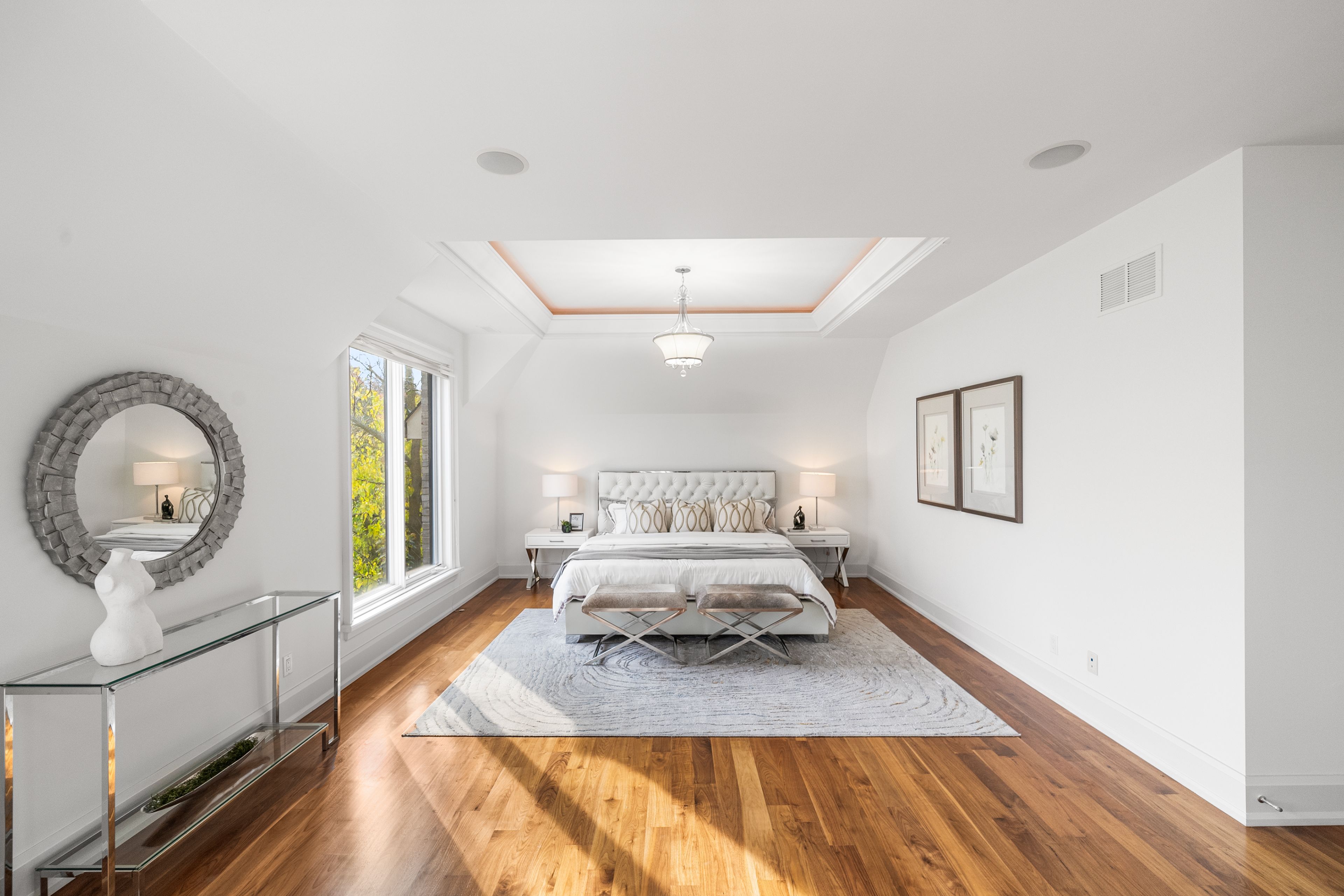宽敞的主卧套房拥有2个步入式衣橱和一个豪华的7件套卫浴间。主卫浴间配备地暖、蒸汽淋浴和带美丽后院景致的浸泡浴缸,营造完美的休憩空间。5+2间卧室,楼上有书房,主楼层上有华丽的办公室。