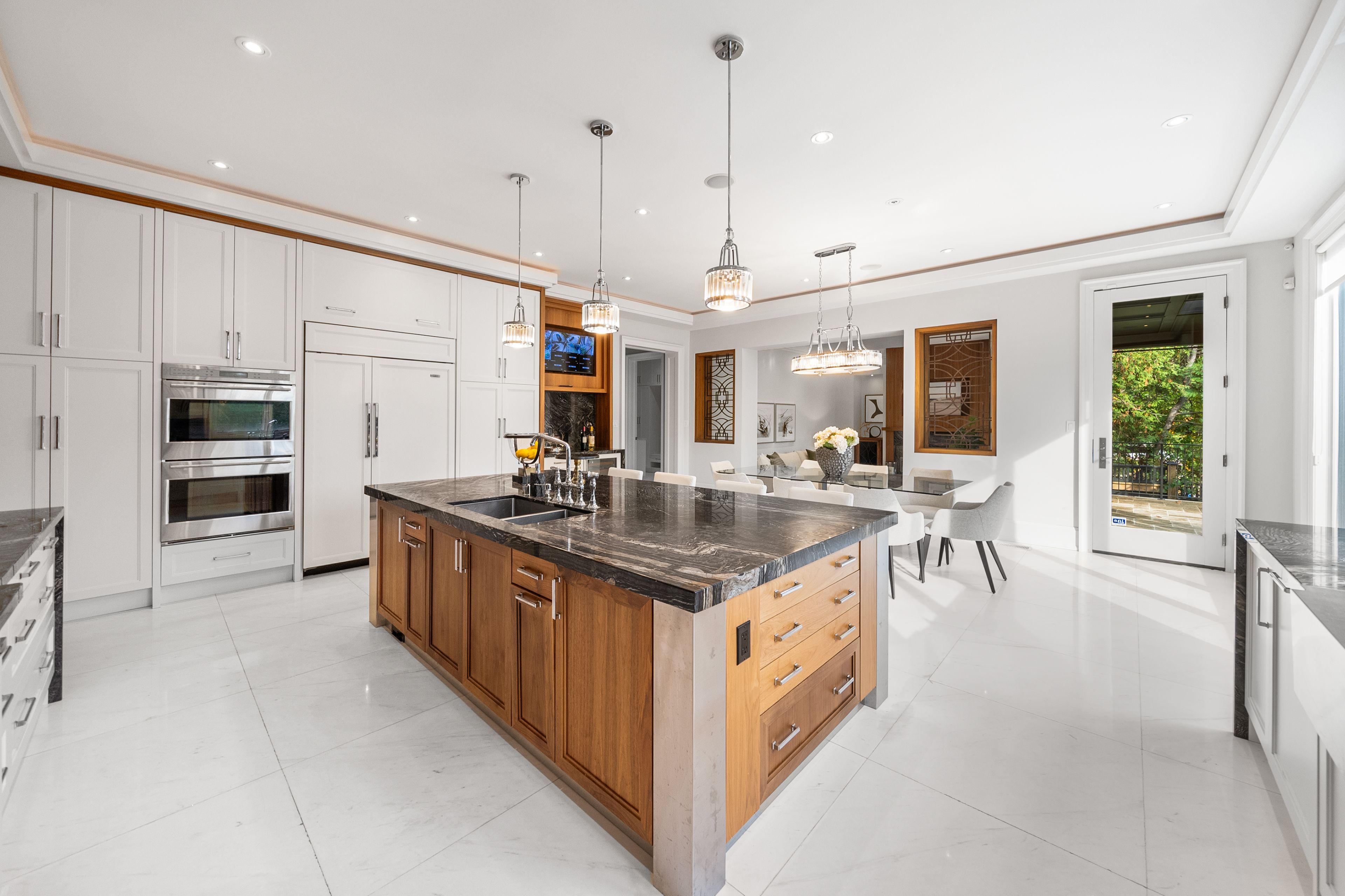 配备最先进设备的美食厨房,兼具时尚与功能性。它拥有精美的花岗岩台面和定制橱柜,并与镶板Sub-Zero冰箱和顶级Wolf电器完美搭配,确保卓越的烹饪体验。宽敞的早餐区非常适合休闲用餐,与带顶棚的露台无缝连接,可欣赏到美丽庭院的壮丽景色。
