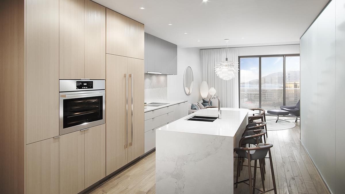 MOVE IN NOW! Awesome 3 bed & 2.5 bath VIEW PENTHOUSE - MASSIVE ROOF TOP DECK, 9’ ceilings & full-height windows plus walk out patios. The kitchens are a chef's paradise, stunning white oak and white lacquer cabinets, quartz countertops, under-mounted sinks, no-touch faucet, seamless Liebherr fridge, AEG European wall over & induction cooktop and Fisher & Paykel dishwasher. Rift-cut white oak floors throughout. The bathrooms feature wall-mounted vanity and storage, Silestone Calacatta quartz countertops, Italian stone vanity, LED-lighting, rain & hand shower. Great bedrooms. 1 underground parking. Common outdoor courtyard garden. This is not an offering for sale. Any such offerings may only be made with a Disclosure Statement. E.&O.E. BUY NOW WITH ONLY 5%. Open House Sunday 2-4pm.