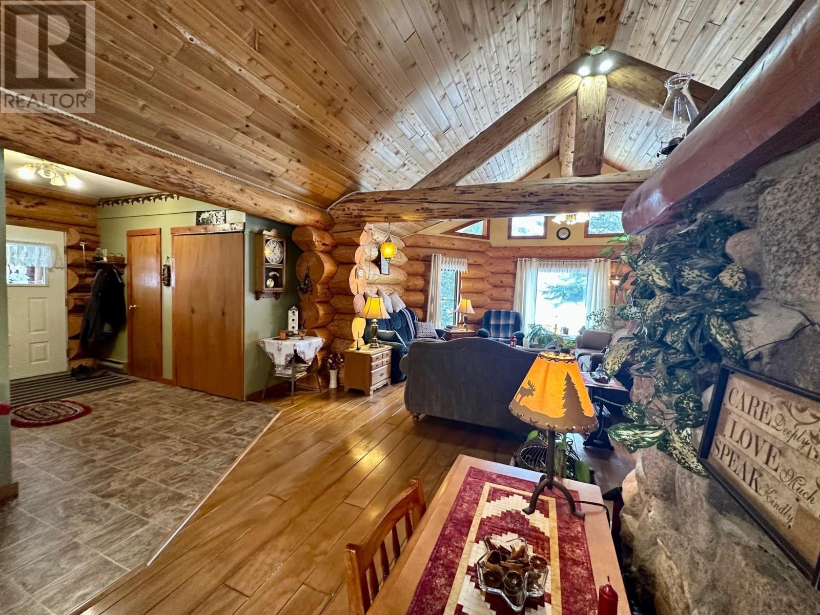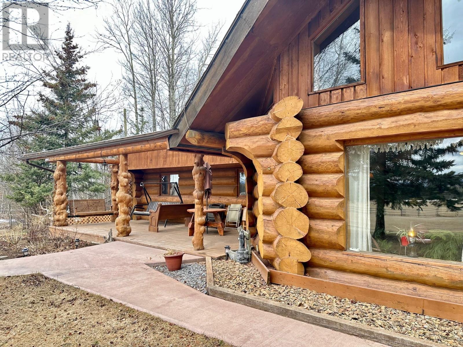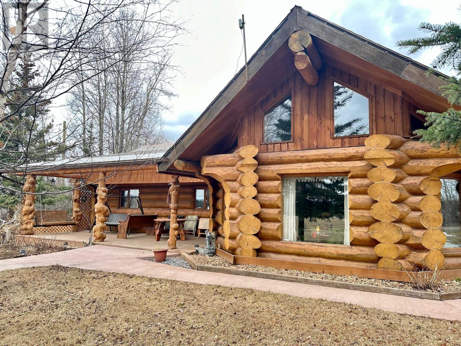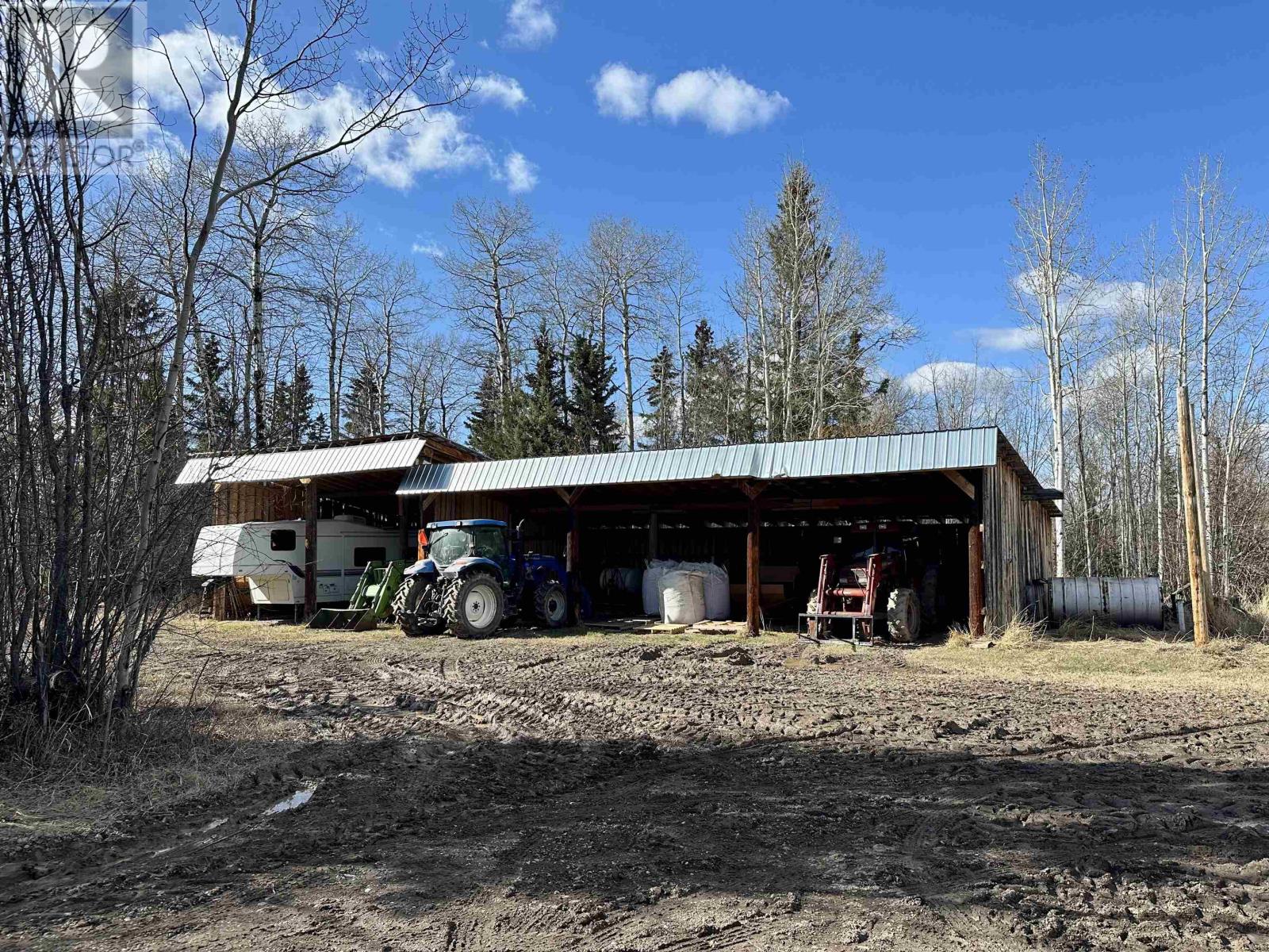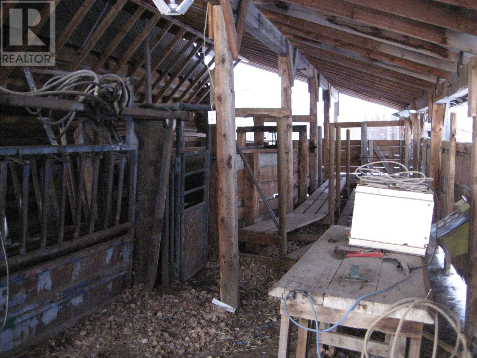 A country setting close to Vanderhoof. This farm of approximately 260 acres features about 100 acres of either hay or pasture, a large 2 bedroom log home with an incredible view from the living room and deck, a 42' X 36' shop with 2 12 ft. lean to's, a mezzanine in the shop for someone to sleep in, barn 40' X 34' with box stalls and hay loft, large 24'x78' machine shed, corrals with 2 stock waters. The home features 2 bedrooms, 2 1/2 baths, large living room with rock fireplace, a dining room with a pellet insert fireplace with a sitting area and much more. The property has a caretaker living in a mobile home pad, the buyer can continue working with the tenant, purchase the modular separately, or ask for it to be removed. (id:22211)
