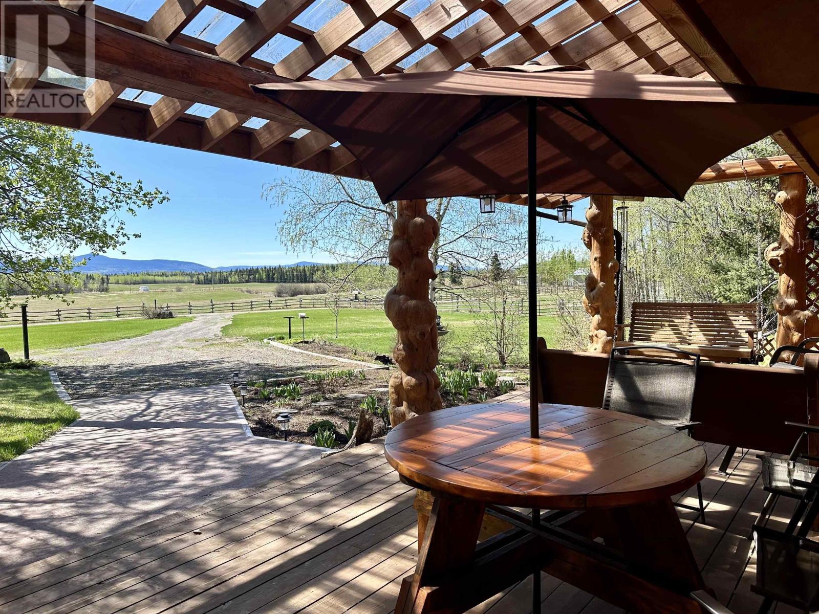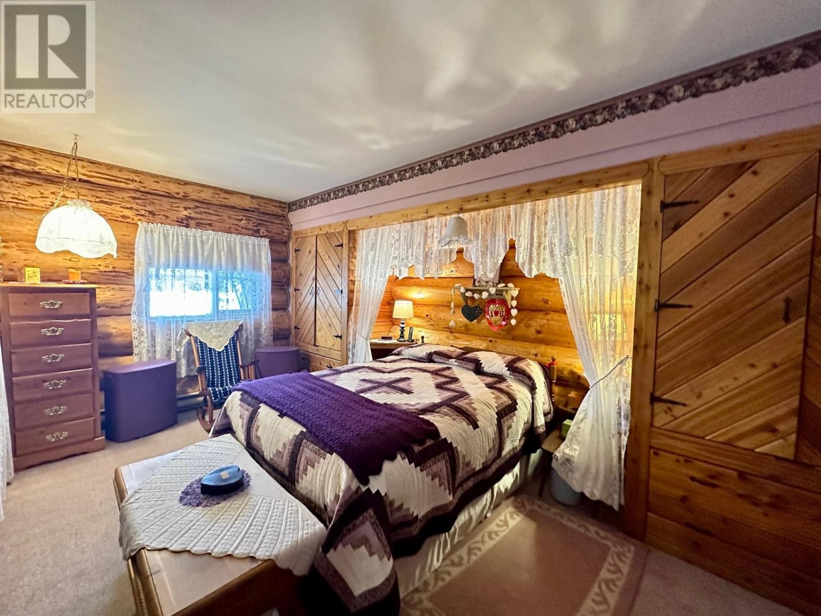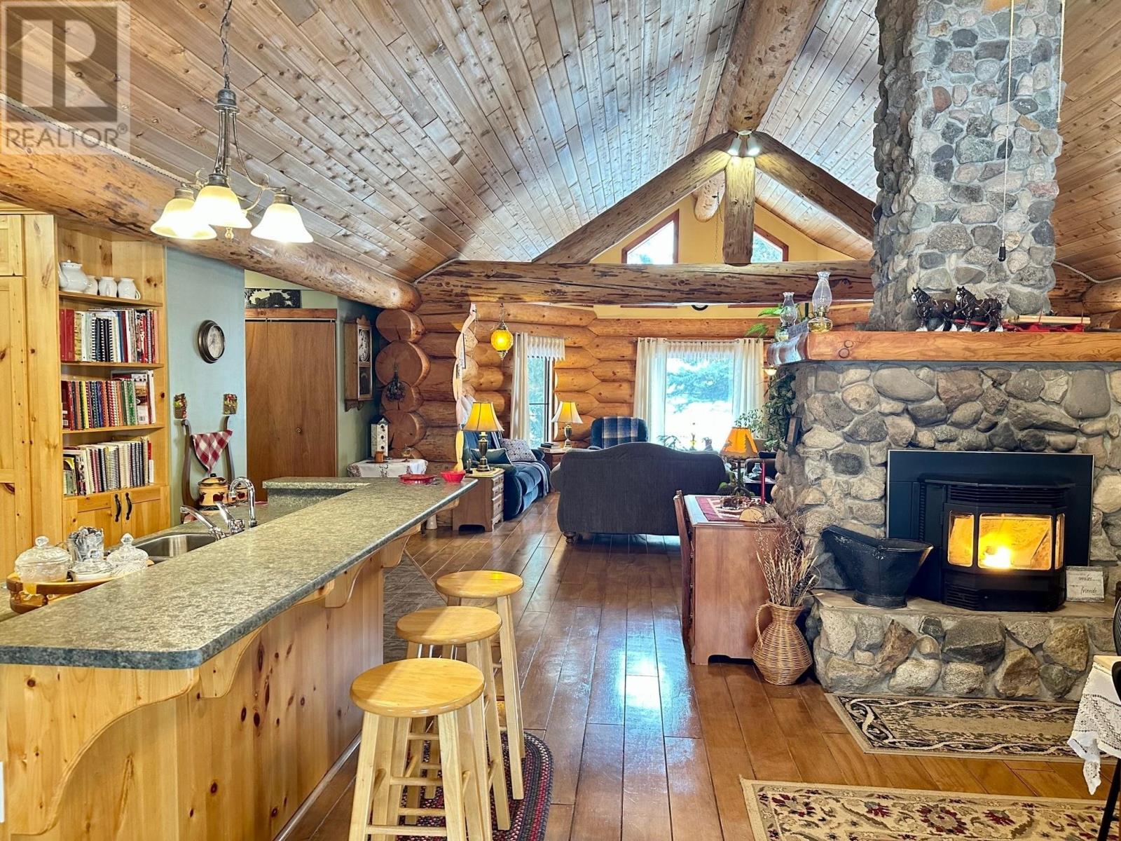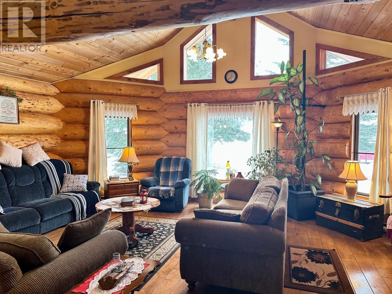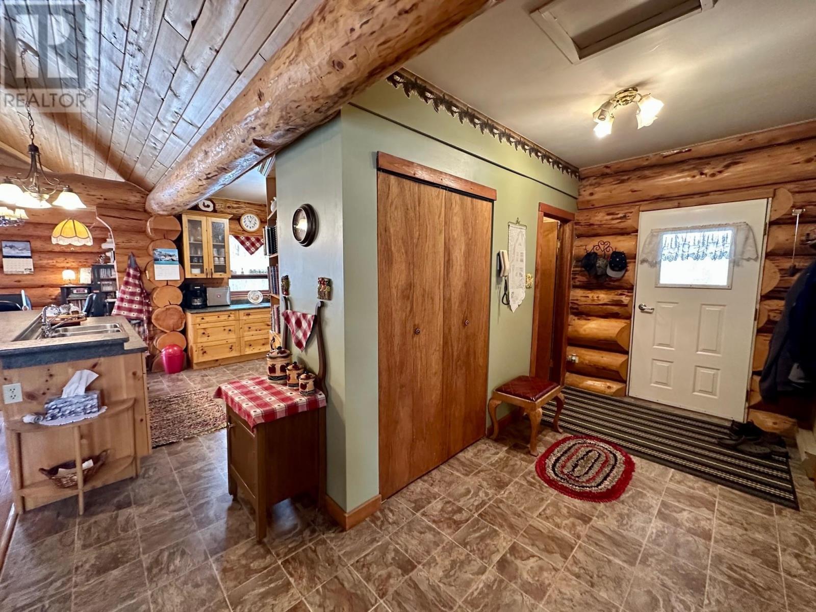 A country setting close to Vanderhoof. This farm of approximately 260 acres features about 100 acres of either hay or pasture, a large 2 bedroom log home with an incredible view from the living room and deck, a 42' X 36' shop with 2 12 ft. lean to's, a mezzanine in the shop for someone to sleep in, barn 40' X 34' with box stalls and hay loft, large 24'x78' machine shed, corrals with 2 stock waters. The home features 2 bedrooms, 2 1/2 baths, large living room with rock fireplace, a dining room with a pellet insert fireplace with a sitting area and much more. The property has a caretaker living in a mobile home pad, the buyer can continue working with the tenant, purchase the modular separately, or ask for it to be removed. (id:22211)