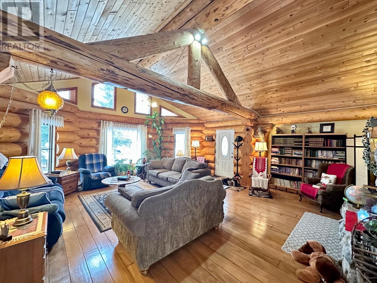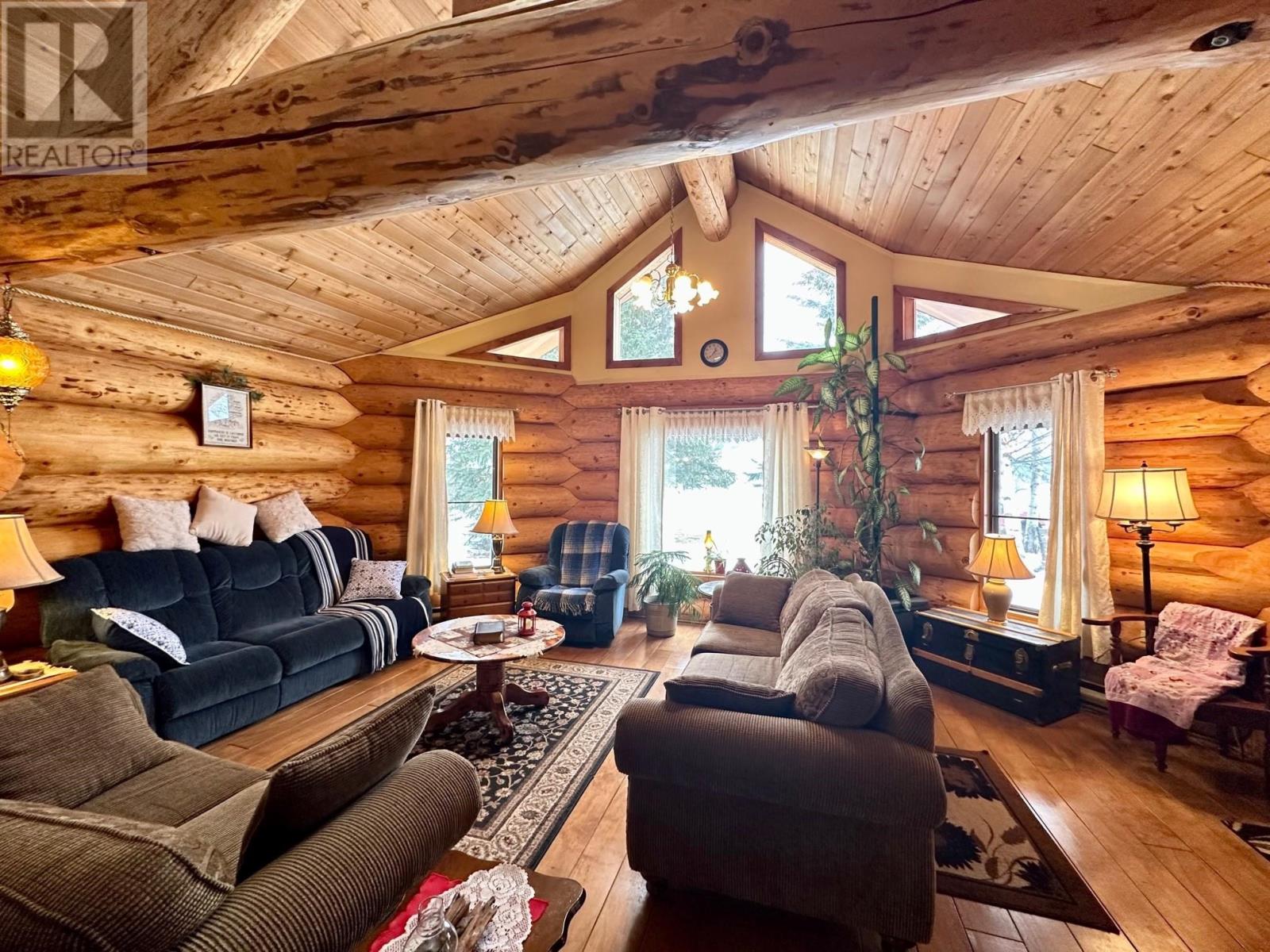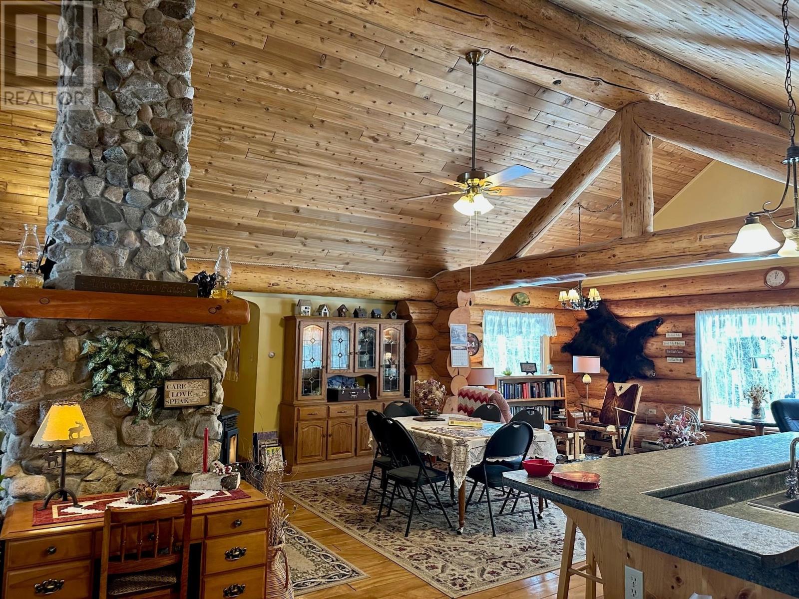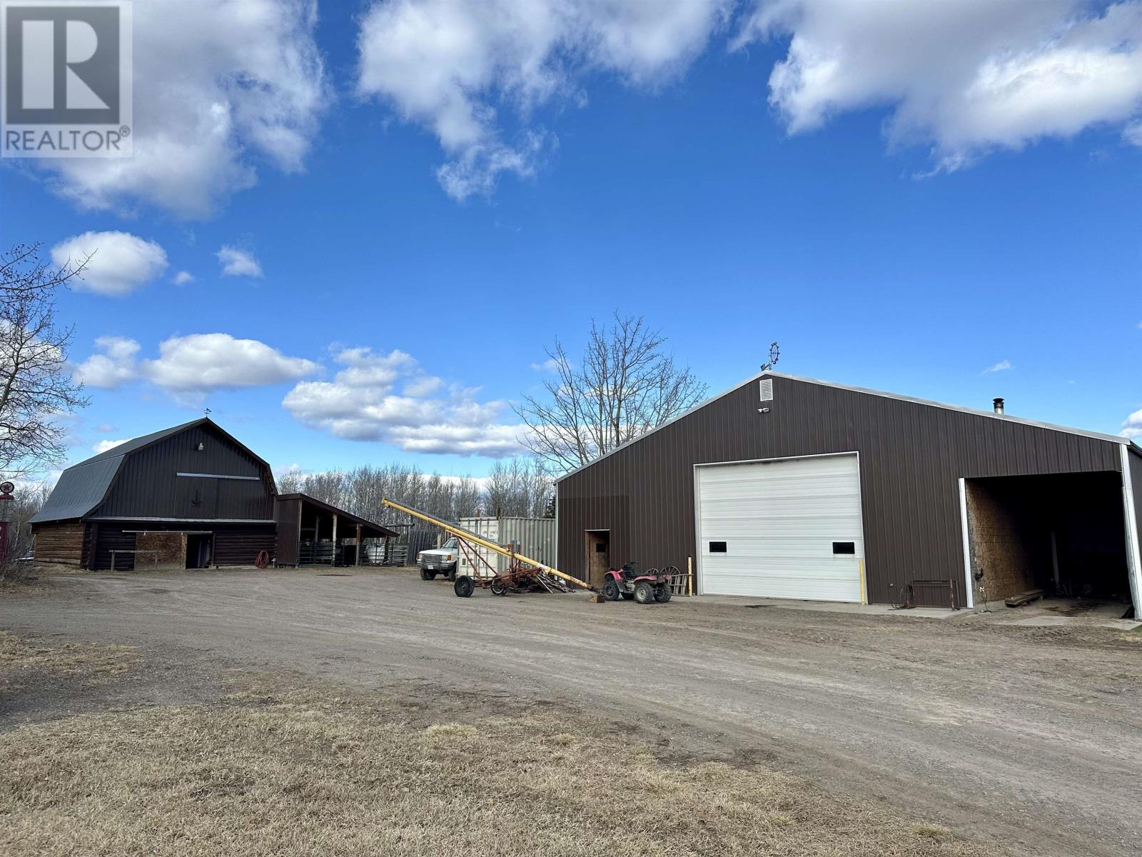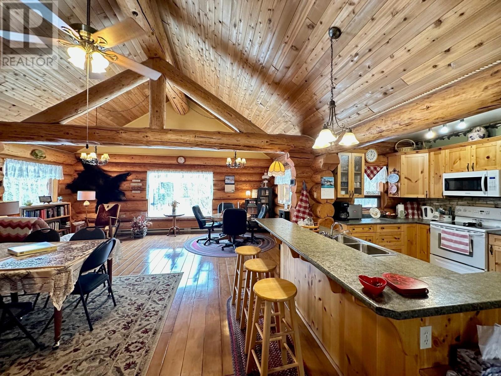 A country setting close to Vanderhoof. This farm of approximately 260 acres features about 100 acres of either hay or pasture, a large 2 bedroom log home with an incredible view from the living room and deck, a 42' X 36' shop with 2 12 ft. lean to's, a mezzanine in the shop for someone to sleep in, barn 40' X 34' with box stalls and hay loft, large 24'x78' machine shed, corrals with 2 stock waters. The home features 2 bedrooms, 2 1/2 baths, large living room with rock fireplace, a dining room with a pellet insert fireplace with a sitting area and much more. The property has a caretaker living in a mobile home pad, the buyer can continue working with the tenant, purchase the modular separately, or ask for it to be removed. (id:22211)