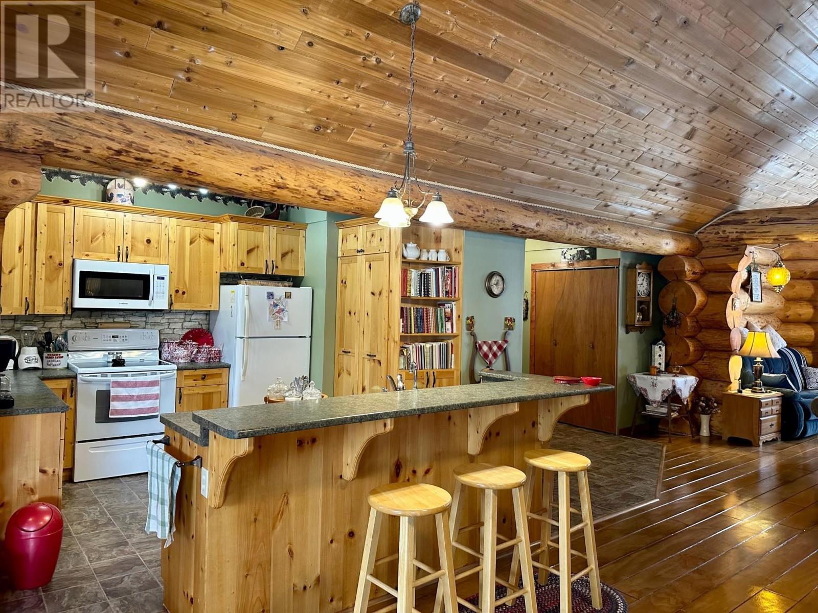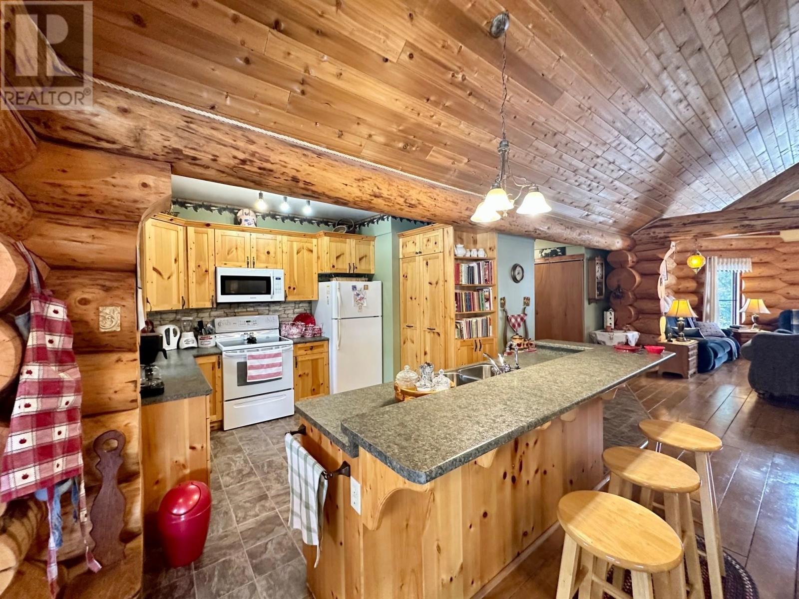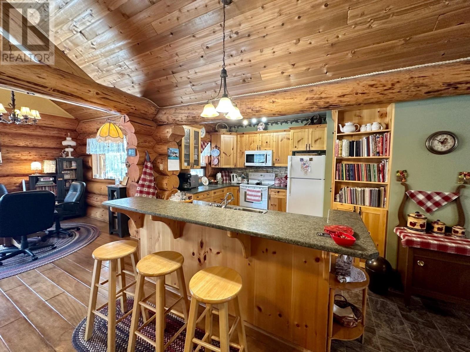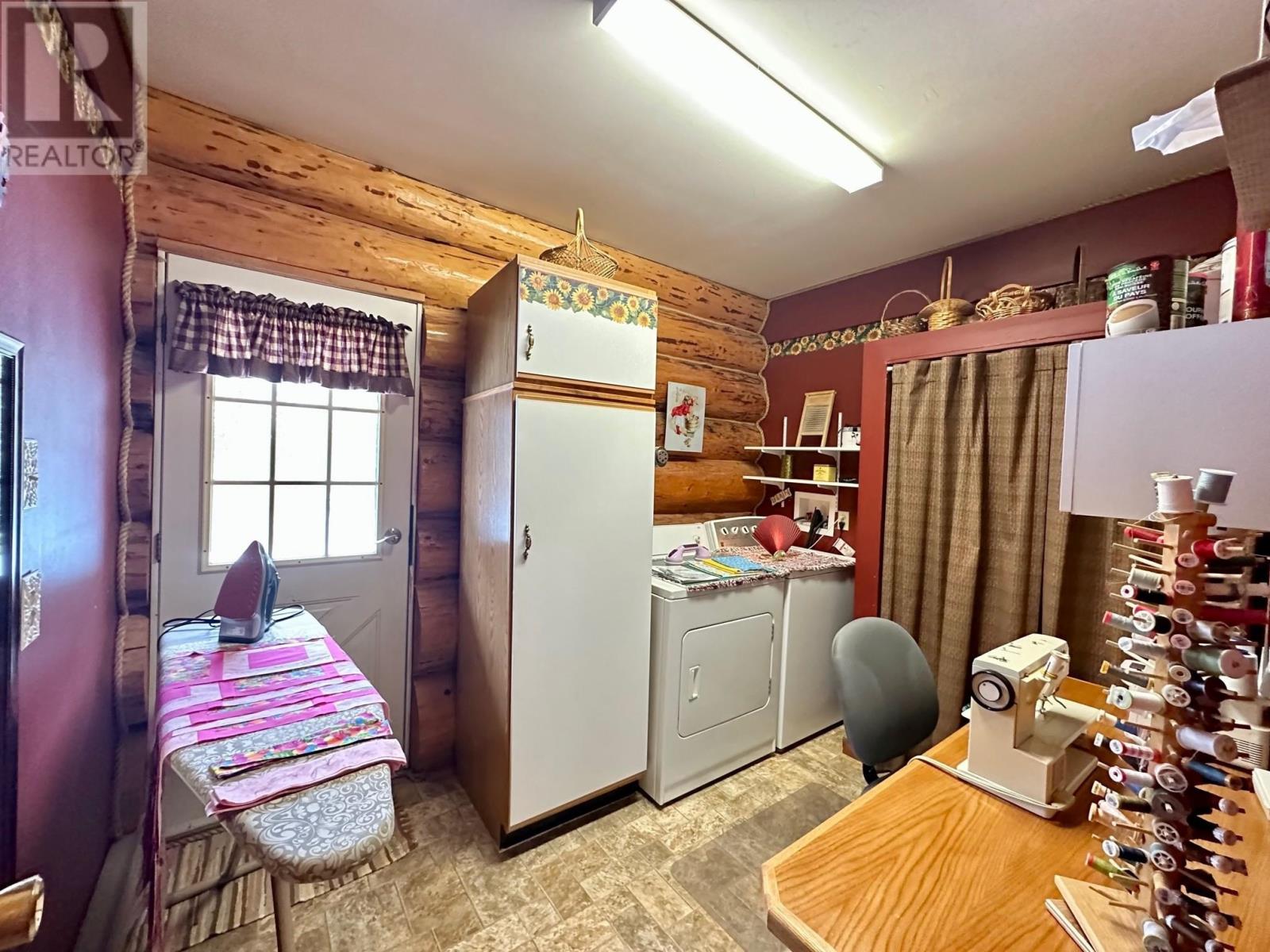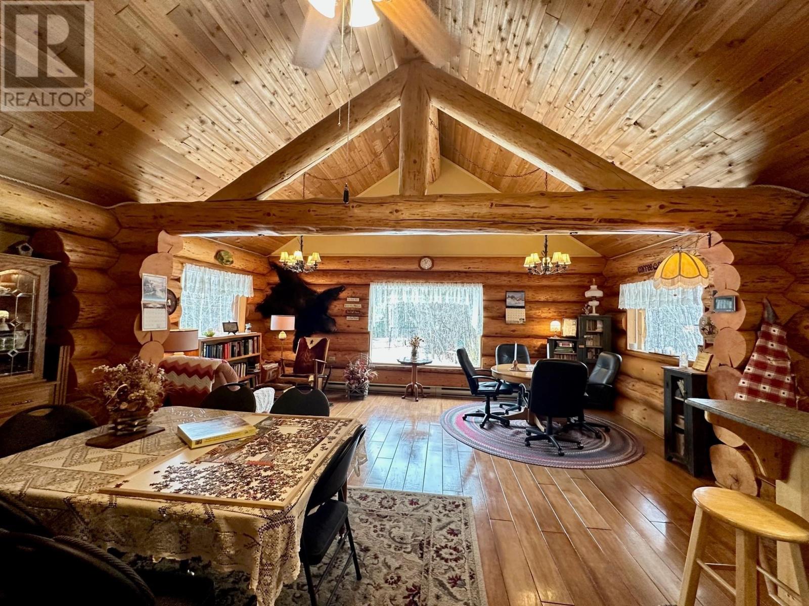 A country setting close to Vanderhoof. This farm of approximately 260 acres features about 100 acres of either hay or pasture, a large 2 bedroom log home with an incredible view from the living room and deck, a 42' X 36' shop with 2 12 ft. lean to's, a mezzanine in the shop for someone to sleep in, barn 40' X 34' with box stalls and hay loft, large 24'x78' machine shed, corrals with 2 stock waters. The home features 2 bedrooms, 2 1/2 baths, large living room with rock fireplace, a dining room with a pellet insert fireplace with a sitting area and much more. The property has a caretaker living in a mobile home pad, the buyer can continue working with the tenant, purchase the modular separately, or ask for it to be removed. (id:22211)