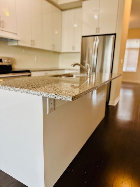 Welcome to this stunning home perfectly situated in one of the most desirable neighbourhoods at Bathurst and Rutherford. With over 2,300 square feet of beautifully designed living space, this home offers a seamless blend of comfort, style, and functionality.Upstairs, you'll find three spacious bedrooms, including a luxurious master retreat featuring a private en suite bathroom. Two additional bedrooms share a full bathroom, ideal for a growing family.The main floor boasts a versatile den that can serve as a fourth bedroom or home office, complete with its own bathroom for added convenience. The open-concept layout connects a modern kitchen with sleek, neutral finishes to the bright and airy living room, dining room, and family room perfect for entertaining or everyday living. Step outside to a backyard featuring a deck, ideal for BBQing or hosting gatherings.. Don't miss your opportunity to own this elegant and functional home in a prime location close to schools, parks, shopping, and transit.