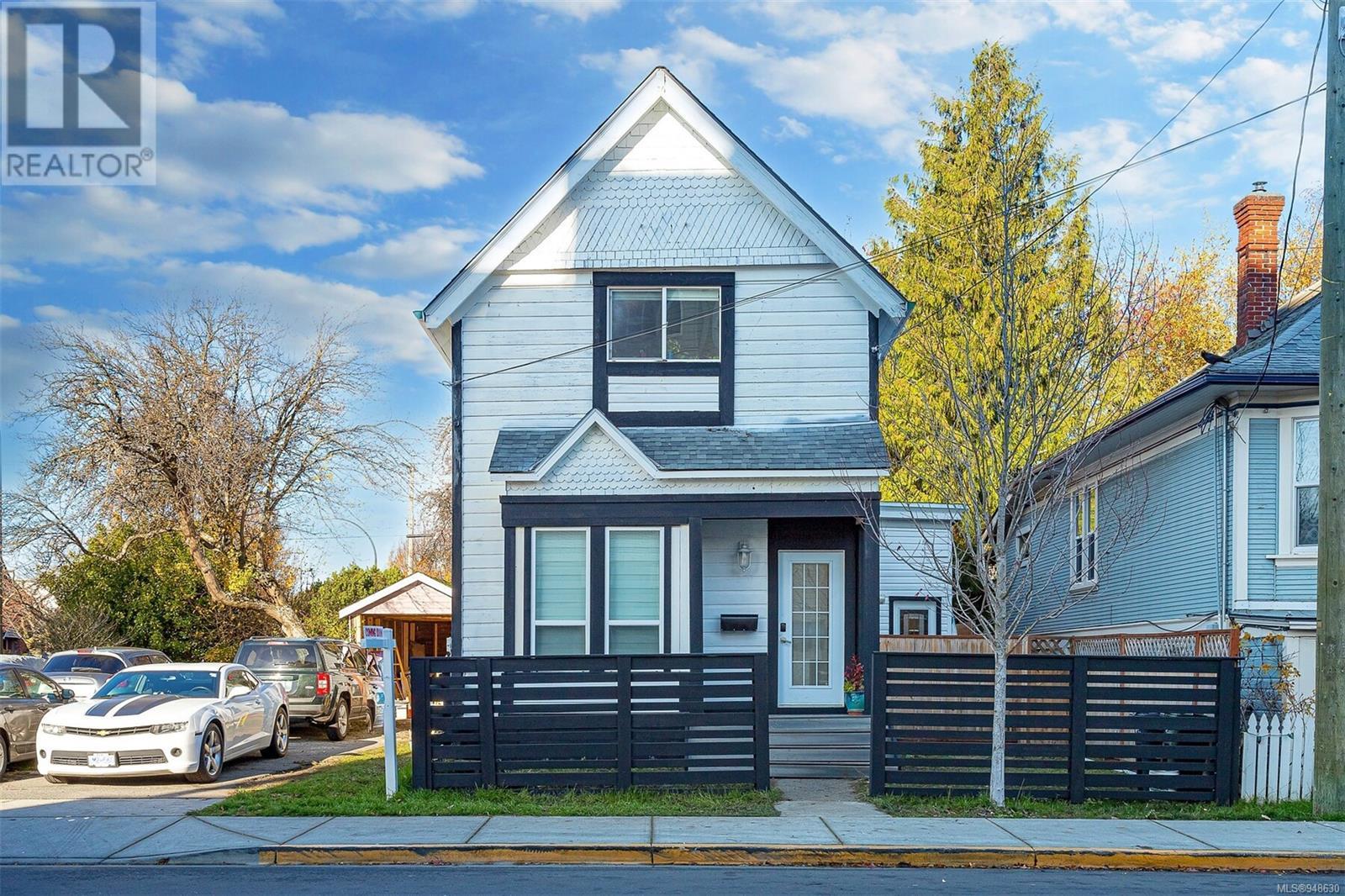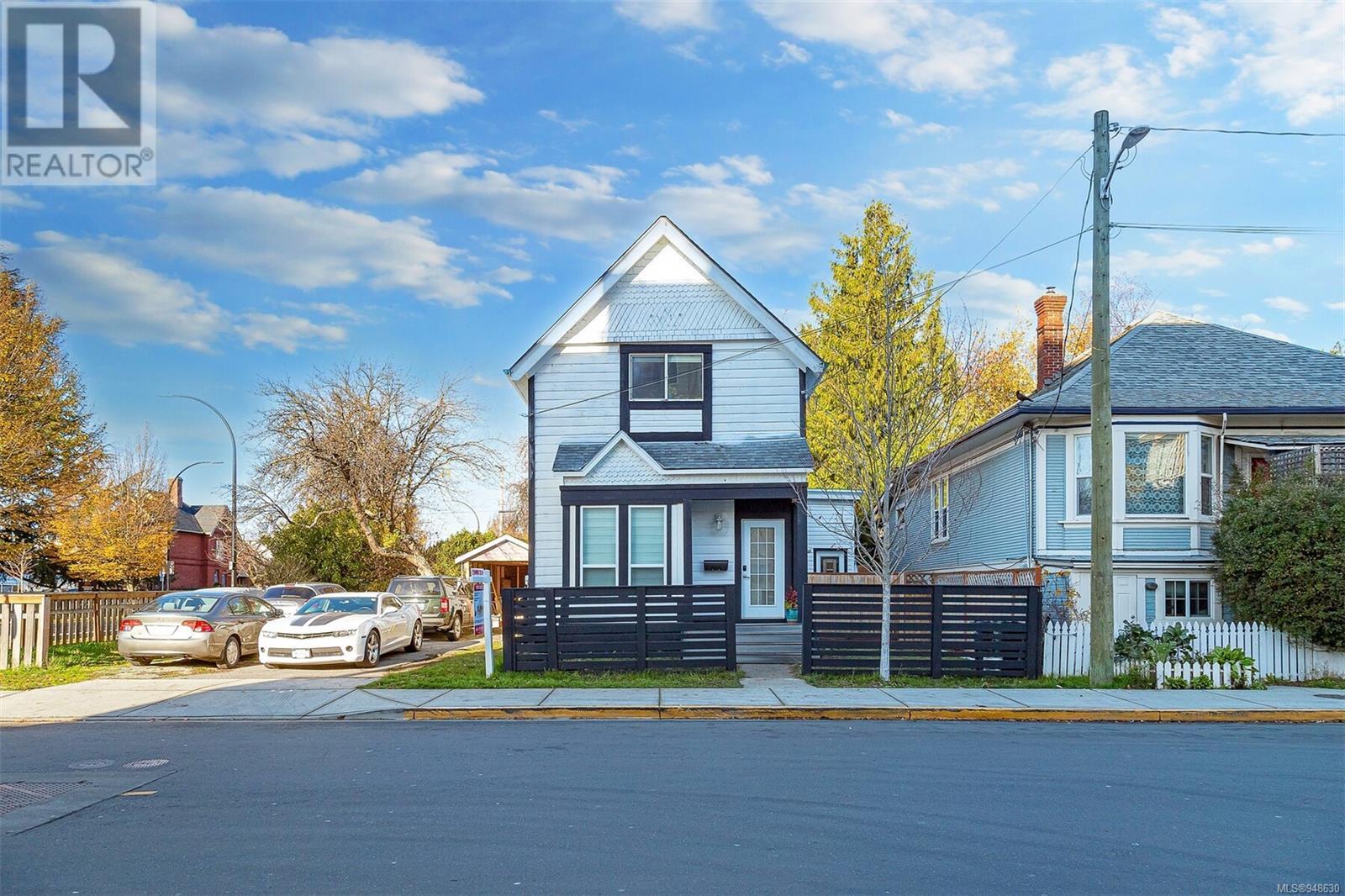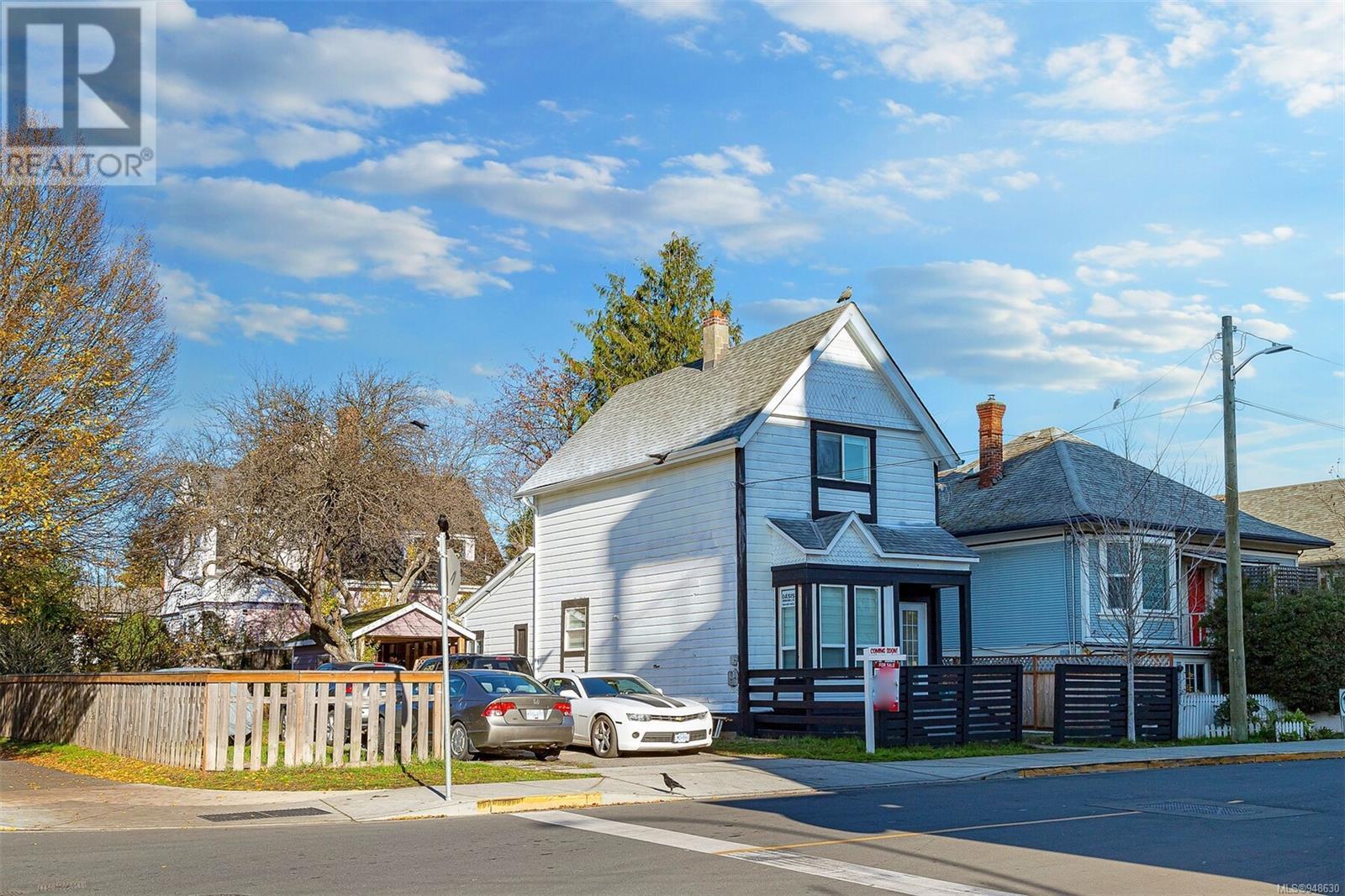 Attention builders developers! Harris Green area in vibrant Victoria updated 1901 character home with newer roof, HWT, newer paint inside and out, stainless appliances, bathrooms, kitchen, thermo windows, baseboard heaters, some flooring, decks, exterior doors, fence and front porch and side veranda redone. BRIGHT UPDATED home with warm wood floors, wood accents and skylights. The living room, dining room, kitchen, 2pc and 4pc bath, storage/laundry room and 4th bedroom on the main floor and 3 bedrooms up. The outbuilding shed was redone with parking for several cars on this larger corner lot. Zoned R2 already. Great central location in the heart of everything with high walk score, steps to shopping, bus, Crystal Pool, parks, restaurants, biking trails, ocean and schools. Quiet established neighbourhood with garden/green space right downtown. This family-sized home is currently rented for $3,600 + utilities. Take advantage of huge potential as investment holding property and added development opportunity (as full drawings survey and plans to double in size as a legal duplex or create a strata duplex addition are included). Seller recently spent close to $100K in updates! (id:22211)