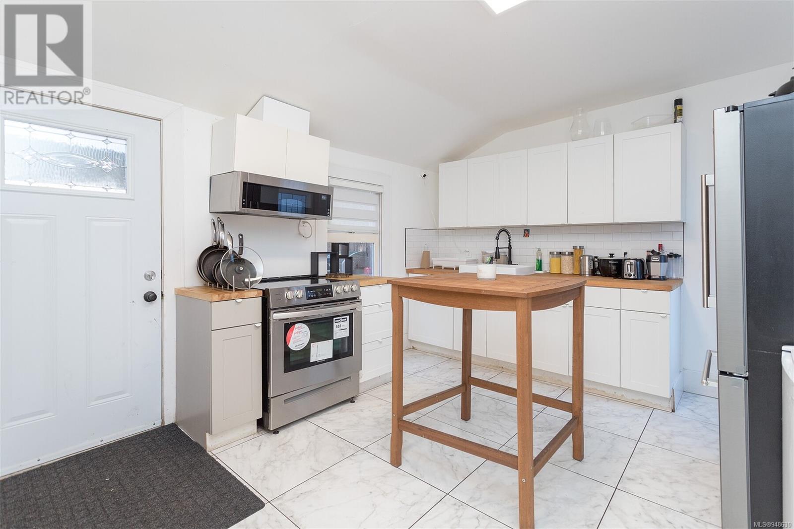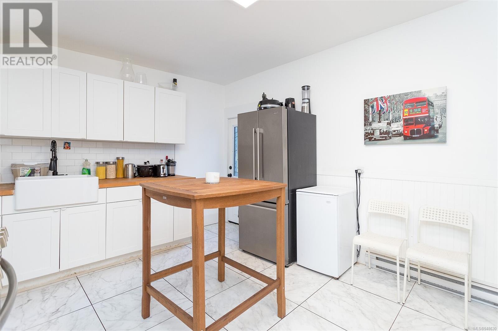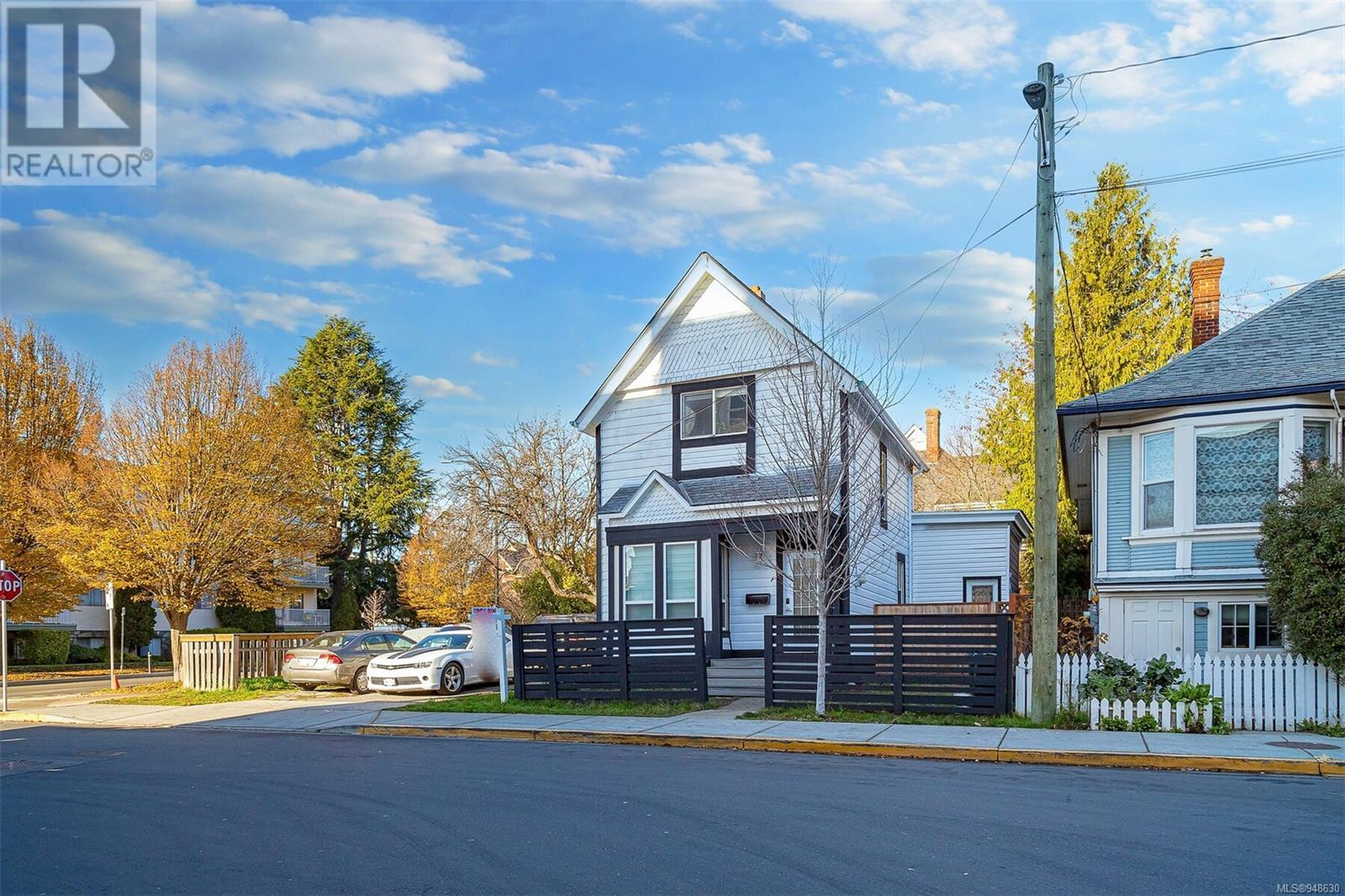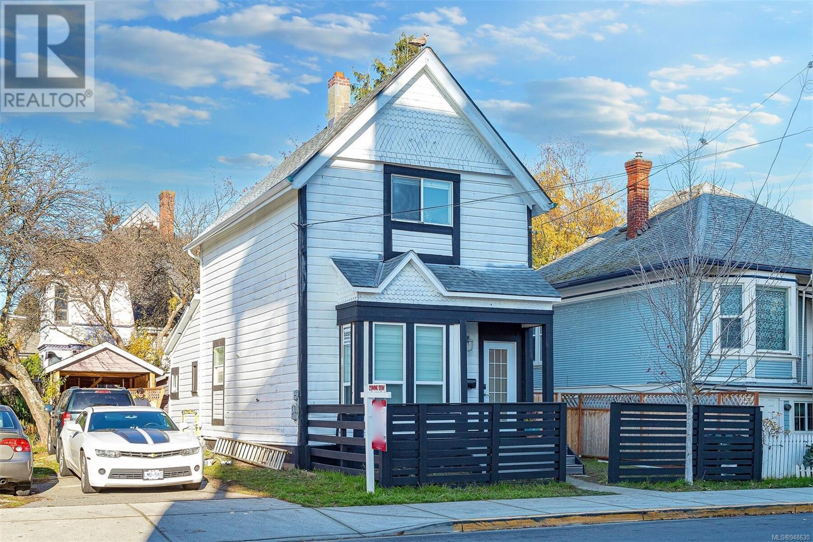 Attention builders developers! Harris Green area in vibrant Victoria updated 1901 character home with newer roof, HWT, newer paint inside and out, stainless appliances, bathrooms, kitchen, thermo windows, baseboard heaters, some flooring, decks, exterior doors, fence and front porch and side veranda redone. BRIGHT UPDATED home with warm wood floors, wood accents and skylights. The living room, dining room, kitchen, 2pc and 4pc bath, storage/laundry room and 4th bedroom on the main floor and 3 bedrooms up. The outbuilding shed was redone with parking for several cars on this larger corner lot. Zoned R2 already. Great central location in the heart of everything with high walk score, steps to shopping, bus, Crystal Pool, parks, restaurants, biking trails, ocean and schools. Quiet established neighbourhood with garden/green space right downtown. This family-sized home is currently rented for $3,600 + utilities. Take advantage of huge potential as investment holding property and added development opportunity (as full drawings survey and plans to double in size as a legal duplex or create a strata duplex addition are included). Seller recently spent close to $100K in updates! (id:22211)