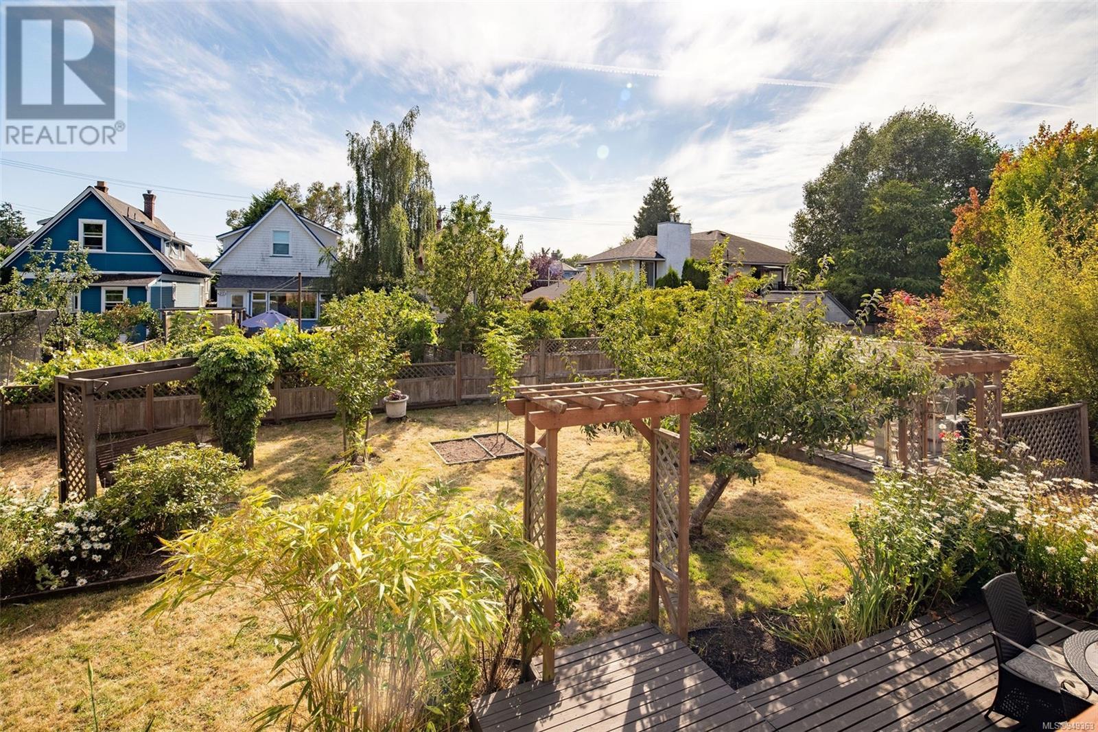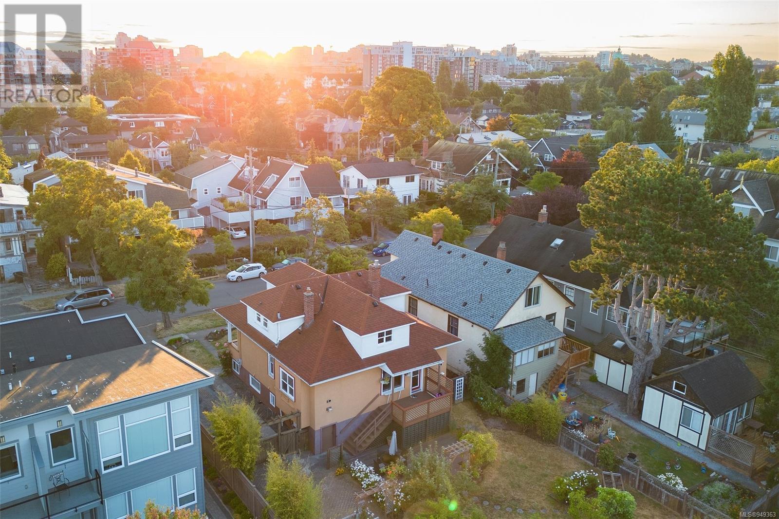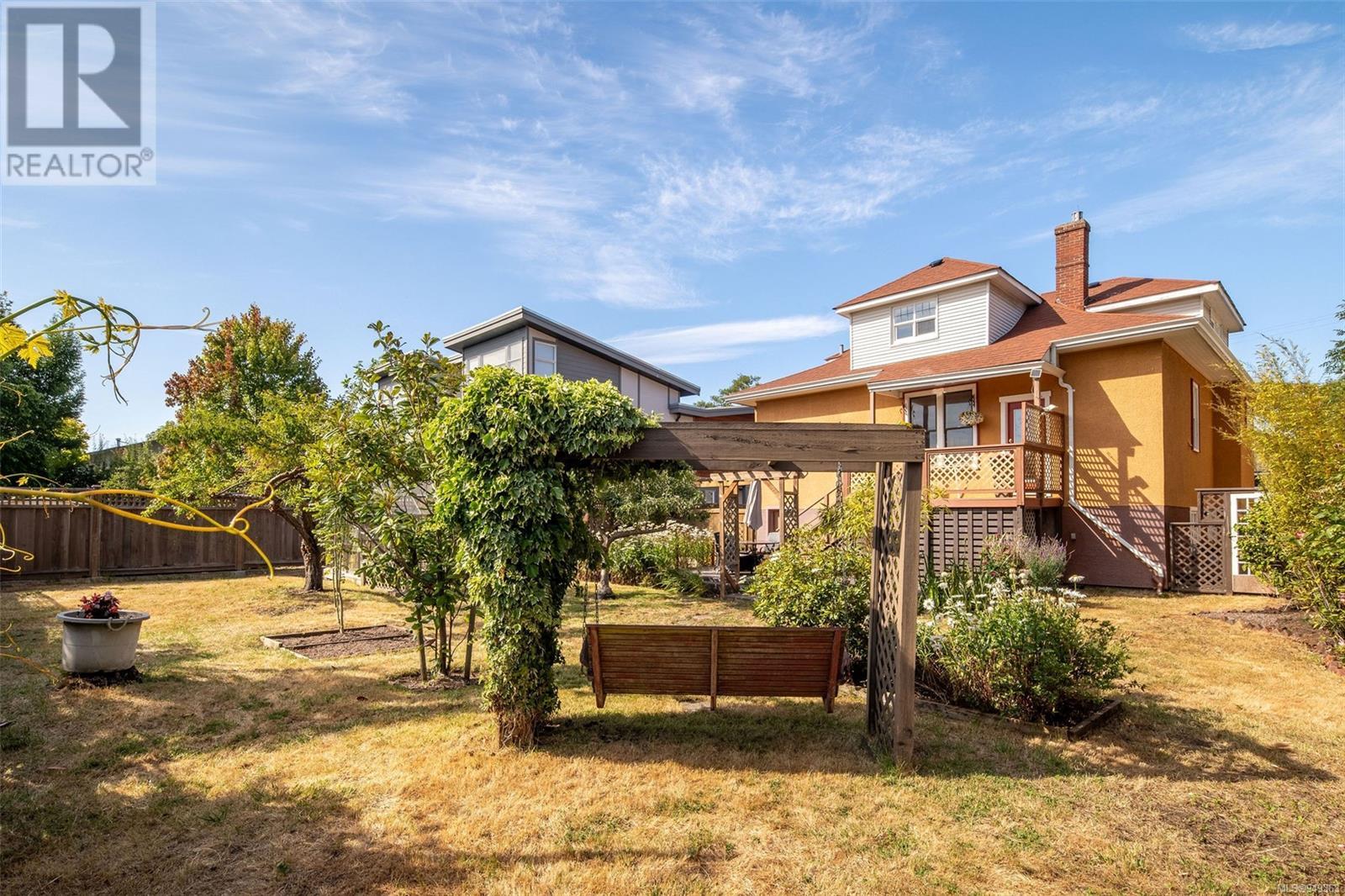 James Bay! This lovingly maintained 3 level home with a legal garden level income producing suite is situated on an expansive double wide 60x120 lot and has a wonderfully SUNNY SOUTH FACING BACKYARD. The upper main home has 2 levels with a RARE WHOPPING 4 bedrooms and 2 baths! Enjoy the extra spacious living, dining room, kitchen w/ office with lofty 11ft ceilings. Below, 2/3rd’s of the garden level has an efficiently laid out 2 bed/1 bath suite, the remaining is a handy storage and laundry for the main home. What makes this home special? No tall buildings looking in on you! Quiet street! Friendly neighbourhood! Home is privately perched away from the street! Supersized backyard! Gardens galore! YOU BENEFIT from the future development potential! The home is located only a few blocks to the Breakwater, Fisherman's Wharf and Macdonald Park is right around the corner. (id:22211)