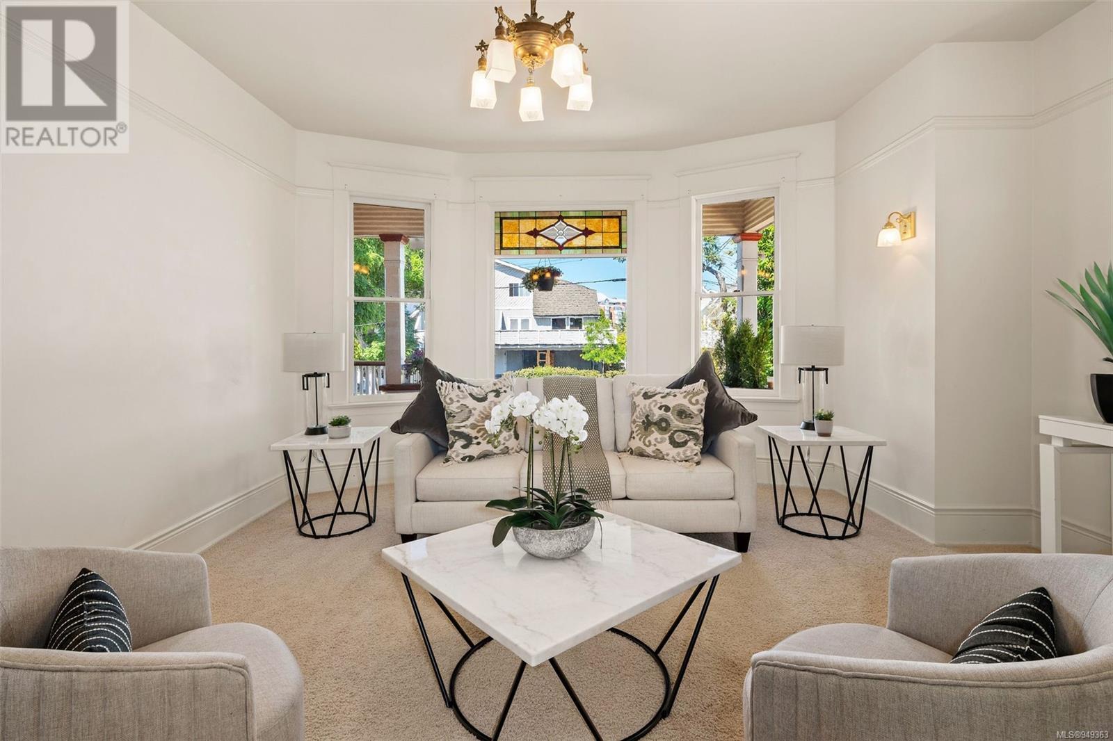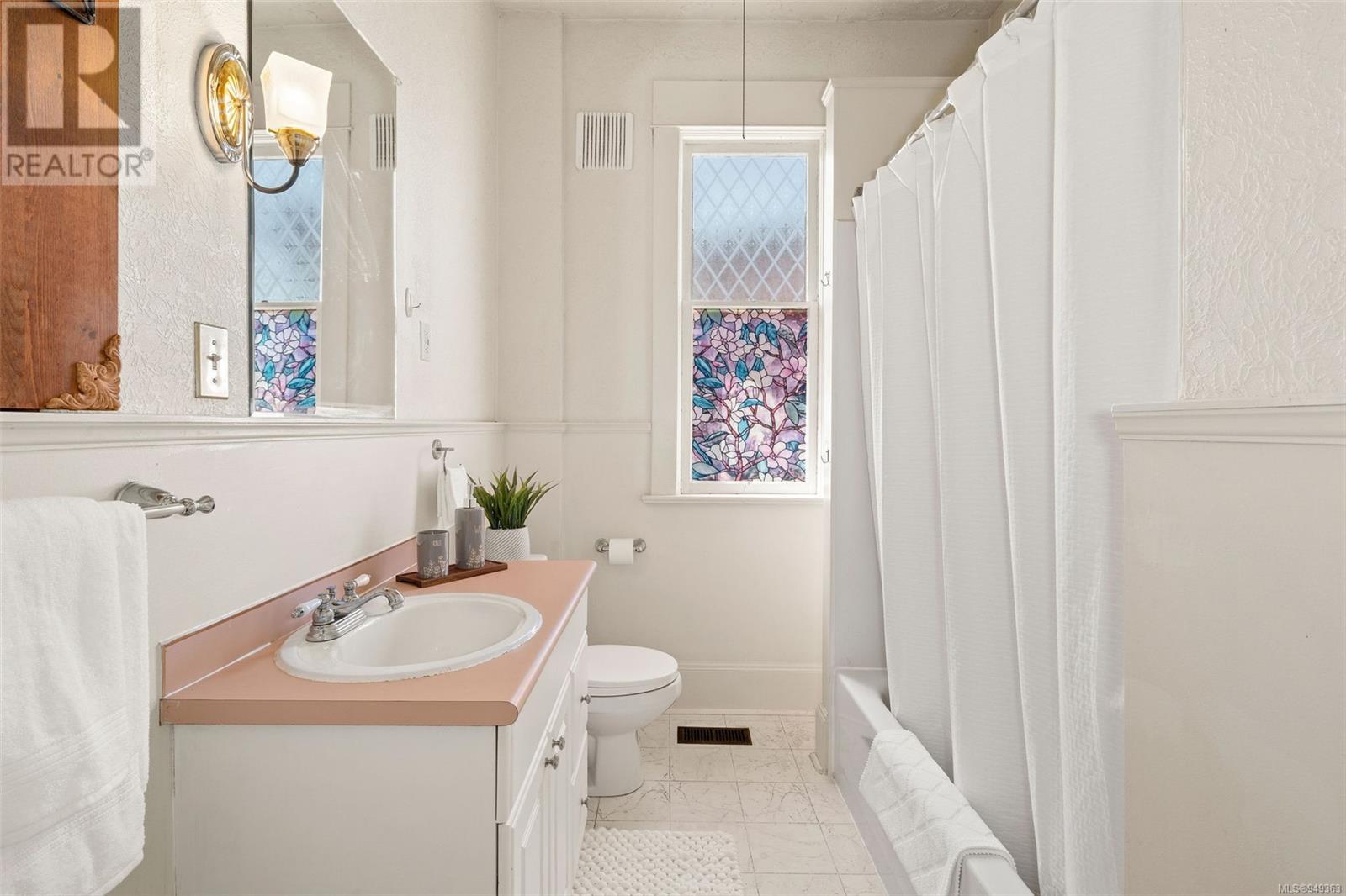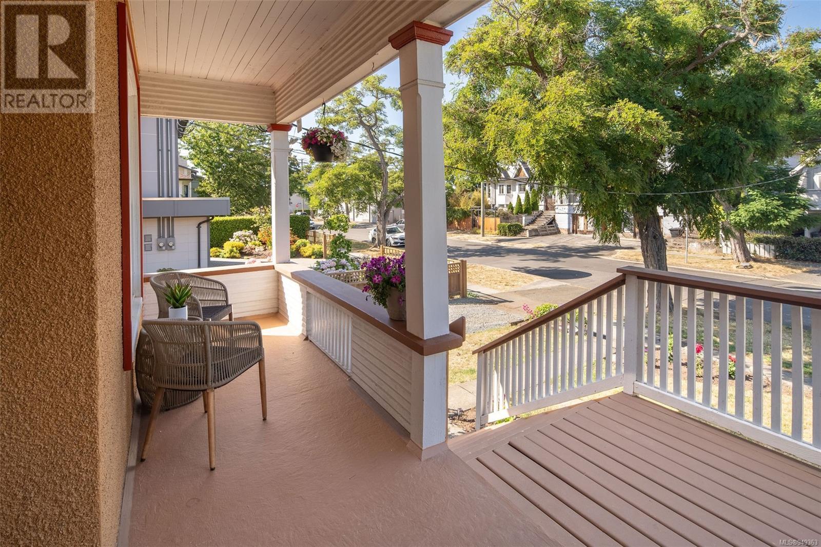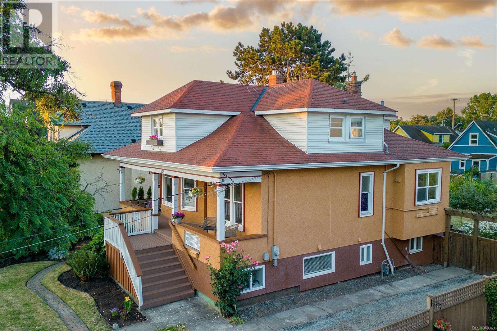 James Bay! This lovingly maintained 3 level home with a legal garden level income producing suite is situated on an expansive double wide 60x120 lot and has a wonderfully SUNNY SOUTH FACING BACKYARD. The upper main home has 2 levels with a RARE WHOPPING 4 bedrooms and 2 baths! Enjoy the extra spacious living, dining room, kitchen w/ office with lofty 11ft ceilings. Below, 2/3rd’s of the garden level has an efficiently laid out 2 bed/1 bath suite, the remaining is a handy storage and laundry for the main home. What makes this home special? No tall buildings looking in on you! Quiet street! Friendly neighbourhood! Home is privately perched away from the street! Supersized backyard! Gardens galore! YOU BENEFIT from the future development potential! The home is located only a few blocks to the Breakwater, Fisherman's Wharf and Macdonald Park is right around the corner. (id:22211)