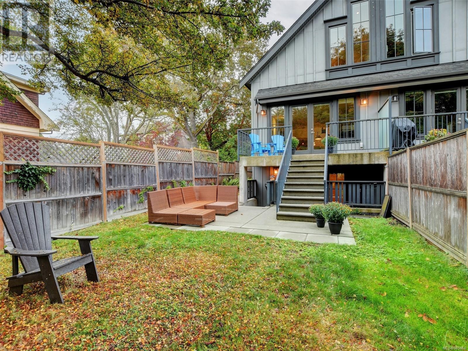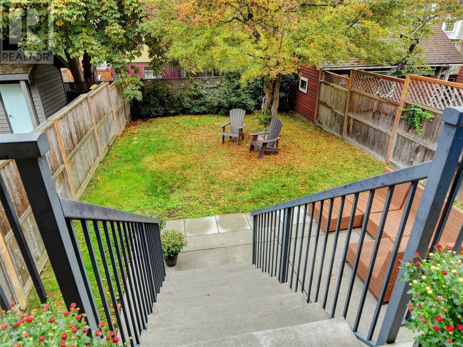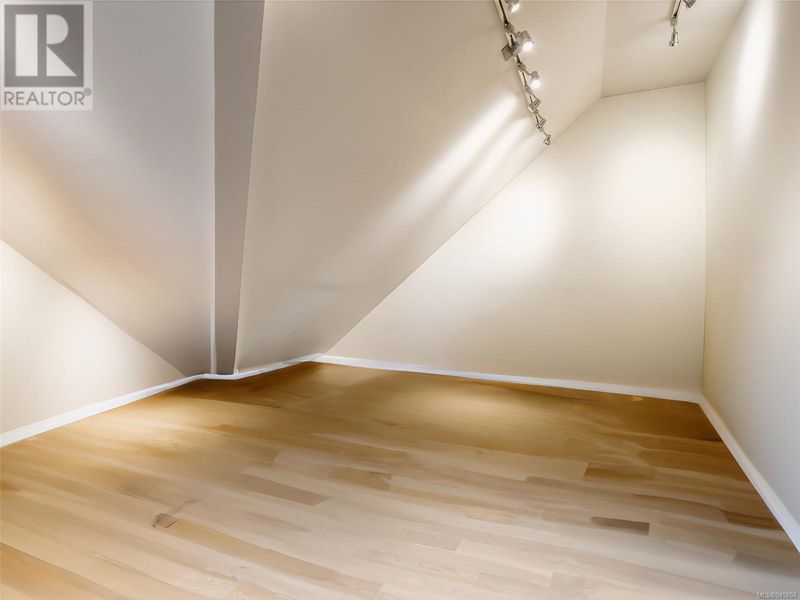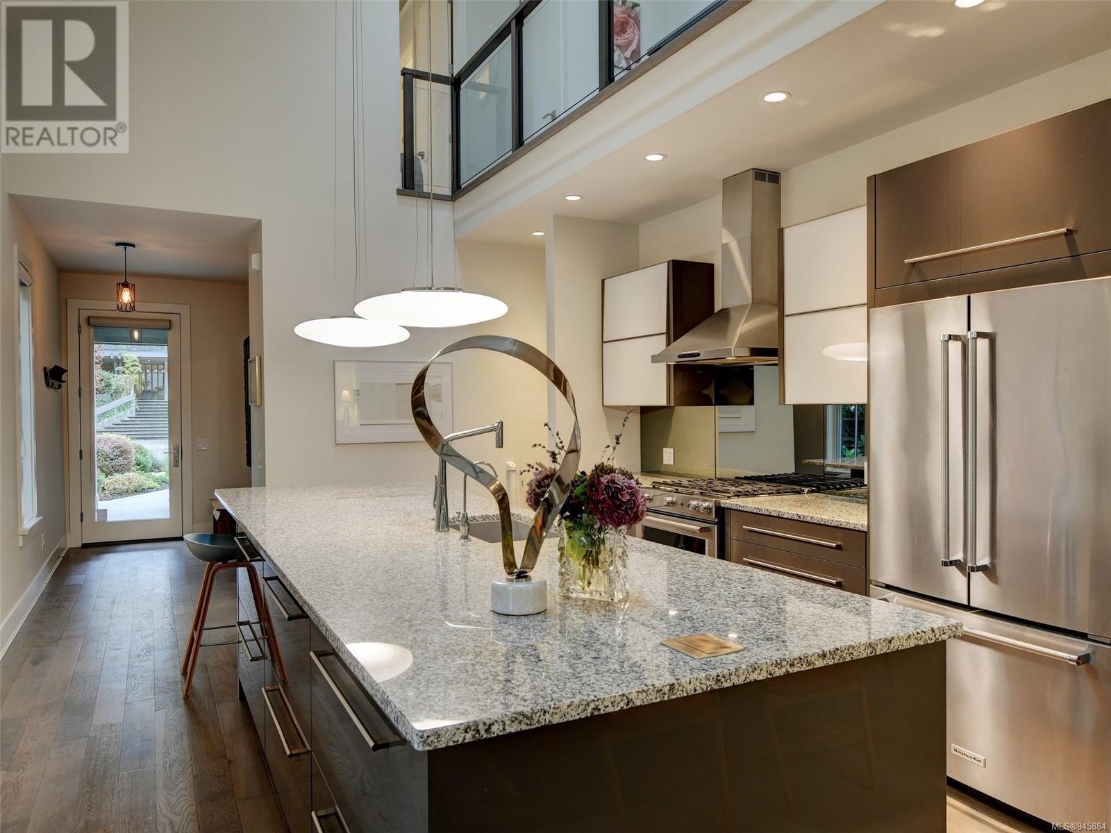 Prepare yourself for an experience when you step in the front entrance of this posh pad on one of James Bay's best streets. You'll feel the essence of this home immediately. Designed by Bruce Wilkin with form and function in mind, and just perhaps an edge with dramatic results. A 20' ceiling provides wall space for the most sizable art and the flow is perfect for seamless entertaining. Hardwood throughout with underfloor heat on all 3 levels. Detailed finishing with quality materials both inside and out lend a step-above flair, including the concrete deck and steps off the living room to a west facing garden. A catwalk connects 2 vaulted bedrooms up, each with ensuites, and a future 216' gym/closet/office is yours for the finishing. The lower level walkout offers flex with a fitness/rec room/nanny/home office with a 3rd bedroom, bath & laundry. Just minutes to the ocean, Beacon Hill Park, downtown, and the shopping on Menzies and Cook Streets. (id:22211)