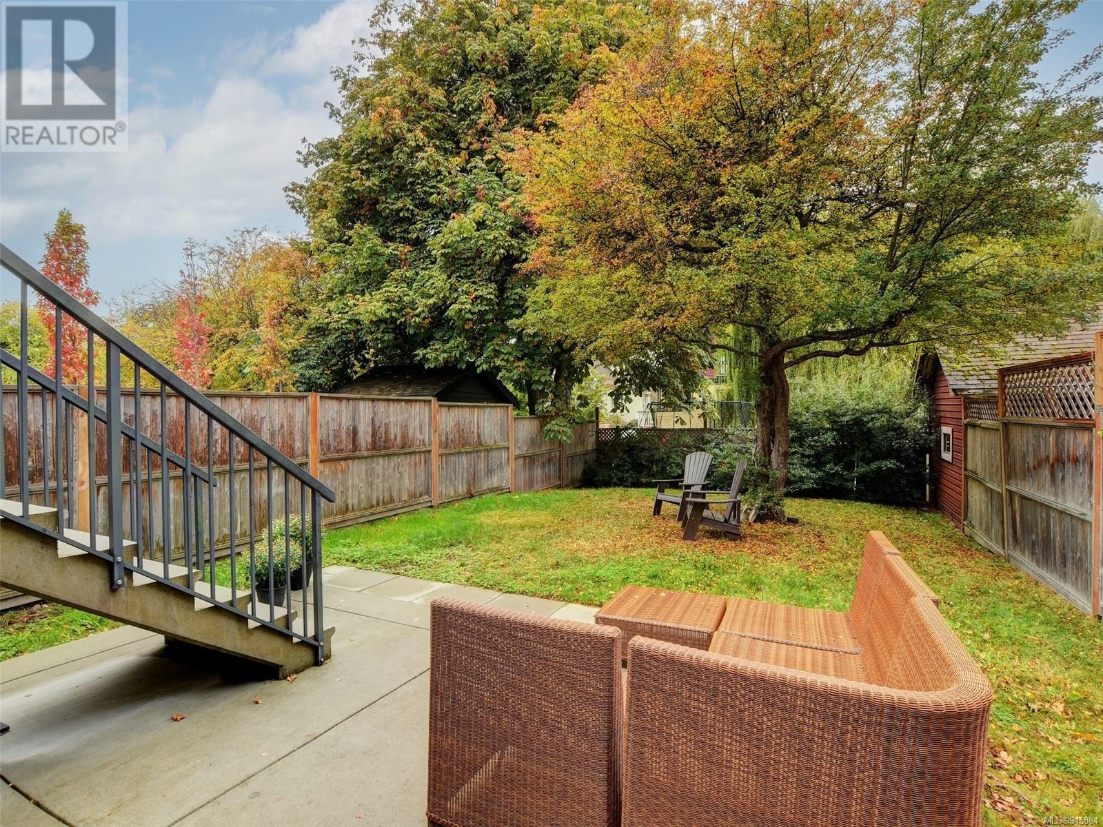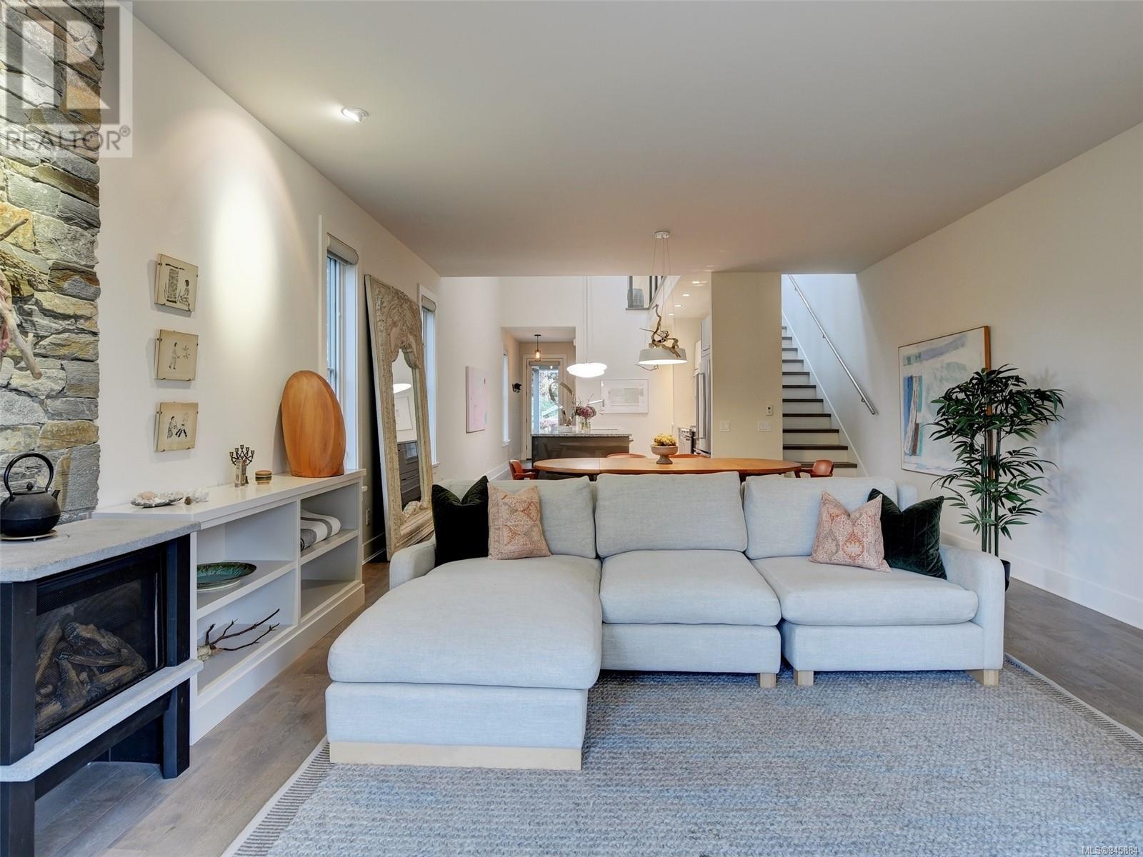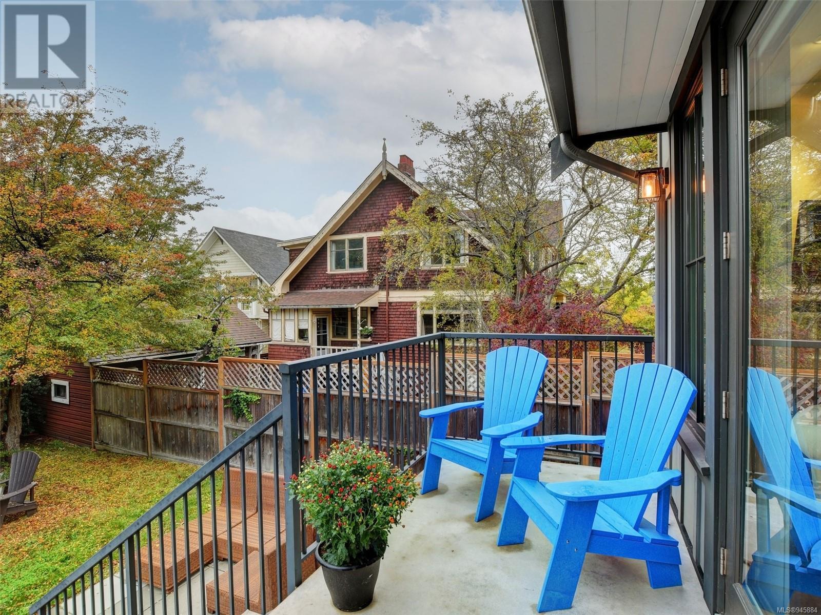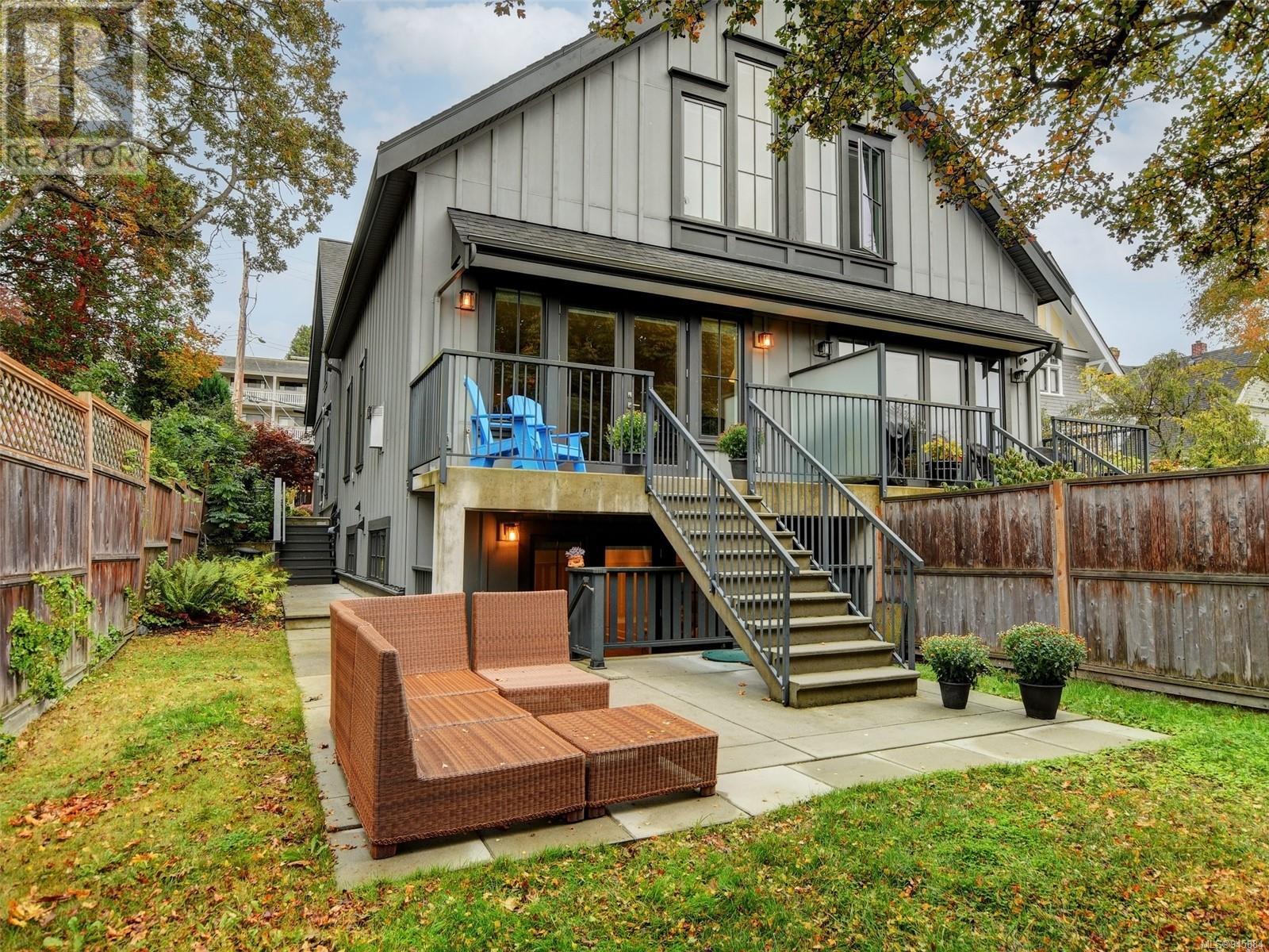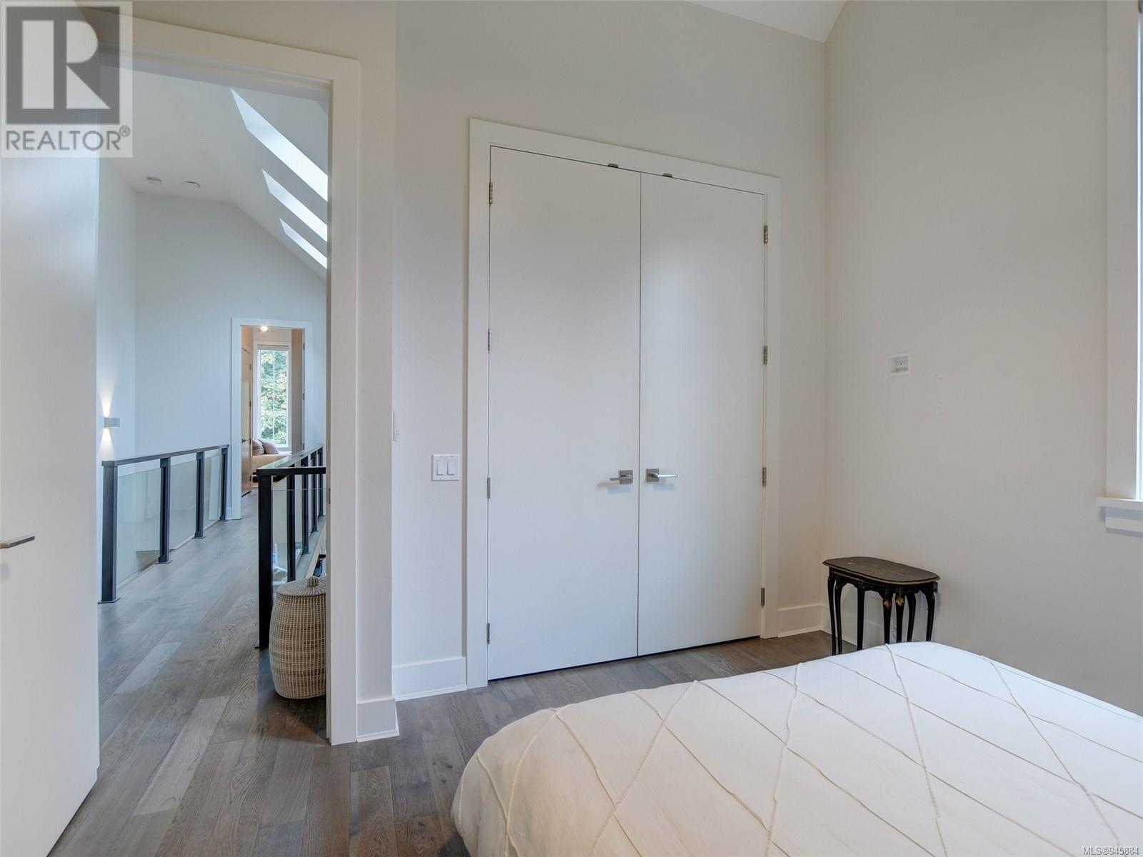 Prepare yourself for an experience when you step in the front entrance of this posh pad on one of James Bay's best streets. You'll feel the essence of this home immediately. Designed by Bruce Wilkin with form and function in mind, and just perhaps an edge with dramatic results. A 20' ceiling provides wall space for the most sizable art and the flow is perfect for seamless entertaining. Hardwood throughout with underfloor heat on all 3 levels. Detailed finishing with quality materials both inside and out lend a step-above flair, including the concrete deck and steps off the living room to a west facing garden. A catwalk connects 2 vaulted bedrooms up, each with ensuites, and a future 216' gym/closet/office is yours for the finishing. The lower level walkout offers flex with a fitness/rec room/nanny/home office with a 3rd bedroom, bath & laundry. Just minutes to the ocean, Beacon Hill Park, downtown, and the shopping on Menzies and Cook Streets. (id:22211)