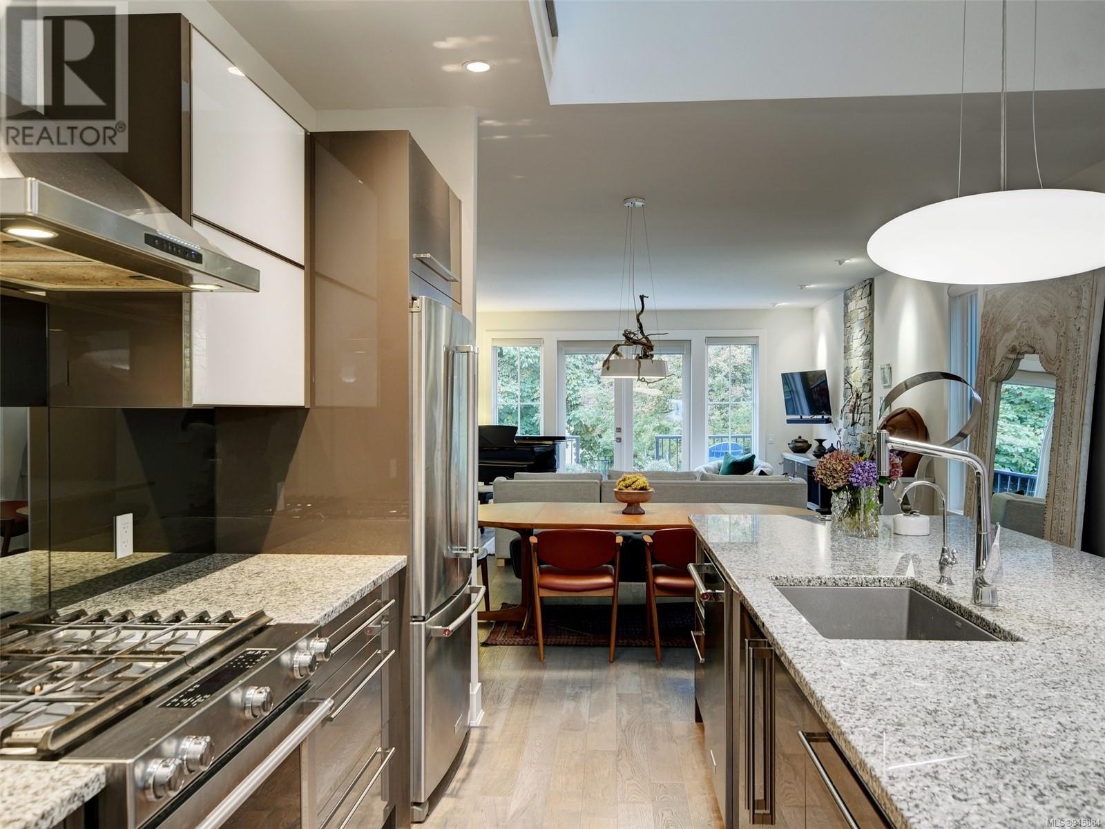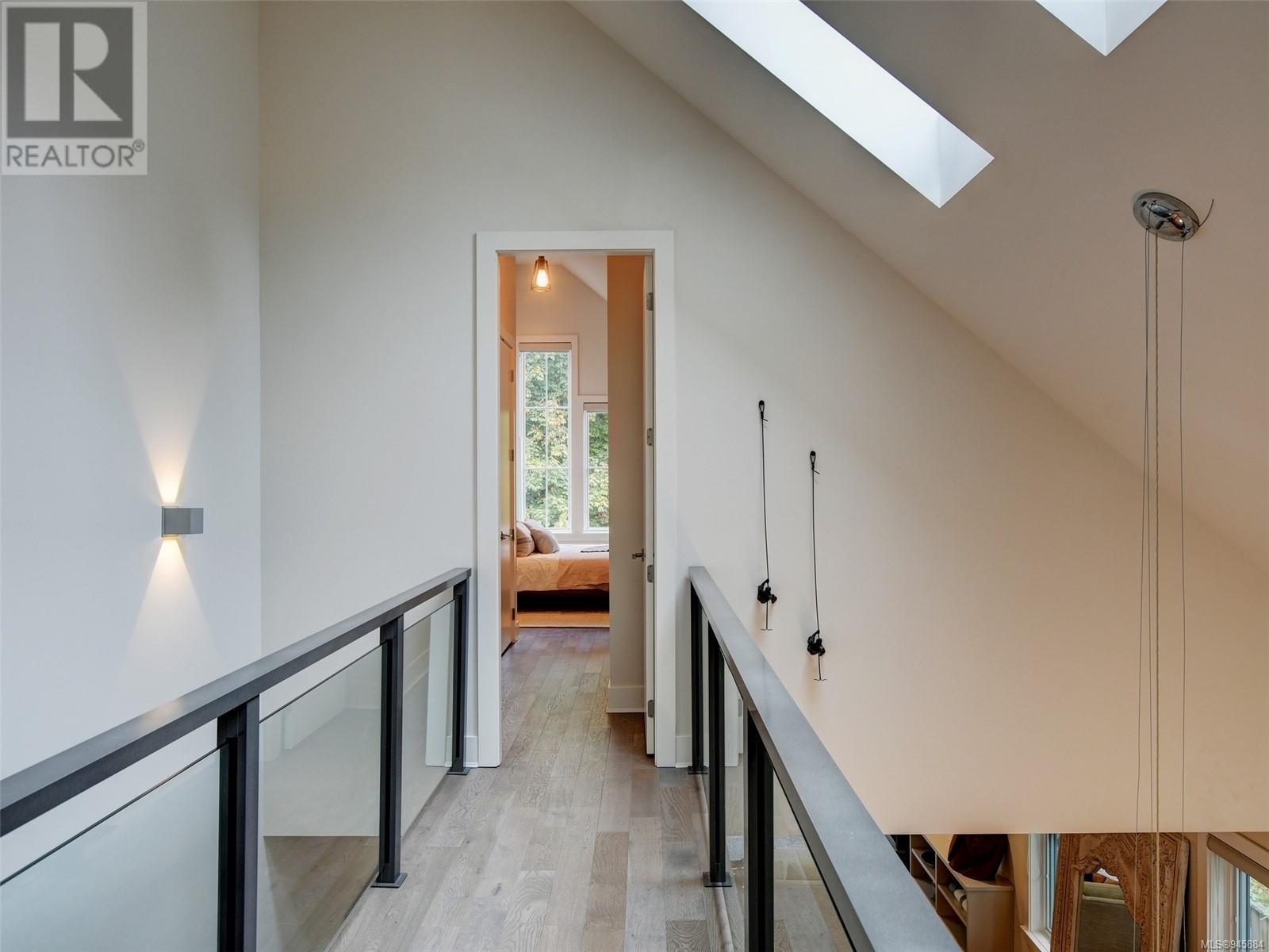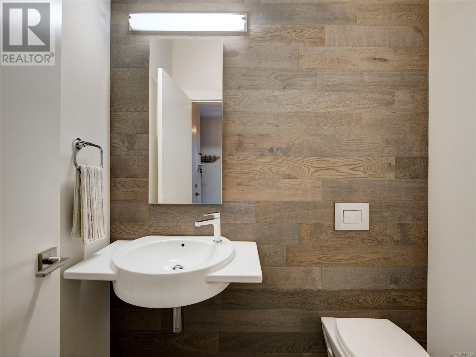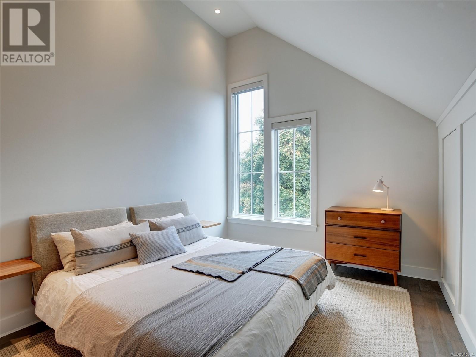 Prepare yourself for an experience when you step in the front entrance of this posh pad on one of James Bay's best streets. You'll feel the essence of this home immediately. Designed by Bruce Wilkin with form and function in mind, and just perhaps an edge with dramatic results. A 20' ceiling provides wall space for the most sizable art and the flow is perfect for seamless entertaining. Hardwood throughout with underfloor heat on all 3 levels. Detailed finishing with quality materials both inside and out lend a step-above flair, including the concrete deck and steps off the living room to a west facing garden. A catwalk connects 2 vaulted bedrooms up, each with ensuites, and a future 216' gym/closet/office is yours for the finishing. The lower level walkout offers flex with a fitness/rec room/nanny/home office with a 3rd bedroom, bath & laundry. Just minutes to the ocean, Beacon Hill Park, downtown, and the shopping on Menzies and Cook Streets. (id:22211)