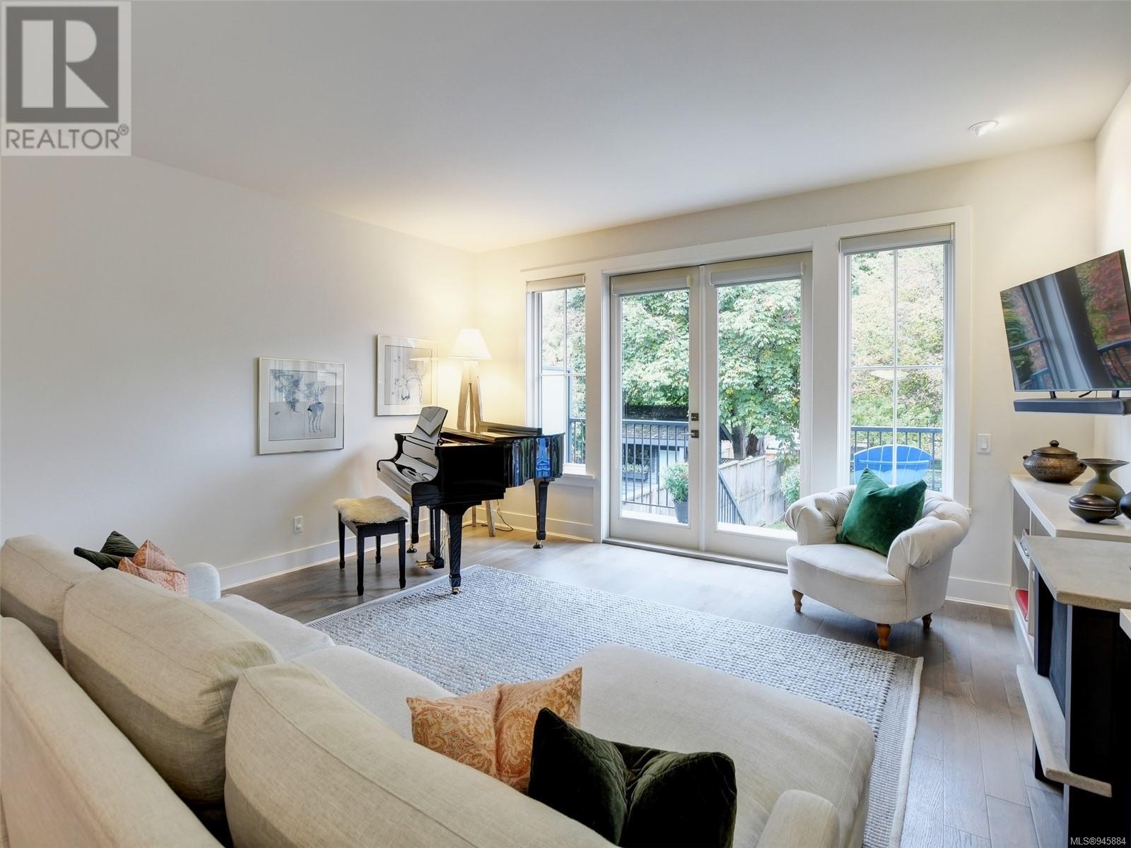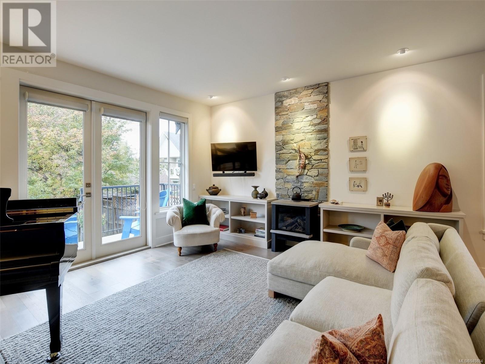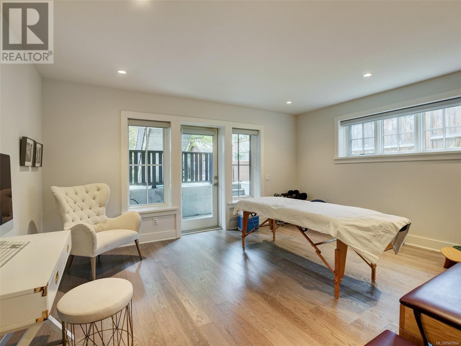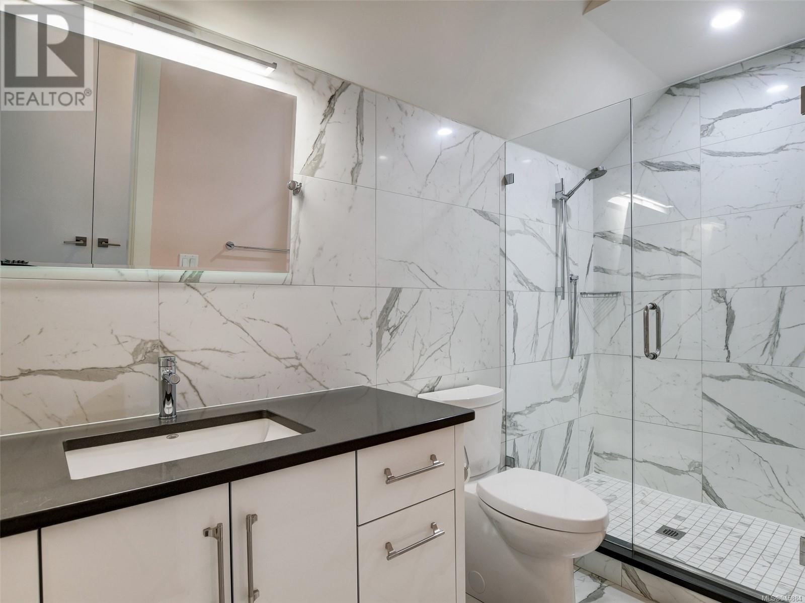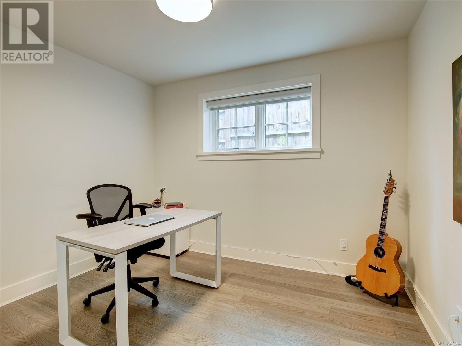 Prepare yourself for an experience when you step in the front entrance of this posh pad on one of James Bay's best streets. You'll feel the essence of this home immediately. Designed by Bruce Wilkin with form and function in mind, and just perhaps an edge with dramatic results. A 20' ceiling provides wall space for the most sizable art and the flow is perfect for seamless entertaining. Hardwood throughout with underfloor heat on all 3 levels. Detailed finishing with quality materials both inside and out lend a step-above flair, including the concrete deck and steps off the living room to a west facing garden. A catwalk connects 2 vaulted bedrooms up, each with ensuites, and a future 216' gym/closet/office is yours for the finishing. The lower level walkout offers flex with a fitness/rec room/nanny/home office with a 3rd bedroom, bath & laundry. Just minutes to the ocean, Beacon Hill Park, downtown, and the shopping on Menzies and Cook Streets. (id:22211)