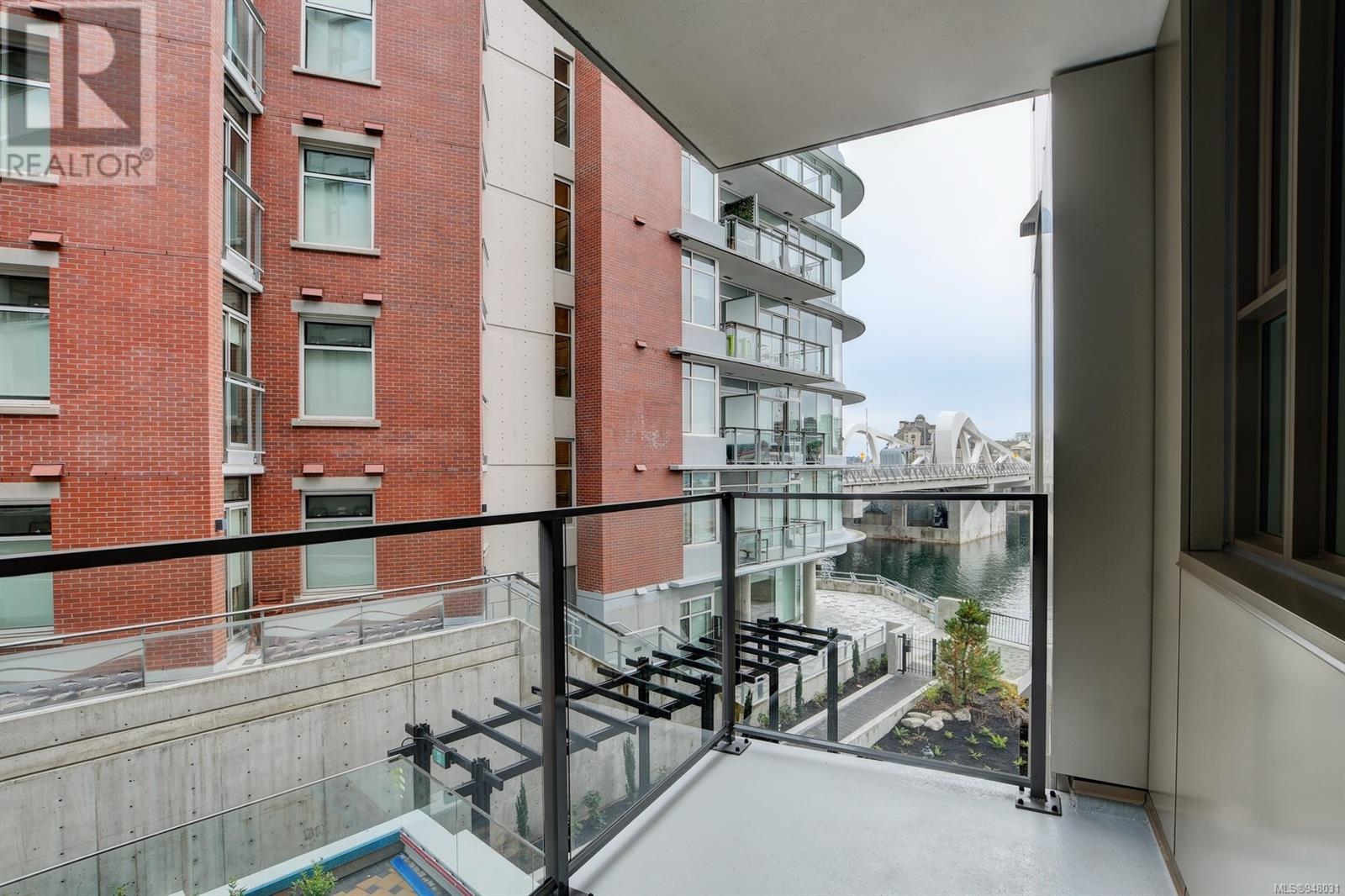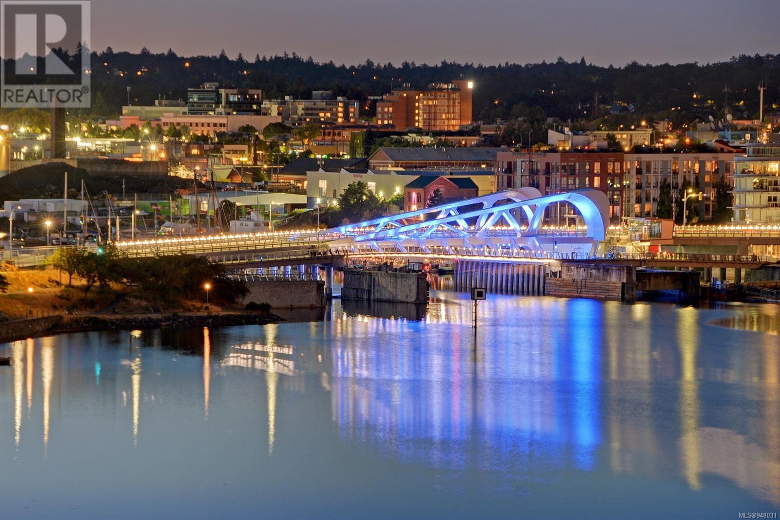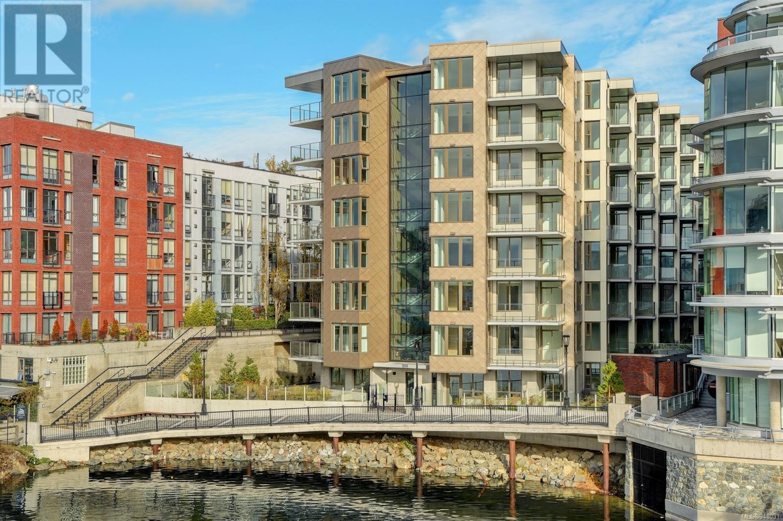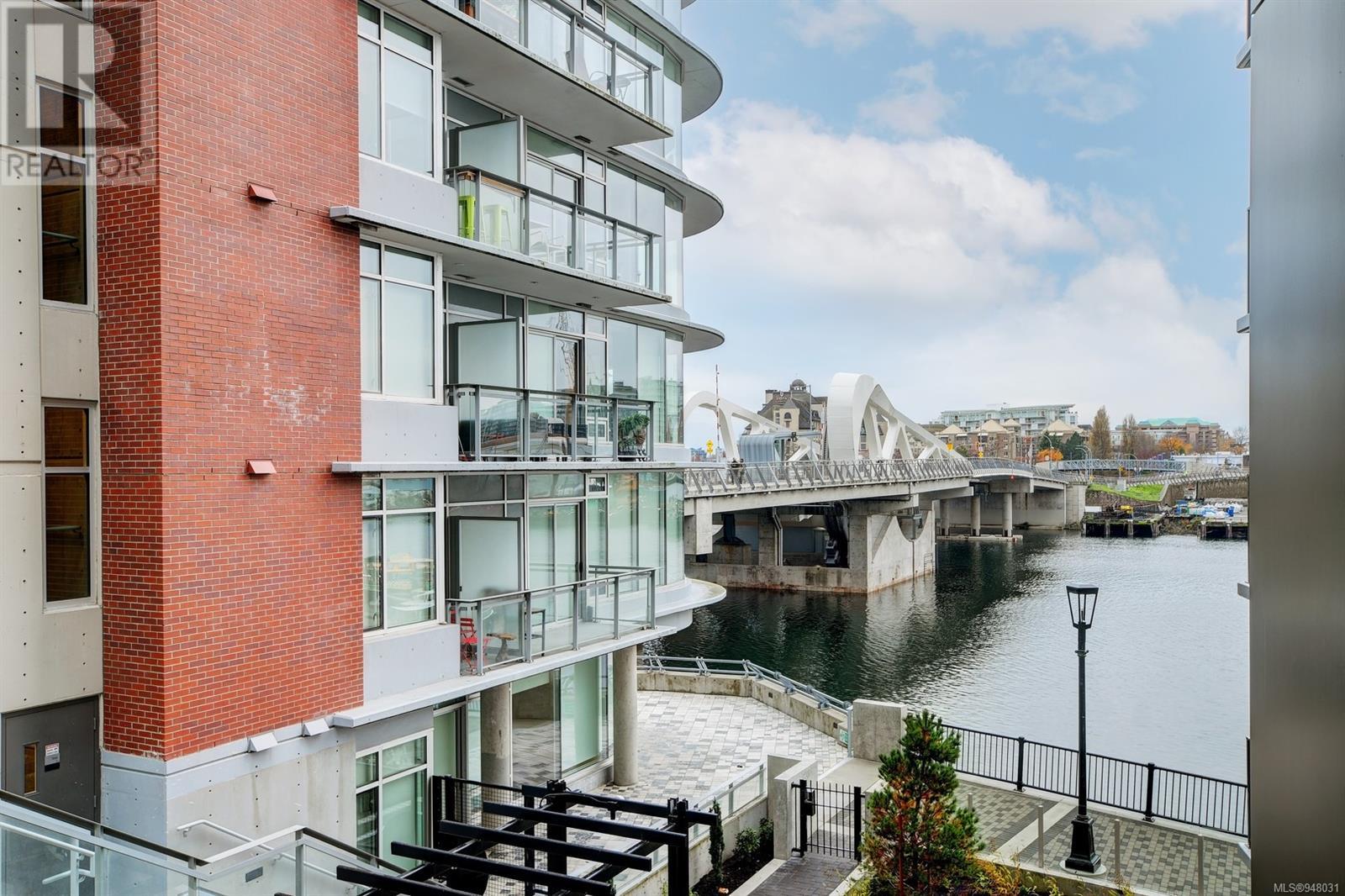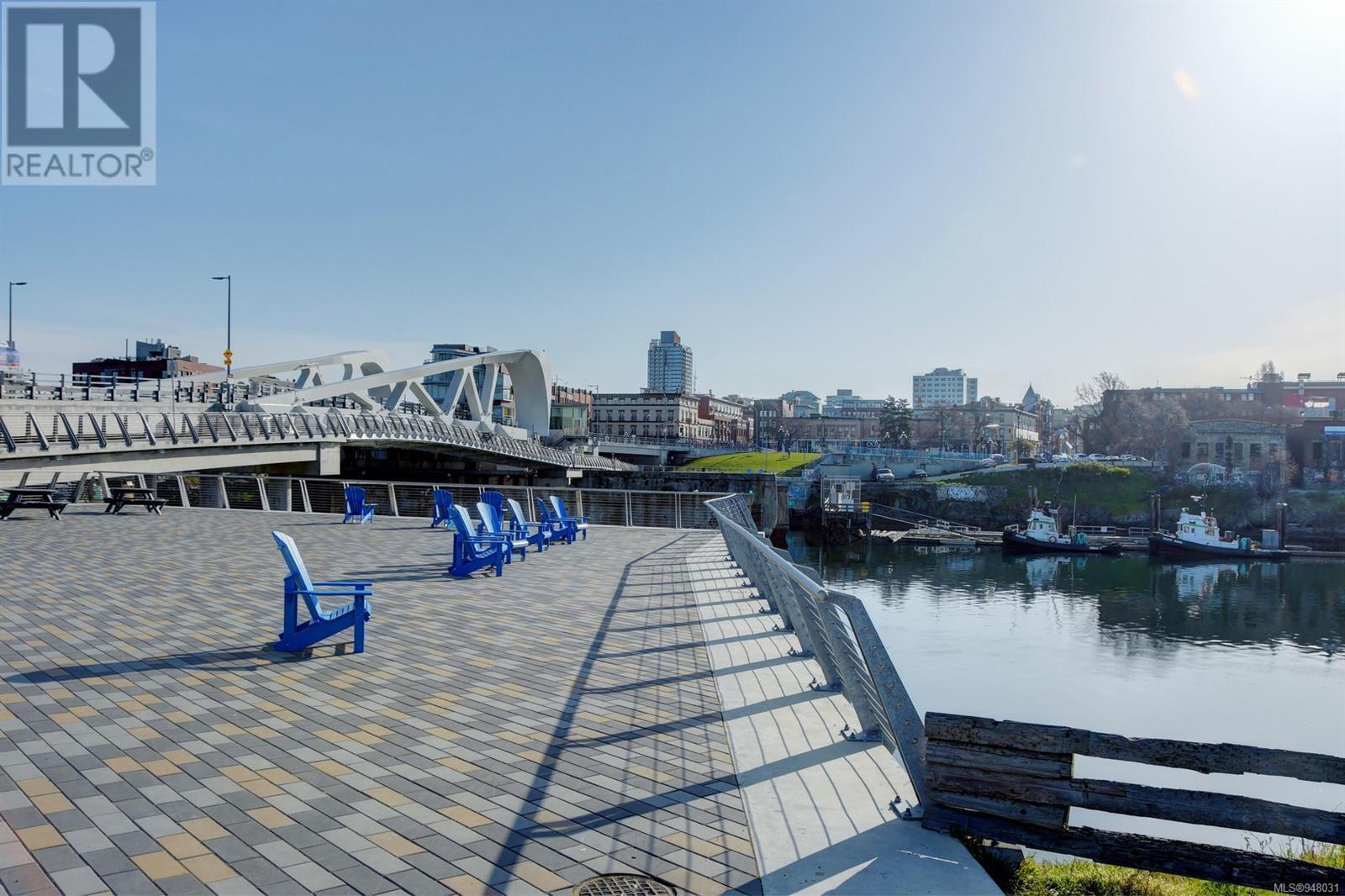 Luxury living at the ‘Pearl’ residences in the heart of Victoria Downtown on Victoria’s Old Town Harbour front. Situated on the waterfront this newly built steel and concrete building is designed by renowned architect D’Ambrosio and interiors by award winning Kimberly Williams, constructed by the Farmers construction ltd. This 1 bed, 1 bath South facing unit offers beautiful views of the Johnson bridge & water. Sit on the balcony at night and enjoy the beautiful lights of the city landmark. Contemporary Kitchen with high end cabinetry & appliances, soft close drawers, quartz counters. Bathroom with radiant floor heating. Unit includes an efficient heat pump system for heating and cooling. In prime location of Victoria downtown featuring a Walk Score of 99, this development offers secure underground parking, bike storage, dedicated storage lockers, a fitness facility and kitchen equipped amenity room for entertaining. Pets allowed. Don’t wait! Easy to show. (id:22211)