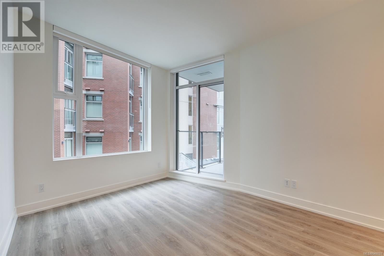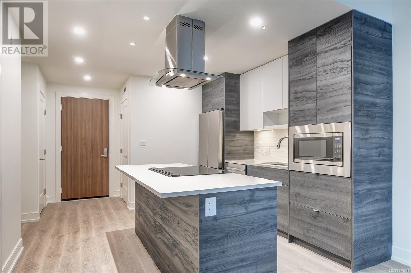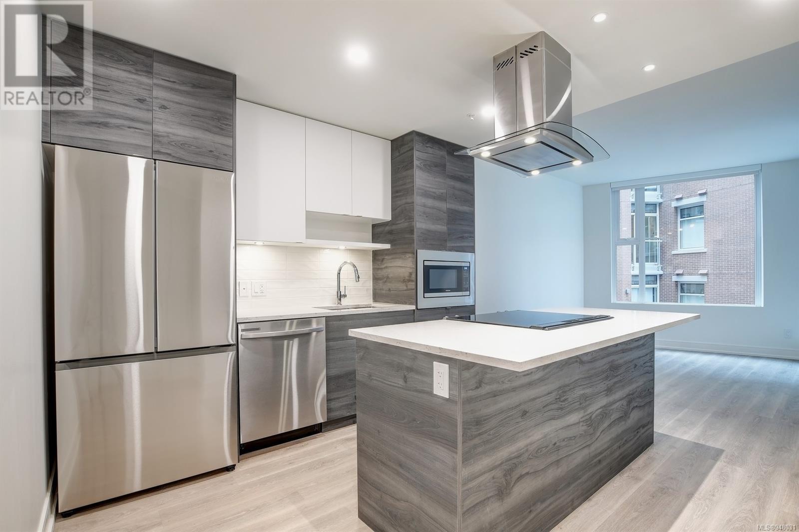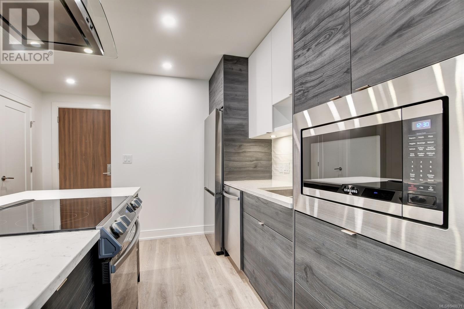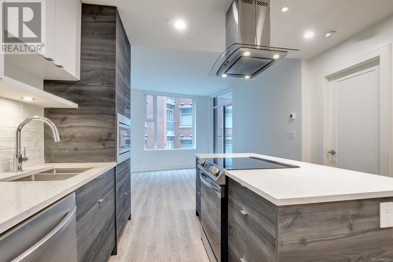 Luxury living at the ‘Pearl’ residences in the heart of Victoria Downtown on Victoria’s Old Town Harbour front. Situated on the waterfront this newly built steel and concrete building is designed by renowned architect D’Ambrosio and interiors by award winning Kimberly Williams, constructed by the Farmers construction ltd. This 1 bed, 1 bath South facing unit offers beautiful views of the Johnson bridge & water. Sit on the balcony at night and enjoy the beautiful lights of the city landmark. Contemporary Kitchen with high end cabinetry & appliances, soft close drawers, quartz counters. Bathroom with radiant floor heating. Unit includes an efficient heat pump system for heating and cooling. In prime location of Victoria downtown featuring a Walk Score of 99, this development offers secure underground parking, bike storage, dedicated storage lockers, a fitness facility and kitchen equipped amenity room for entertaining. Pets allowed. Don’t wait! Easy to show. (id:22211)