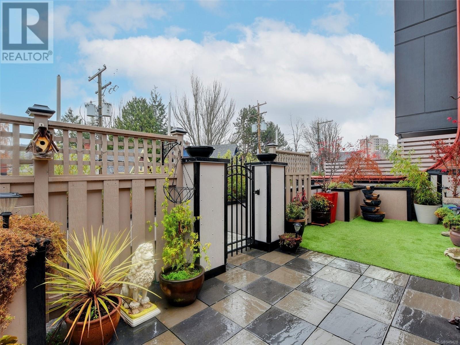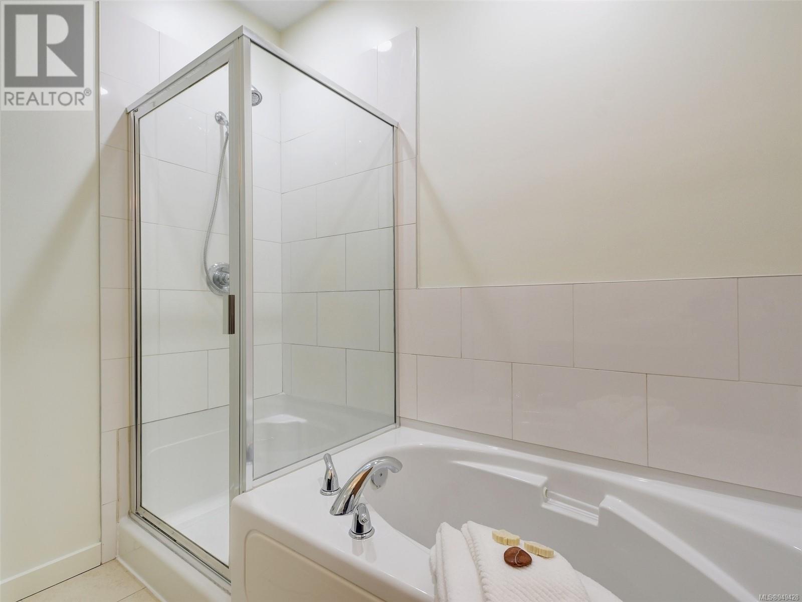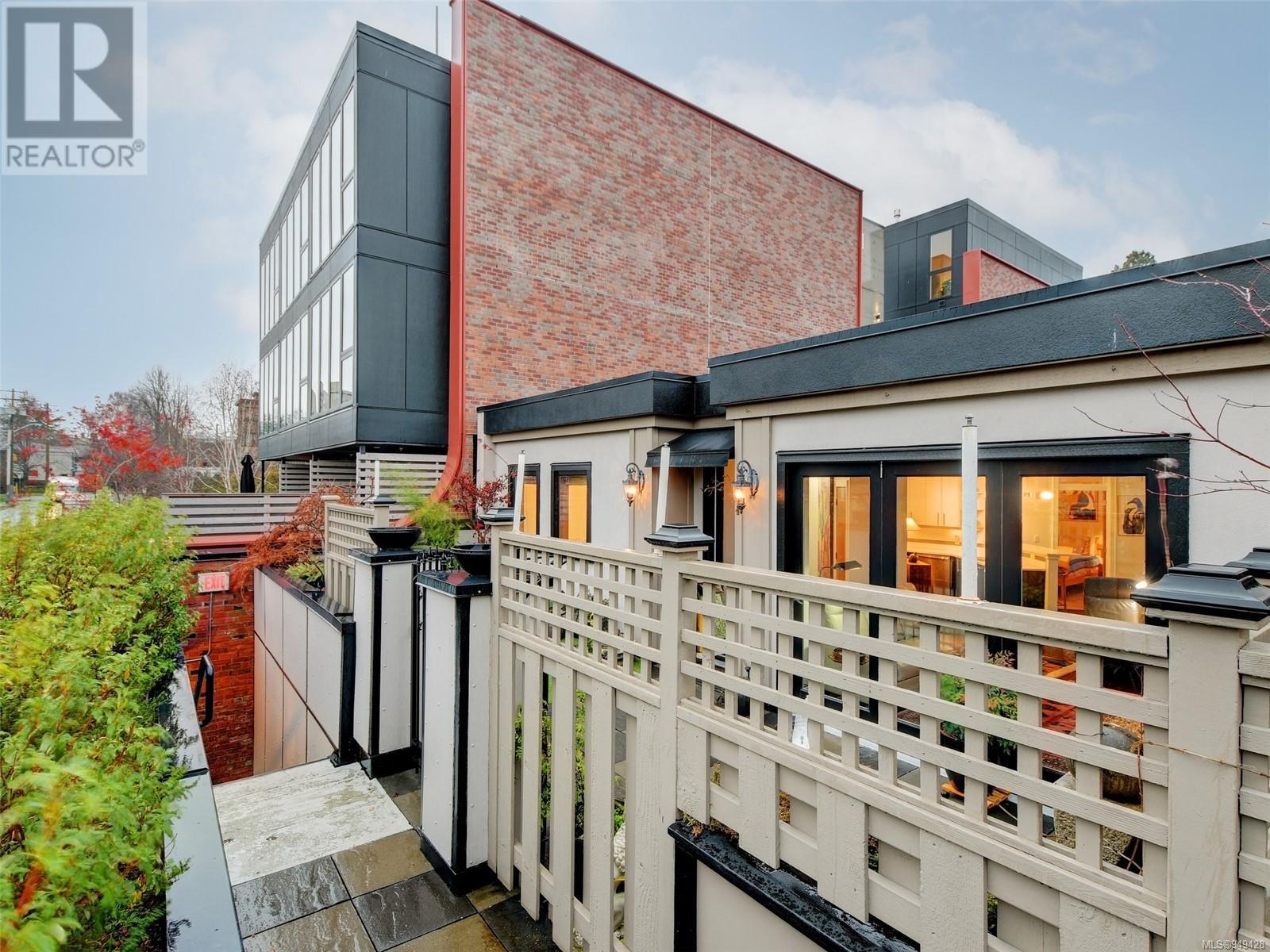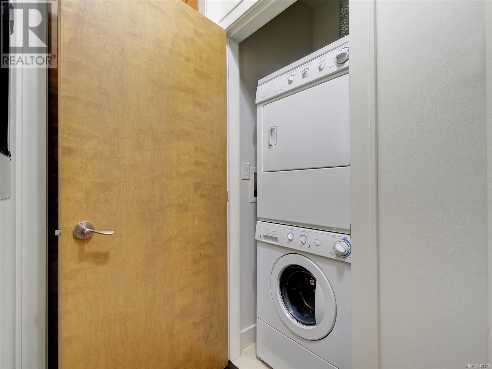 OPEN HOUSE: SATURDAY DEC. 9, 1-3pm and SUNDAY DEC 10th 1-3pm! Imagine living in a penthouse style condo in the heart of James Bay! This private, spacious top-floor corner suite, in the award winning 'Redstone', a restored historical bldg., offers a fabulous & smart floor plan that includes: open dining & living rooms with a vaulted glass skylight; angled Gourmet kitchen with eating bar, quartz countertops, newer SS appliances, double door fridge, pot filler above gas range stove & under mount double sink; separation between bedrooms, living room with gas fireplace & large bi-fold French doors leading to SE facing entertainment size private deck. The retractable French doors open for a seamless flow of indoor/outdoor living space; French doors off dining room leading to a bonus NW facing Bistro balcony with nice outlook; primary bedroom with walk-in closet & 4-piece ensuite w/ soaker tub, walk-in shower & skylight; heated floors & vessel sinks in both bathrooms, & wood floors throughout. This suite comes w/ large LCP parking spot & extra storage. The three flat screen TV''S, the red bistro table set and all flower pots and water features on both deck and balcony are included in the sale. Located on a quiet street by James Bay Village core, minutes to the ocean, Beacon Hill Park & Inner Harbour. (id:22211)