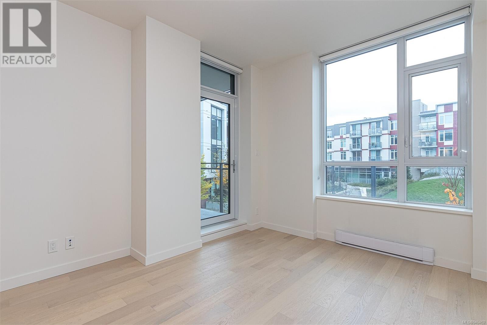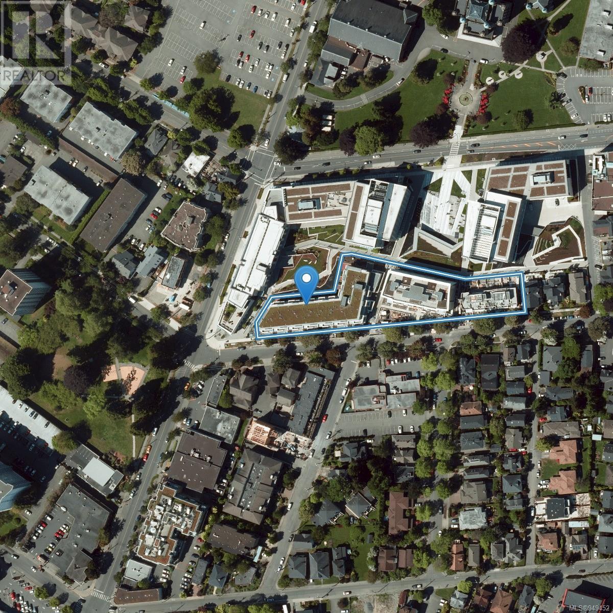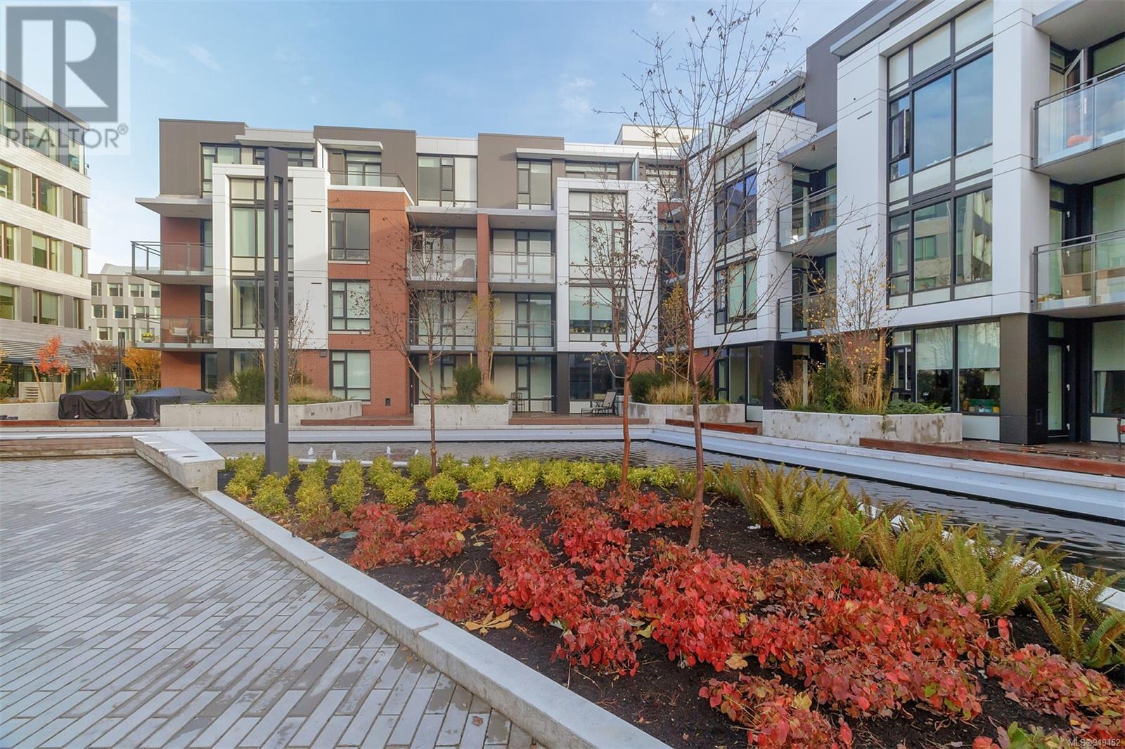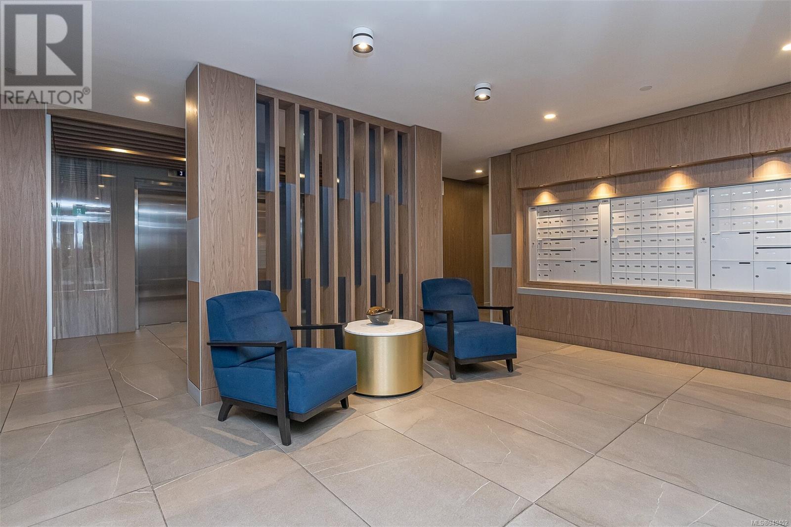 On one of Victoria's prettiest treeline streets and in a quiet location this 2021 condo is in immaculate condition. The one bedroom home features engineered wide-plank oak flooring throughout. Contemporary kitchen includes flatpanel cabinetry, quartz slab countertops & backsplash, marble-patterned quartz waterfall peninsula & integrated Bosch appliances. Spa-like bathroom with luxurious soaker tub, large-format porcelain tiles & in-floor heating. In suite Blomberg laundry. Relax on the spacious balcony overlooking an expansive landscaped courtyard with tranquil water feature. Capital Park is a steel and concrete master planned community that blends seamlessly with the charming James Bay neighbourhood. Security controlled covered entrance, well appointed lobby, resident caretaker, underground parking, storage, fitness room & serenity lounge. Steps from the inner harbour, parliament buildings, shopping and all amenities. (id:22211)