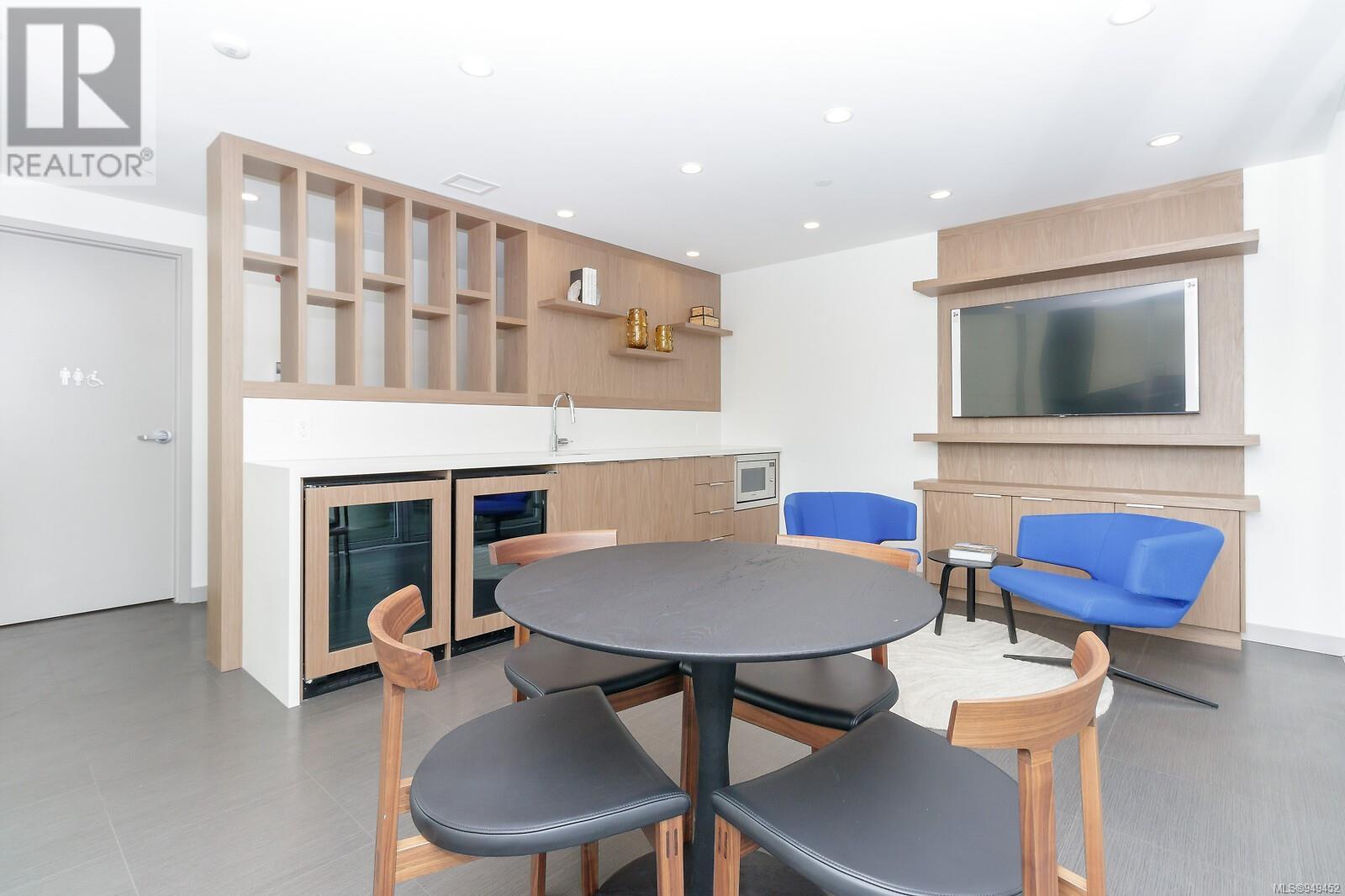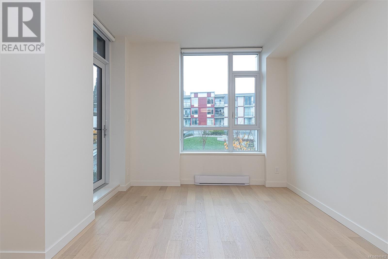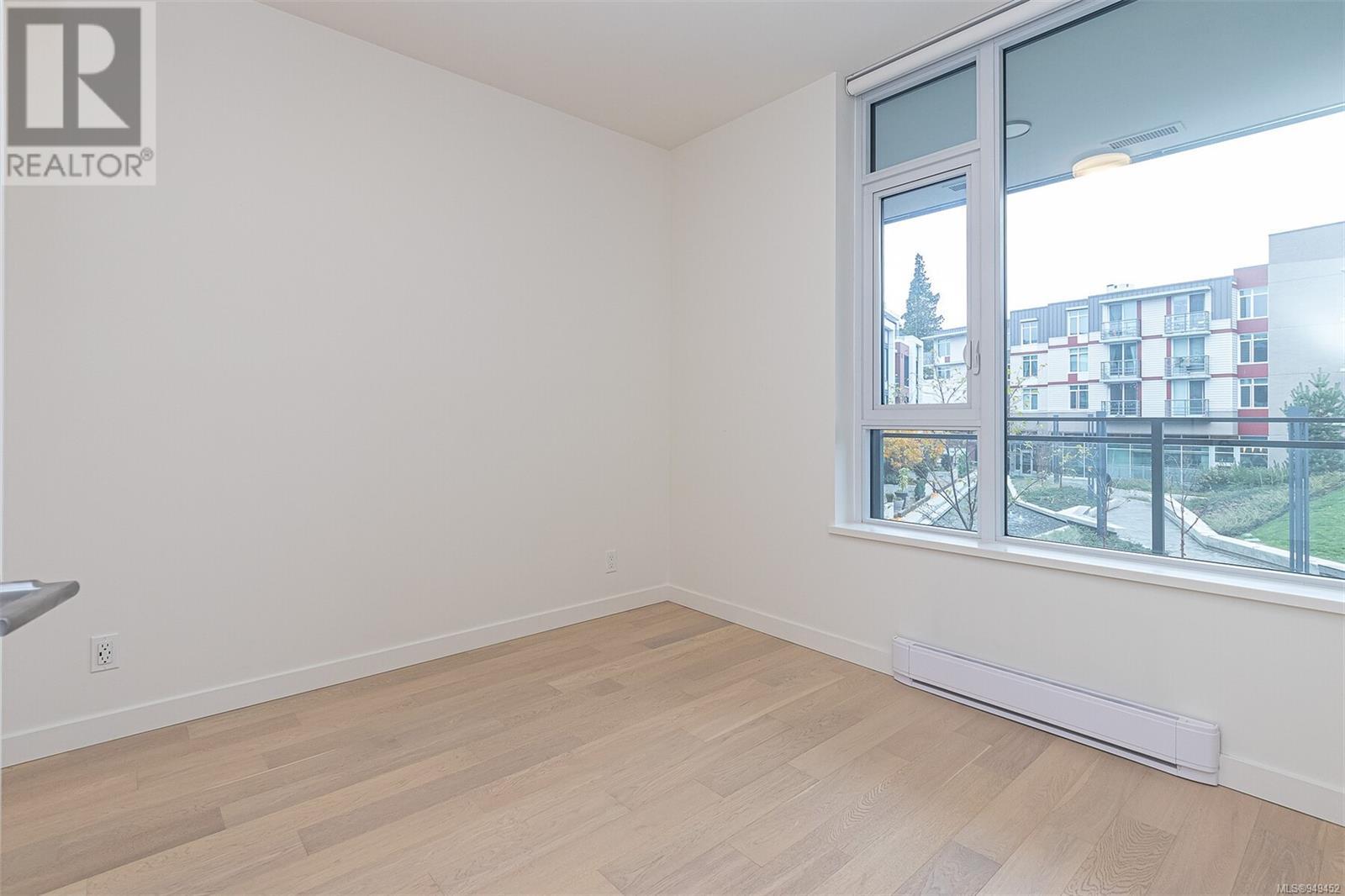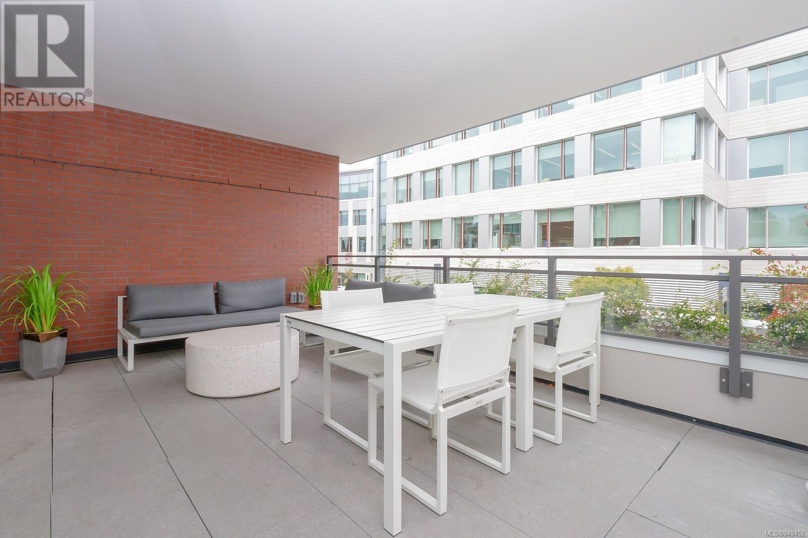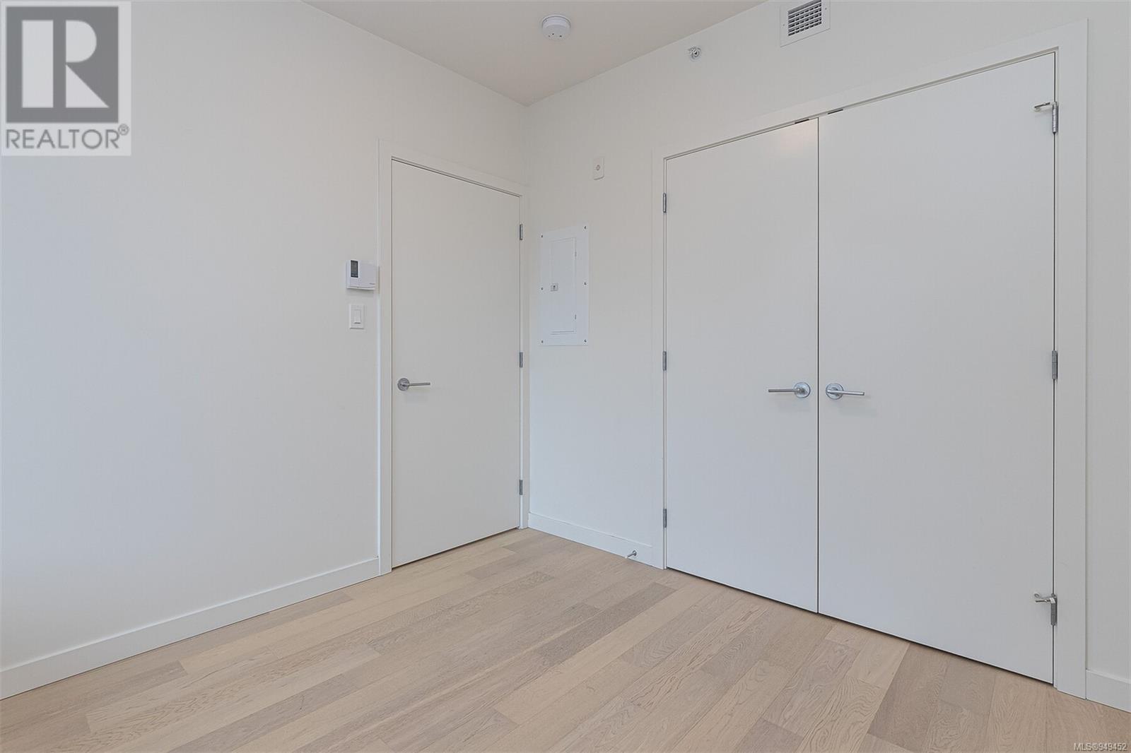 On one of Victoria's prettiest treeline streets and in a quiet location this 2021 condo is in immaculate condition. The one bedroom home features engineered wide-plank oak flooring throughout. Contemporary kitchen includes flatpanel cabinetry, quartz slab countertops & backsplash, marble-patterned quartz waterfall peninsula & integrated Bosch appliances. Spa-like bathroom with luxurious soaker tub, large-format porcelain tiles & in-floor heating. In suite Blomberg laundry. Relax on the spacious balcony overlooking an expansive landscaped courtyard with tranquil water feature. Capital Park is a steel and concrete master planned community that blends seamlessly with the charming James Bay neighbourhood. Security controlled covered entrance, well appointed lobby, resident caretaker, underground parking, storage, fitness room & serenity lounge. Steps from the inner harbour, parliament buildings, shopping and all amenities. (id:22211)
