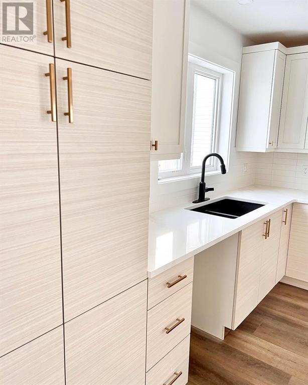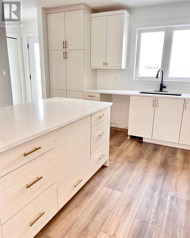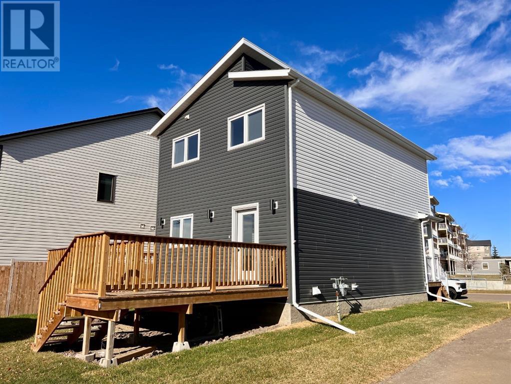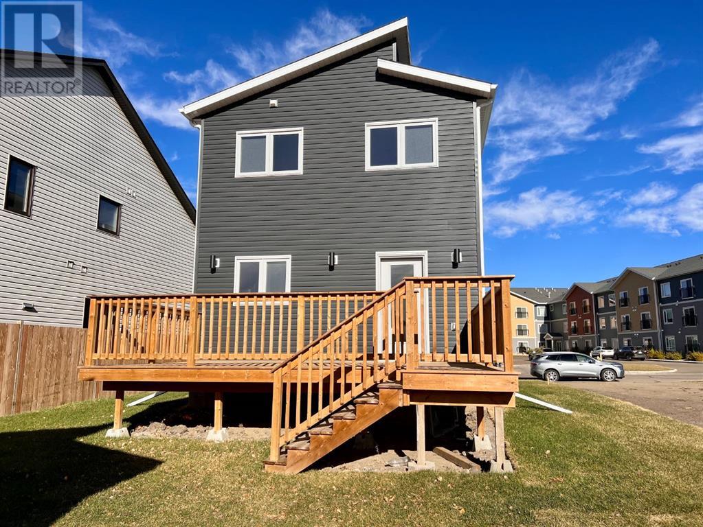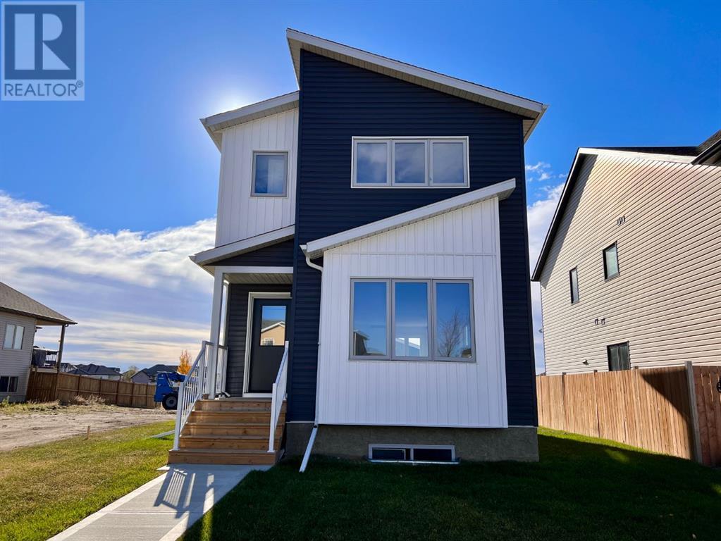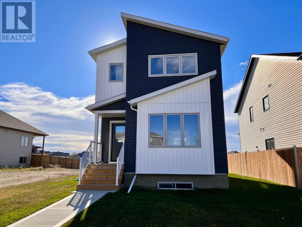 Welcome to this NEW beautiful 2 Storey built by one of Wainwright’s premier builders! The moment you set your eyes on this attractive modern design home, from the location that backs on to Dr. Beverly Brilz Park, you will know this is the home you’ve been looking for. On the main floor this home features a 2-piece powder room off the back entrance, open concept kitchen, dining and living room. No detail goes unnoticed in this exquisite home; from the modern and sleek kitchen cabinets and island, quartz countertops, and clean-lined backsplash, LED pot lights and vinyl plank flooring, just to name a few. On the second floor, you have 2 spacious bedrooms, laundry area, 4-piece bathroom & your primary bedroom. In the primary bedroom you have a nice sized walk-in closest and a 3-piece ensuite. Down to the basement, you have an empty canvas. The limits are endless! Roughed in for a 3-piece bathroom, family room and large storage area. Stepping out onto the deck, you have a south view to the park and walking trails - a perfect spot to enjoy your morning coffee or relax after work. Recent added features include an 18x22 detached garage designed to compliment the house as well as a gravel parking pad at back of property, poured concrete sidewalk to front entrance, and sod in front and back yards. Check out the virtual tour and then get ready to call & book a viewing today! (id:22211)