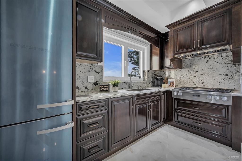 Nestled in the quiet district of West Vancouver with beautiful Grouse Mountain views both in the side and back, and spectacular downtown and ocean views in the front. Elegantly designed, European-style home, built by a top experienced construction company. Expansive kitchen boasts a full set of Miele kitchen appliances. There is a wine cellar and movie room in the basement, a large multi-functional gym, a full set of sauna rooms and shower rooms, and a multi-functional hall with a bar counter and back cabinet. There are 6 luxurious suites and 3 fireplaces in the whole house. The front yard has a tiered garden with a sea of flowers in summer. The private backyard that provide an excellent venue for entertaining guests. Basement provides rental income. (id:22211)