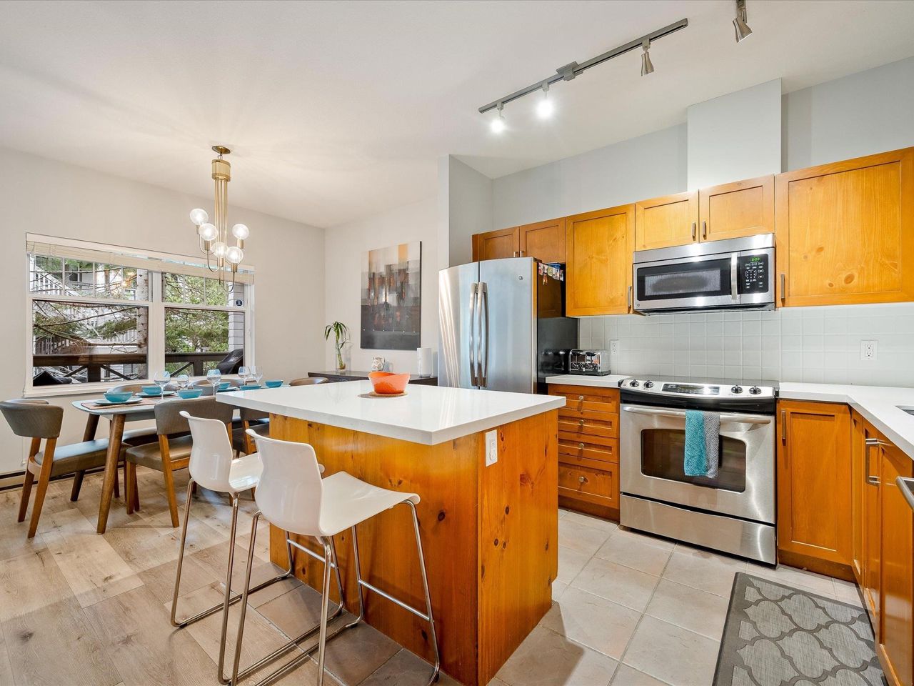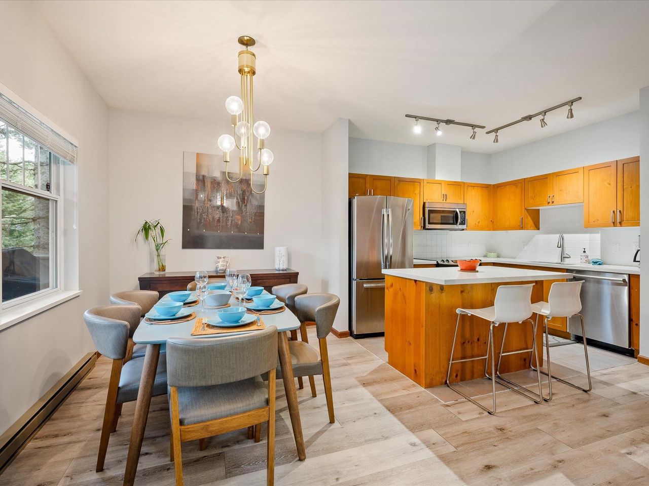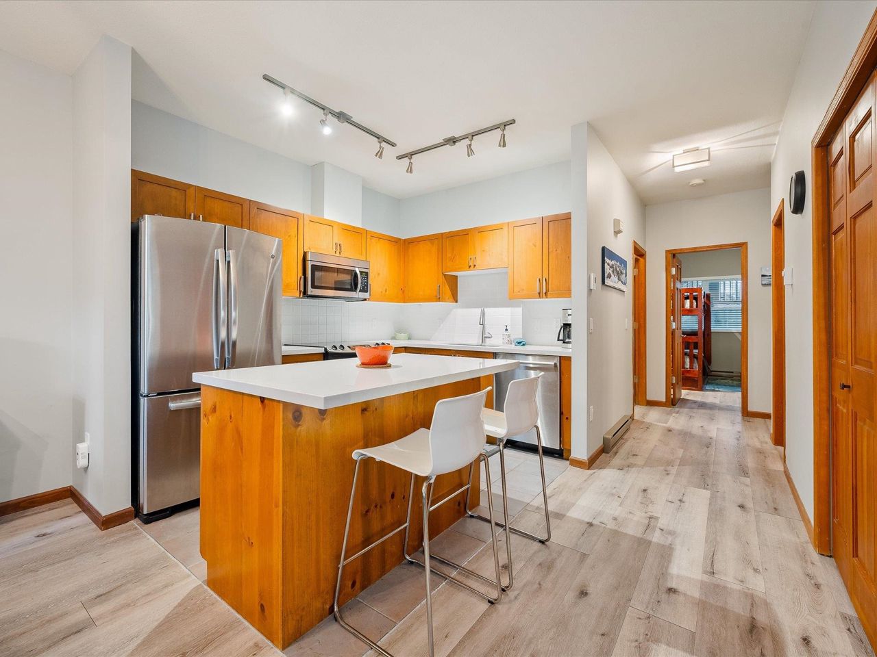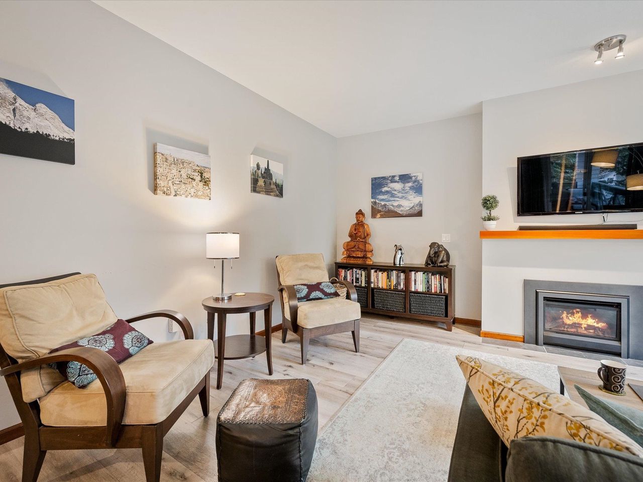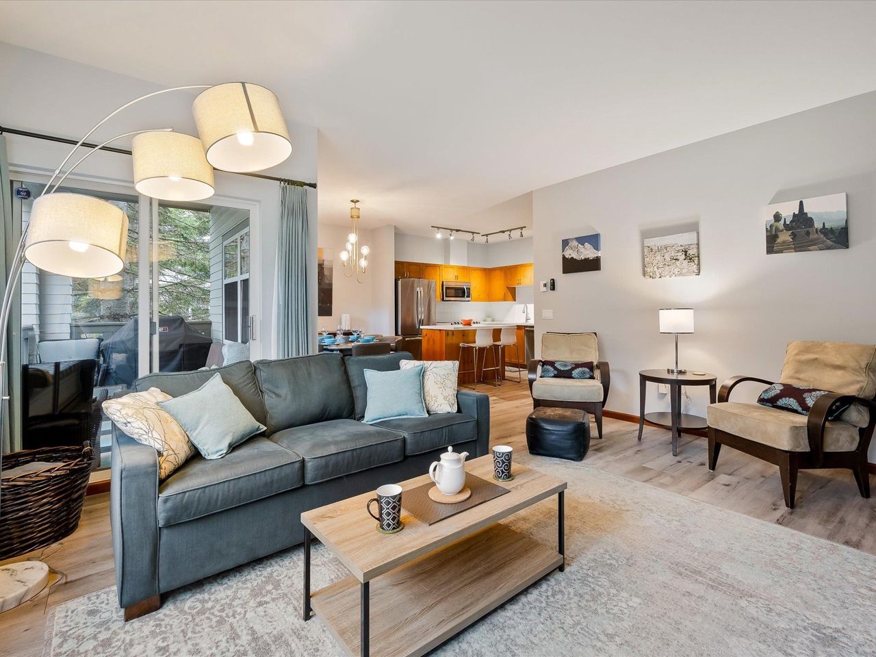 This spacious retreat perfectly blends comfort and convenience. The bright open-concept living room offers a cozy gas fireplace for chilly mountain evenings. The updated interior boasts a desirable floor plan on one level for easy access and flow throughout the home. Step outside onto your private covered balcony and take in the serene surroundings. Perfect for entertaining, the spacious layout lends itself well to gatherings with friends and family. With a large, secure storage area, you'll have plenty of room for all your gear. And with nightly rentals permitted, this property offers excellent revenue potential. Whistler Golf Course, the Valley Trail, Lakeside Park, and Whistler Village are within walking distance for easy access to shopping, dining, and outdoor recreation.