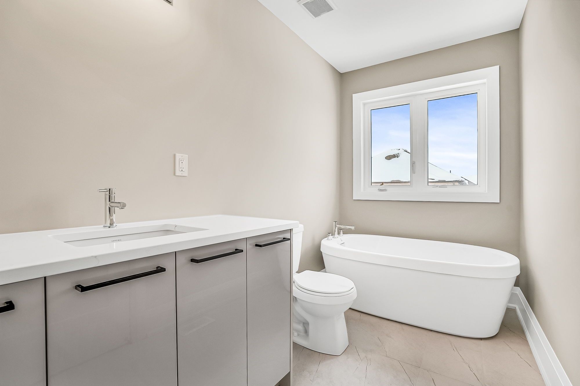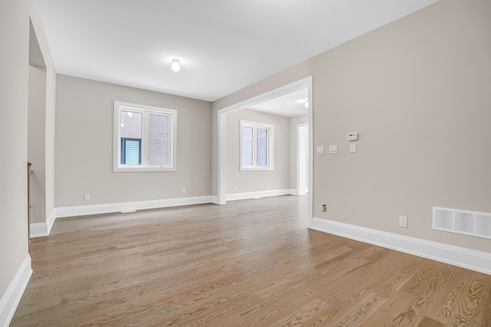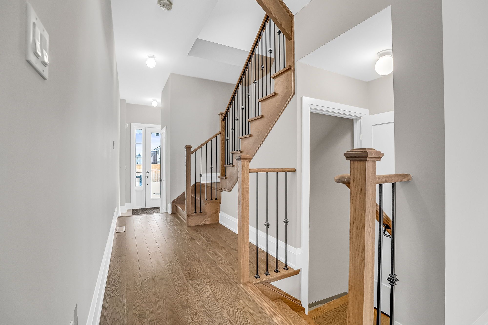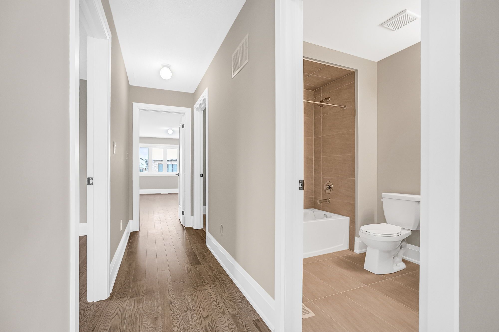 从未入住过的开发商库存房屋出售。 这座新建成的传统两层楼端单元永久产权联排别墅(无管理费或公寓费)位于由Vogue home开发的、受欢迎的Queen's Common社区内,拥有110英尺深的私人地块。 居住在端单元带来无需穿过房屋即可到达后院的便利。 特点包括现代外观设计,配有当代石材和砖砌立面以及超大前窗,主楼层9英尺光滑天花板,升级装修,如7 1/2英寸踢脚线、升级室内门和门五金件,以及现代硬木和瓷砖地板覆盖整个区域。 主楼层设有一个宽敞的门厅,客人可以在那里挂外套,也可以使用化妆间。 厨房配有步入式储藏室、升级橱柜、瓷砖后挡板、带大型底装水槽的石质台面和一个延伸的早餐吧。 早餐区非常适合与家人一起坐下来用餐。 宽敞的组合客厅和餐厅已准备好满足接待客人或只想在沙发上放松时对更多座位的需求。 令人印象深刻的17英尺长的家庭活动室配有舒适的壁炉和通往后院的推拉门。 带铁质栏杆的橡木楼梯带您到二楼,在那里您可以找到4间卧室+洗衣房。 主卧室设有步入式衣柜和一个4件套套间浴室,配有玻璃淋浴、带石质台面的升级梳妆台和独立浴缸。 其他三间卧室配有宽敞的双人衣柜,主浴室是一个4件套,配有带石质台面的升级梳妆台。 未完工的地下室配备了3件套浴室的预留管道、无罐热水箱(租赁)和暖通空调系统。 这就是您想住的地方。 两层楼的联排别墅比三层楼的联排别墅少台阶,且平面布置更实用,而110英尺的深地块比89英尺的地块更能创造与后面房屋之间的距离,从而获得更多的隐私。