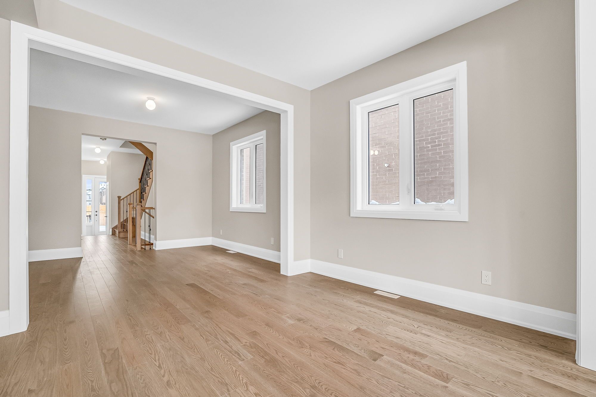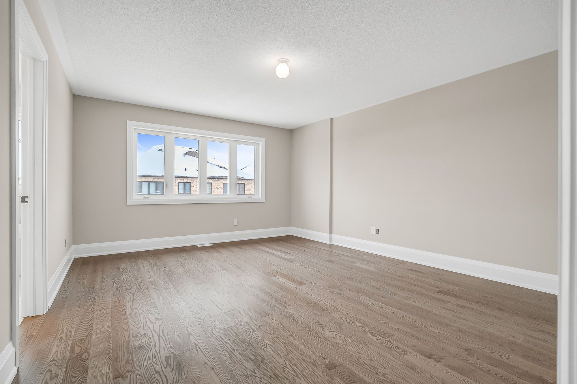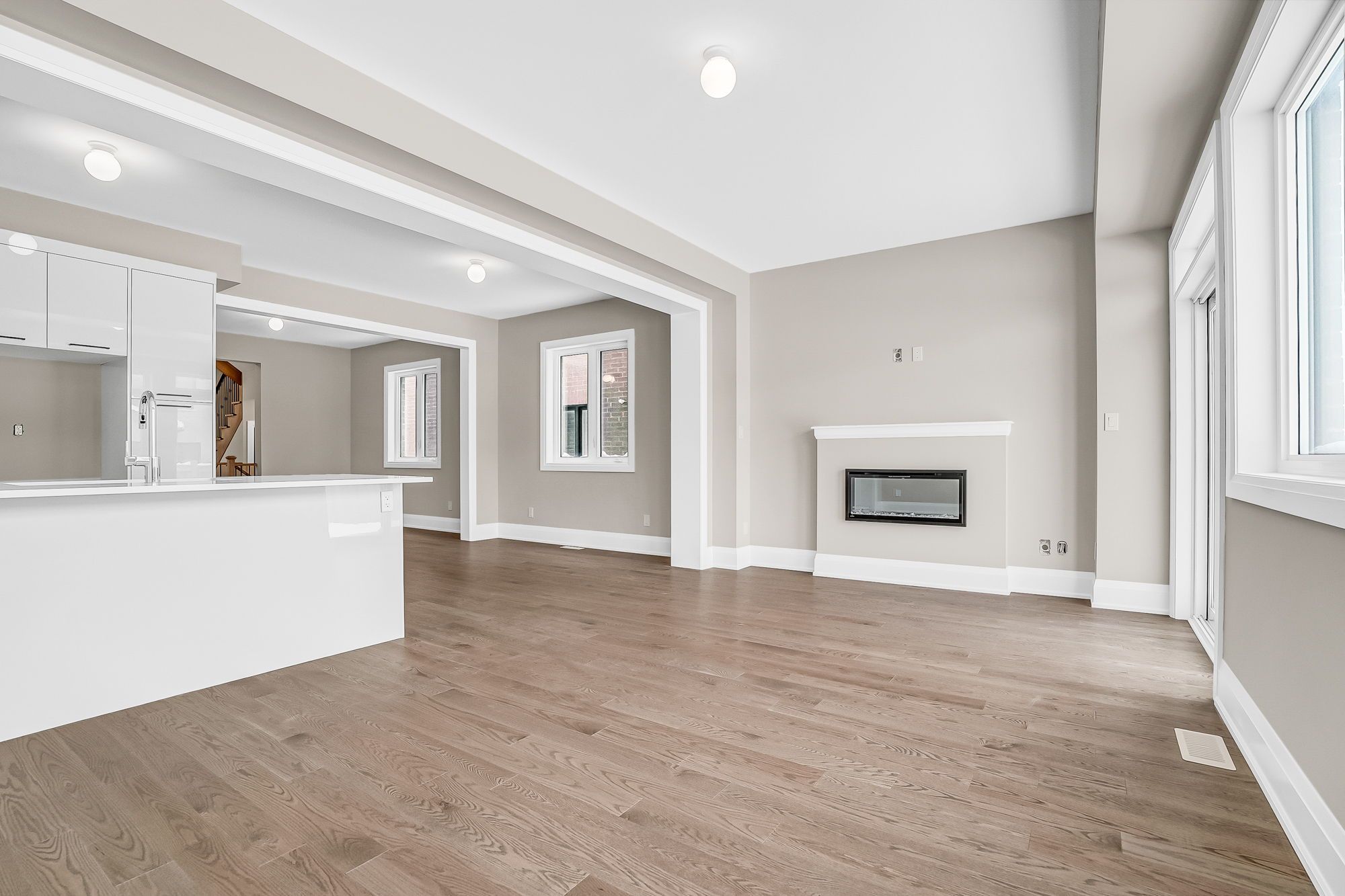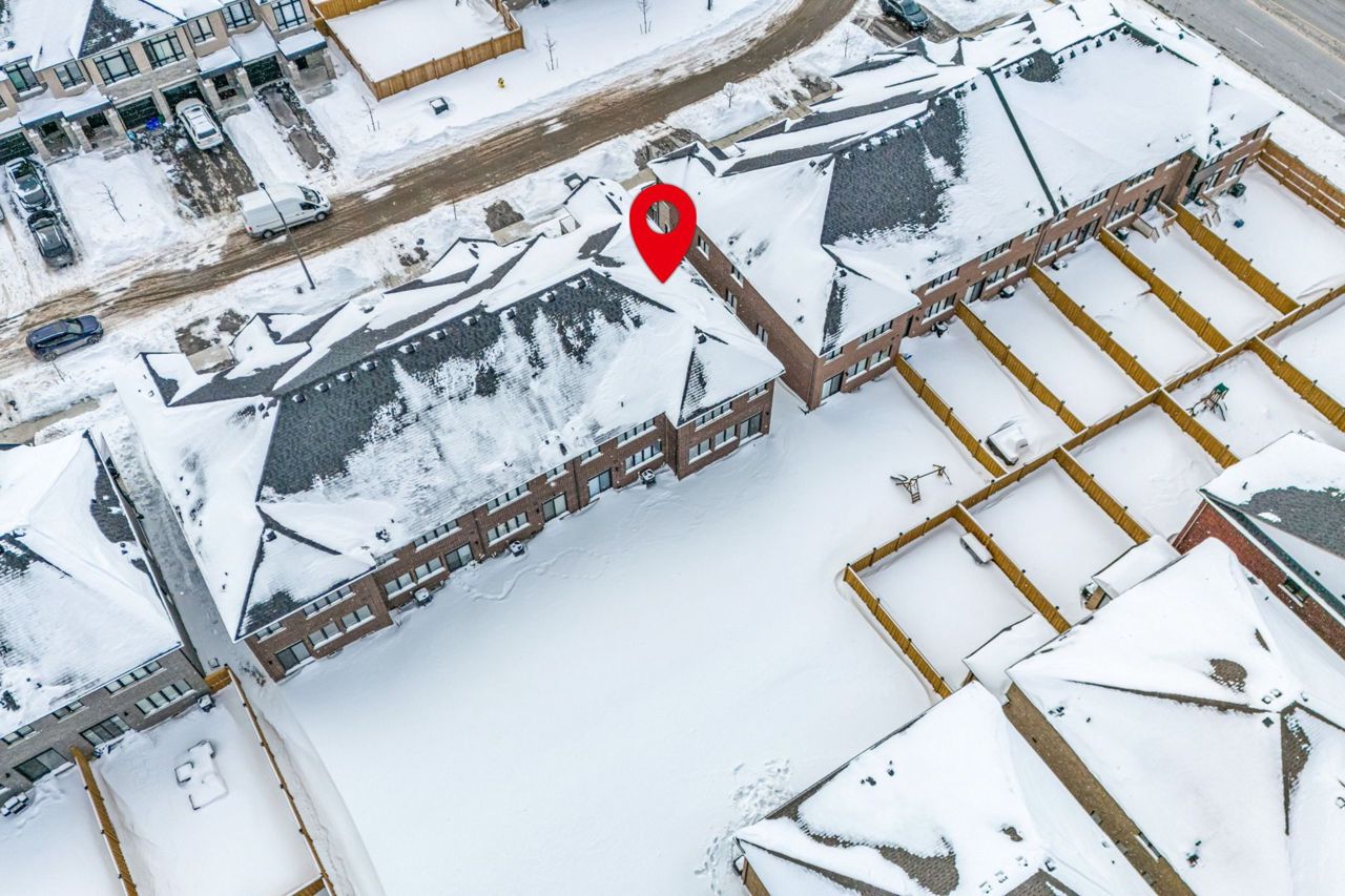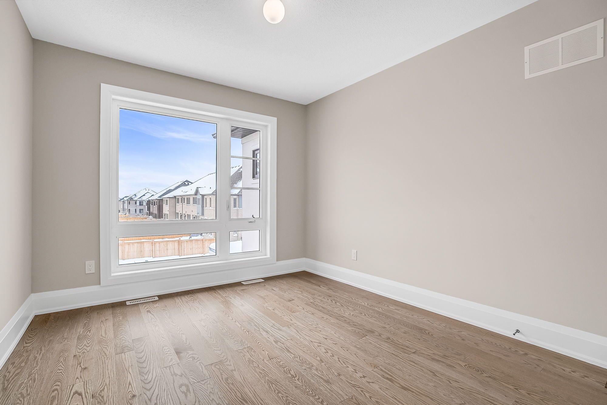 Never lived in Builder's inventory home for sale. This newly completed traditional 2 Storey end unit freehold townhouse (No maintenance fees or condo fees) is on a full depth 110ft deep private lot in the popular Queen's Common community by Vogue Homes. Living in an end unit brings forth the convenience of not having to go through the home to get to the backyard. Features include a modern exterior design with contemporary stone & brick elevation and oversized front windows, 9ft smooth ceilings on main floor, upgraded finishes such as 7 1/2" baseboards, upgraded interior doors and door hardware, and modern hardwood and tile flooring throughout all finished areas. The main floor has a spacious foyer where guests can hang their coat and also use the powder room. The kitchen comes equipped with a pantry, upgraded cabinets, tile backsplash, stone countertop with large undermount sink and an extended breakfast bar. The breakfast area is perfect for the sit down meals with the family. The large combined living and dining rooms are ready for more seating requirements when entertaining guests or for when you just want to relax on the sofa. The impressive 17ft long family room has a cozy fireplace and patio doors that lead to the back yard. The oak staircase with iron pickets take you to the second floor where you will find 4 bedrooms + the laundry room. The primary bedroom has a walk-in closet and a 4pc ensuite with glass shower, upgraded vanity with stone countertop and free standing tub. The other three bedrooms come with spacious double closets, and the main bathroom is a 4pc with an upgraded vanity finished with a stone countertop. The unfinished basement is equipped with a rough-in for a 3pc bathroom, tankless hot water tank (rental), and HVAC system. This is where you want to live.Two storey towns have less steps & a more practical floor plan layout over 3 storey towns and a deeper 110ft lot creates more distance from the homes behind for more privacy than an 89ft lot.