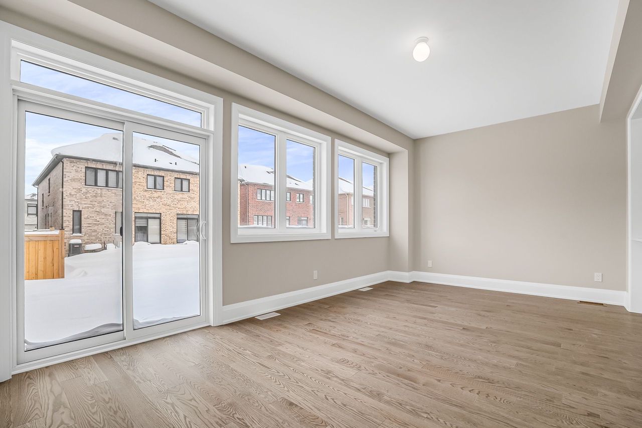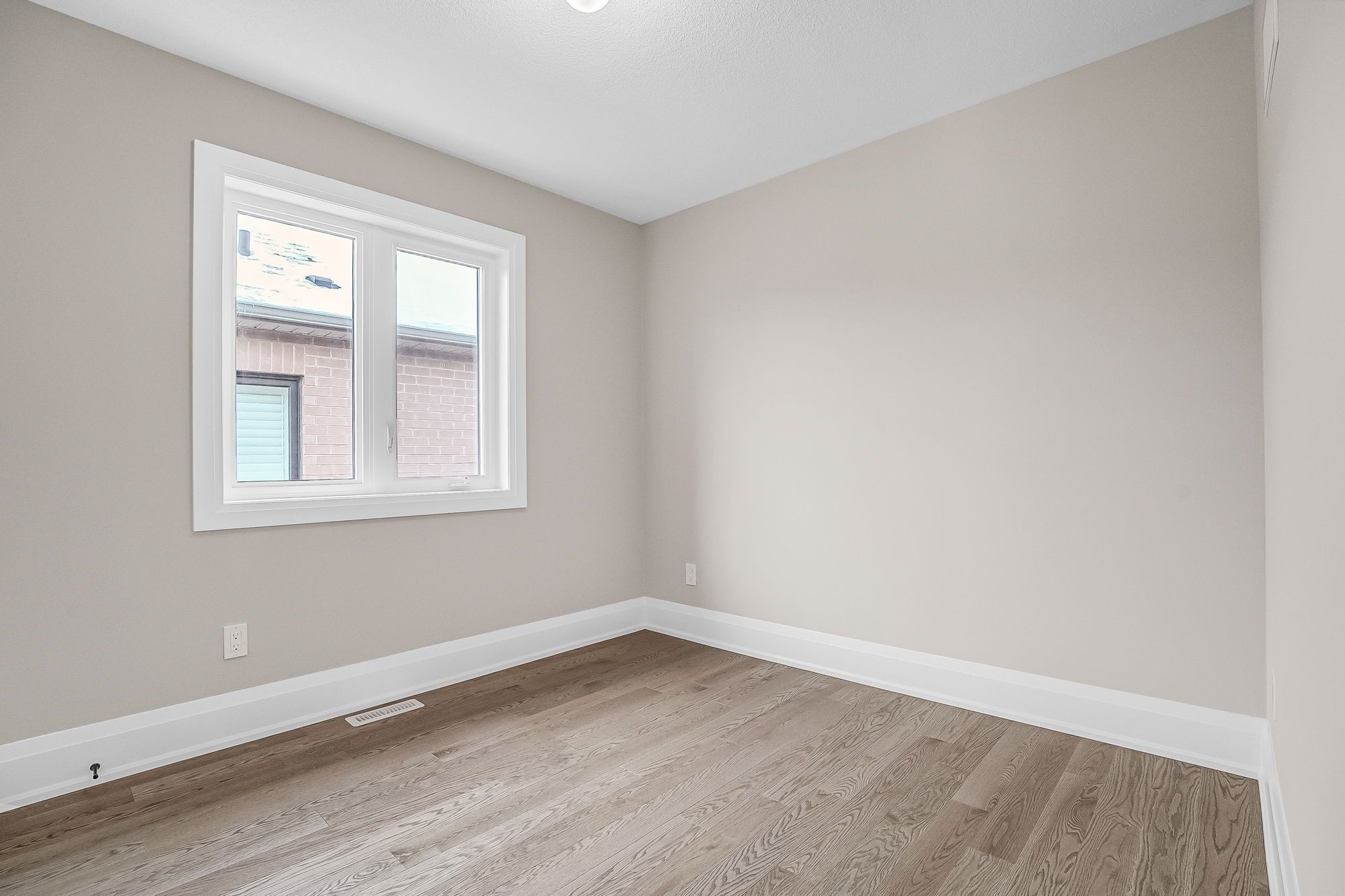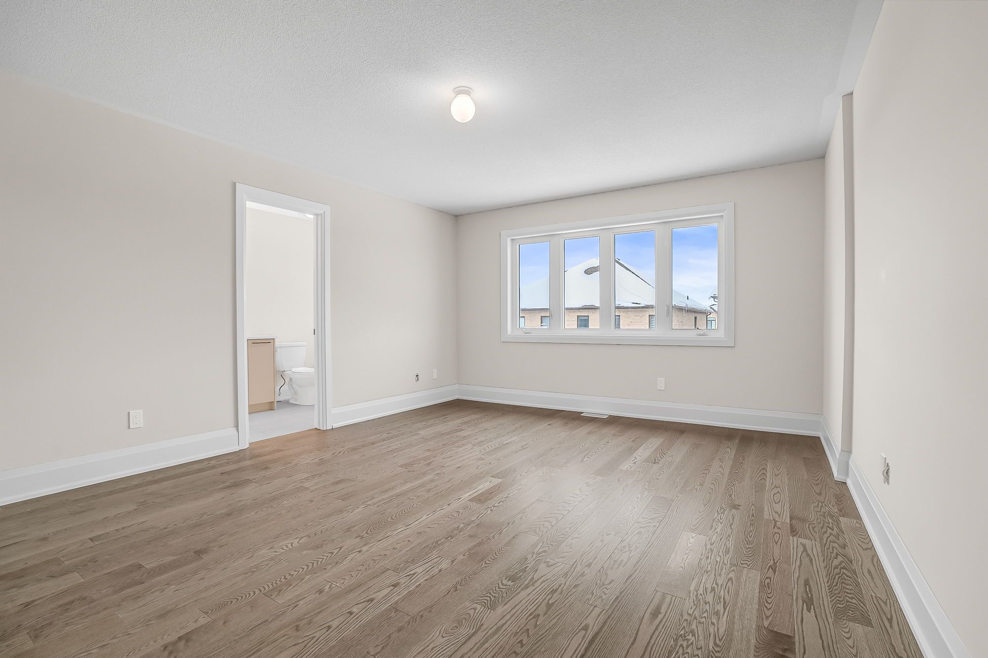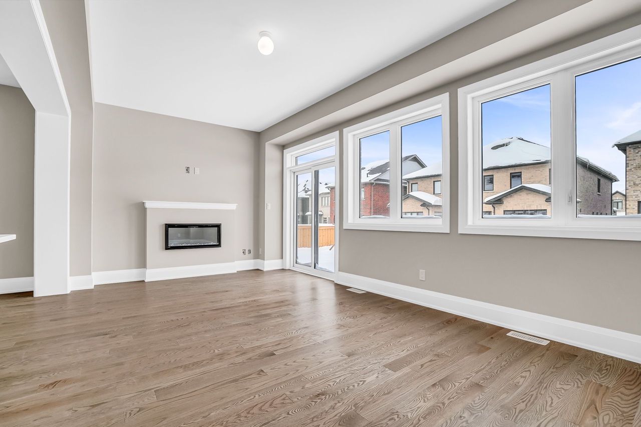 Never lived in Builder's inventory home for sale. This newly completed traditional 2 Storey end unit freehold townhouse (No maintenance fees or condo fees) is on a full depth 110ft deep private lot in the popular Queen's Common community by Vogue Homes. Living in an end unit brings forth the convenience of not having to go through the home to get to the backyard. Features include a modern exterior design with contemporary stone & brick elevation and oversized front windows, 9ft smooth ceilings on main floor, upgraded finishes such as 7 1/2" baseboards, upgraded interior doors and door hardware, and modern hardwood and tile flooring throughout all finished areas. The main floor has a spacious foyer where guests can hang their coat and also use the powder room. The kitchen comes equipped with a pantry, upgraded cabinets, tile backsplash, stone countertop with large undermount sink and an extended breakfast bar. The breakfast area is perfect for the sit down meals with the family. The large combined living and dining rooms are ready for more seating requirements when entertaining guests or for when you just want to relax on the sofa. The impressive 17ft long family room has a cozy fireplace and patio doors that lead to the back yard. The oak staircase with iron pickets take you to the second floor where you will find 4 bedrooms + the laundry room. The primary bedroom has a walk-in closet and a 4pc ensuite with glass shower, upgraded vanity with stone countertop and free standing tub. The other three bedrooms come with spacious double closets, and the main bathroom is a 4pc with an upgraded vanity finished with a stone countertop. The unfinished basement is equipped with a rough-in for a 3pc bathroom, tankless hot water tank (rental), and HVAC system. This is where you want to live.Two storey towns have less steps & a more practical floor plan layout over 3 storey towns and a deeper 110ft lot creates more distance from the homes behind for more privacy than an 89ft lot.