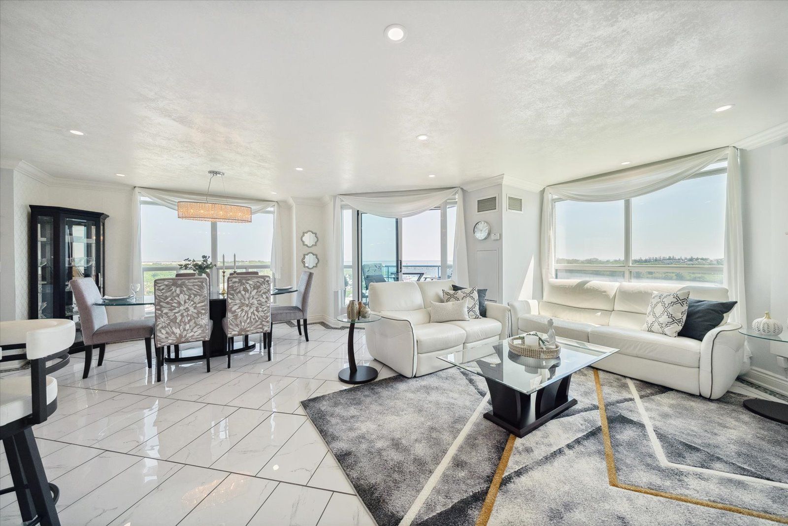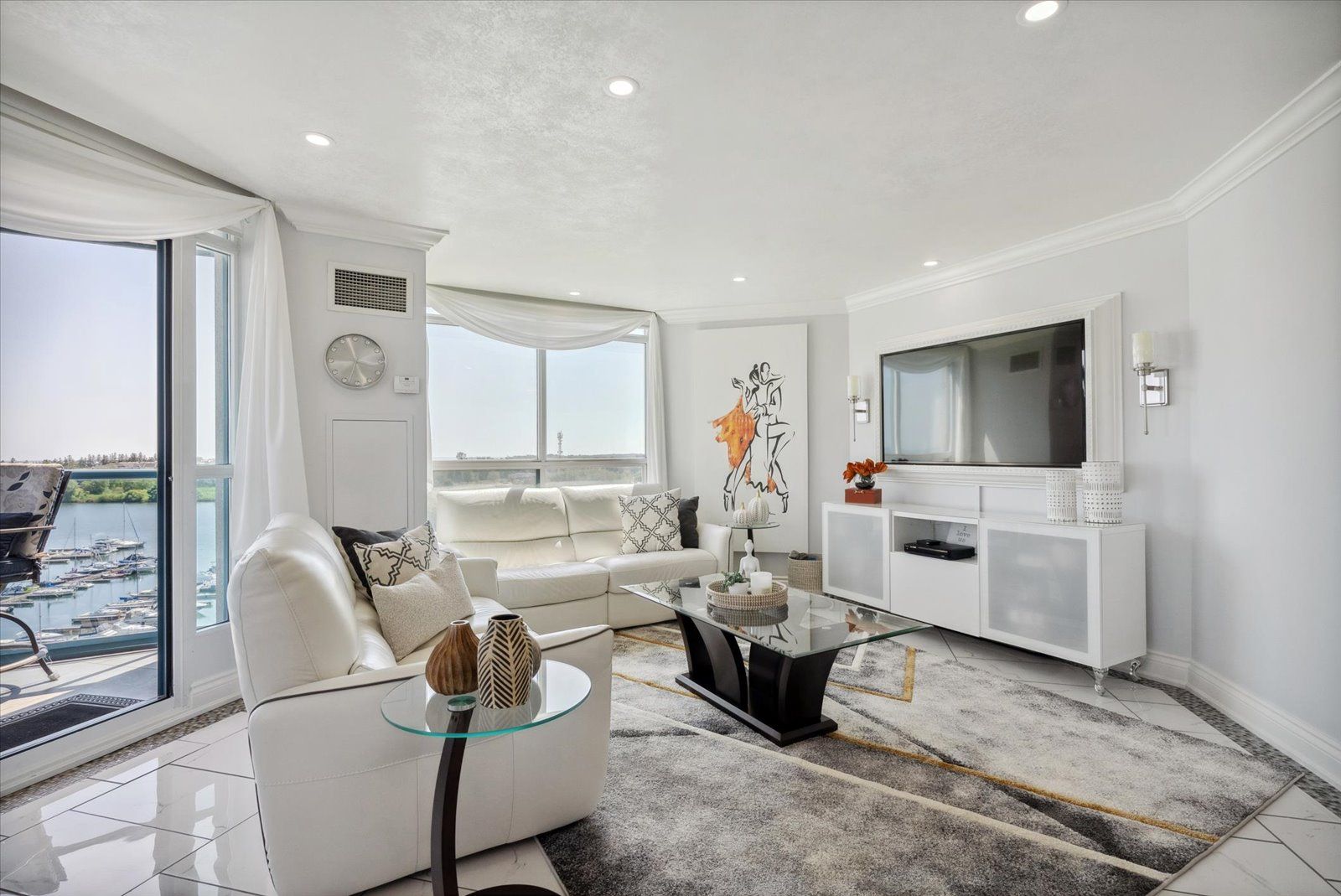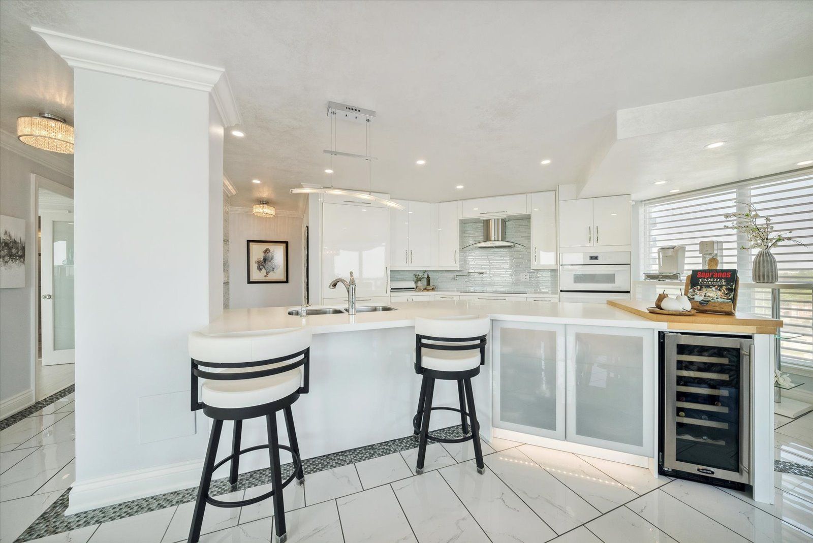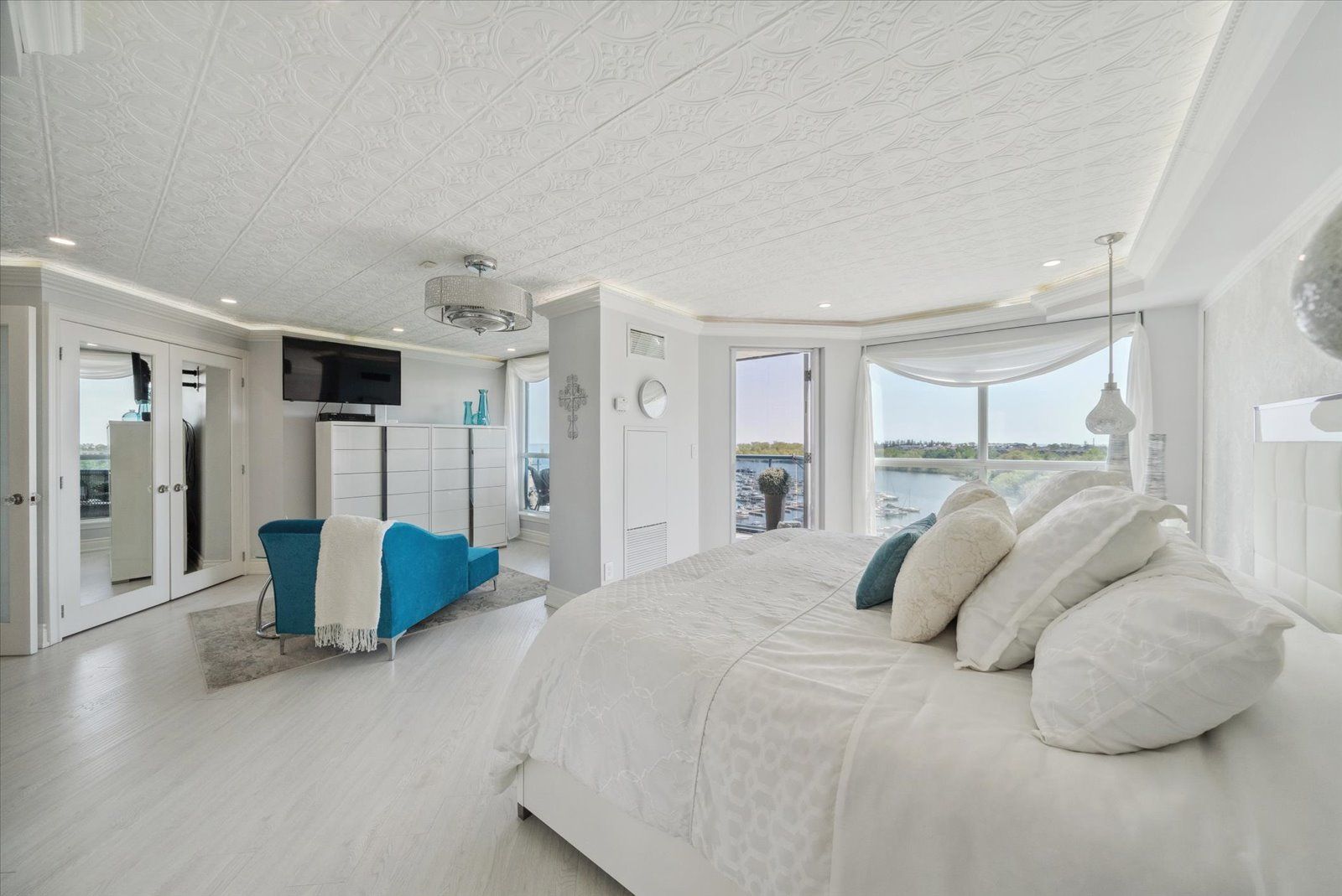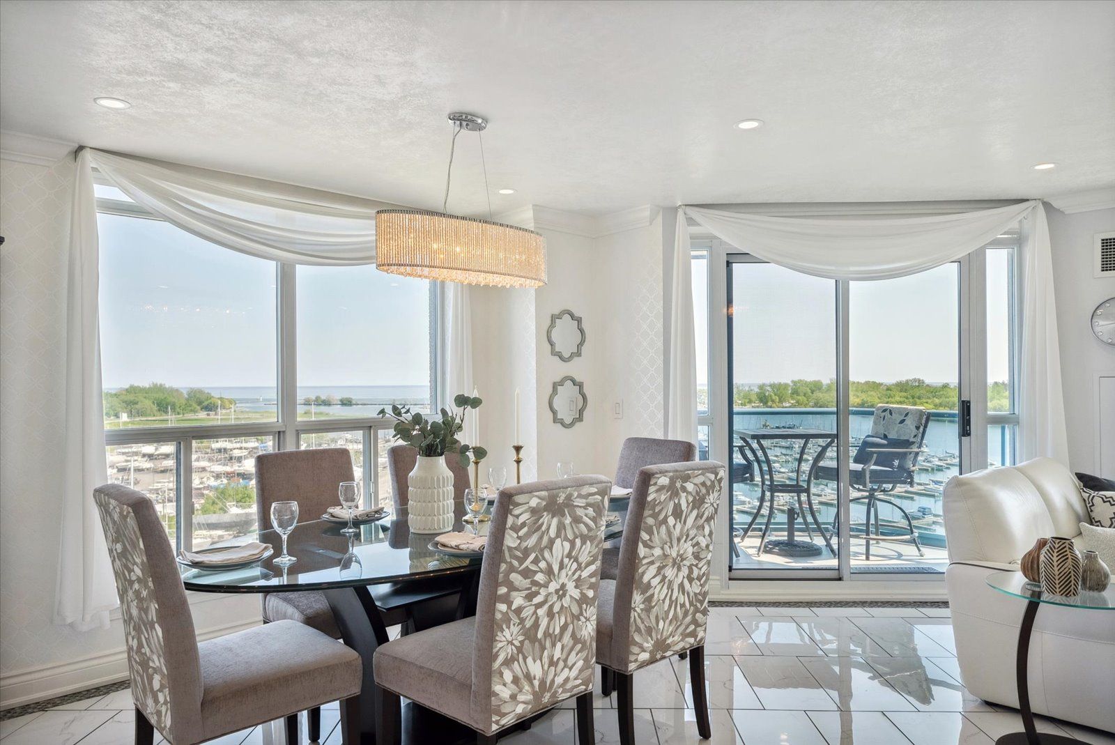 Step into luxury living at the "Yacht Club". This rarely-offered Resolute model is a 1630-square-foot suite situated in a building that has undergone significant updates, reflecting modern design aesthetics and a commitment to quality. Prepare to be mesmerized by the breathtaking panoramic south-facing water views of the Whitby Marina, providing a picturesque backdrop overlooking Lake Ontario. Offering an exceptional layout, this residence boasts 2 enormous bedrooms that were cleverly converted from 3 but can easily be transformed back, granting you the flexibility to adapt the space to your preference. Every inch of this condo has been tastefully renovated with stunning updates and meticulous attention to detail, showcasing exquisite taste and style. The open-concept design seamlessly blends the kitchen, dining, and living areas. Adorned with large windows, natural light floods the space, accentuating the awe-inspiring views and infusing a sense of serenty throughout.The Condo Fees Include Utilities, Providing A Worry-Free Lifestyle Where Water, Electricity, Heating, Internet Are Conveniently Covered. Amenities Include A Fitness Center, Pool, Hot Tub, Roof-Top Patio, 2 Parking Spaces, And A Locker.
