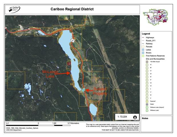 2.87 sunny acres w/ 2 creeks, corner lot by McLeese Lake! This Family home has 4 Bedrms 2 Bathrms. Lots of updates & roof (2016). The large 12x40 sundeck is perfect for entertaining. Radiant in-floor heat by Hi-Eff propane. 23'6x21 Double Garage. Spacious backyard is mostly level, great for kids, pets. RV parking. The land is fenced into 2 sections. Located beside Highway 97 provides convenient access. just a short drive to Gibraltar Mine. The property is +/- 40 meters from the McLeese Lake Boat launch & Rec. Centre. Close to Crown land, offering lots of recreational opportunities for you to enjoy! Only 38km to Williams Lake. Hi Speed Internet (new). Quick & Easy Possession!