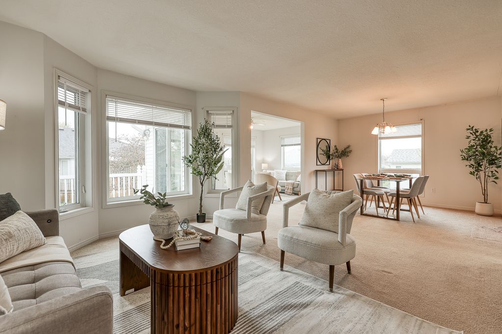 Enjoy carefree living at 9 East Morningside Circle, a custom Balmoral model in the Active Adult Lifestyle Community of Morningside! Nestled on a private, superior lot, this bright home offers 1461 sq ft of living space complete . Enjoy the 2 well-sized bedrooms and 2 bathrooms, including a primary bedroom with ensuite 4-piece bathroom. The main bathroom has been nicely updated with stylish tile work and a glass shower. The kitchen comes equipped with a new fridge and ample cabinet space plus the convenience of a main floor laundry and easy access to the open living room and dining area. Adjacent to the living room, the sunroom offers a serene retreat, ideal for enjoying your morning coffee or a quiet afternoon with a book. A large back deck also provides a large storage area. Parking is never an issue with a single-car garage and a double-wide driveway as well as visitors parking nearby. The Village Centre and The Shed amenities enhance the lifestyle with an indoor swimming pool, fitness room, shuffleboard courts, woodworking shop, library, and more. Lawn maintenance, snow removal and more are included. Schedule your viewing today and discover all this wonderful community has to offer!