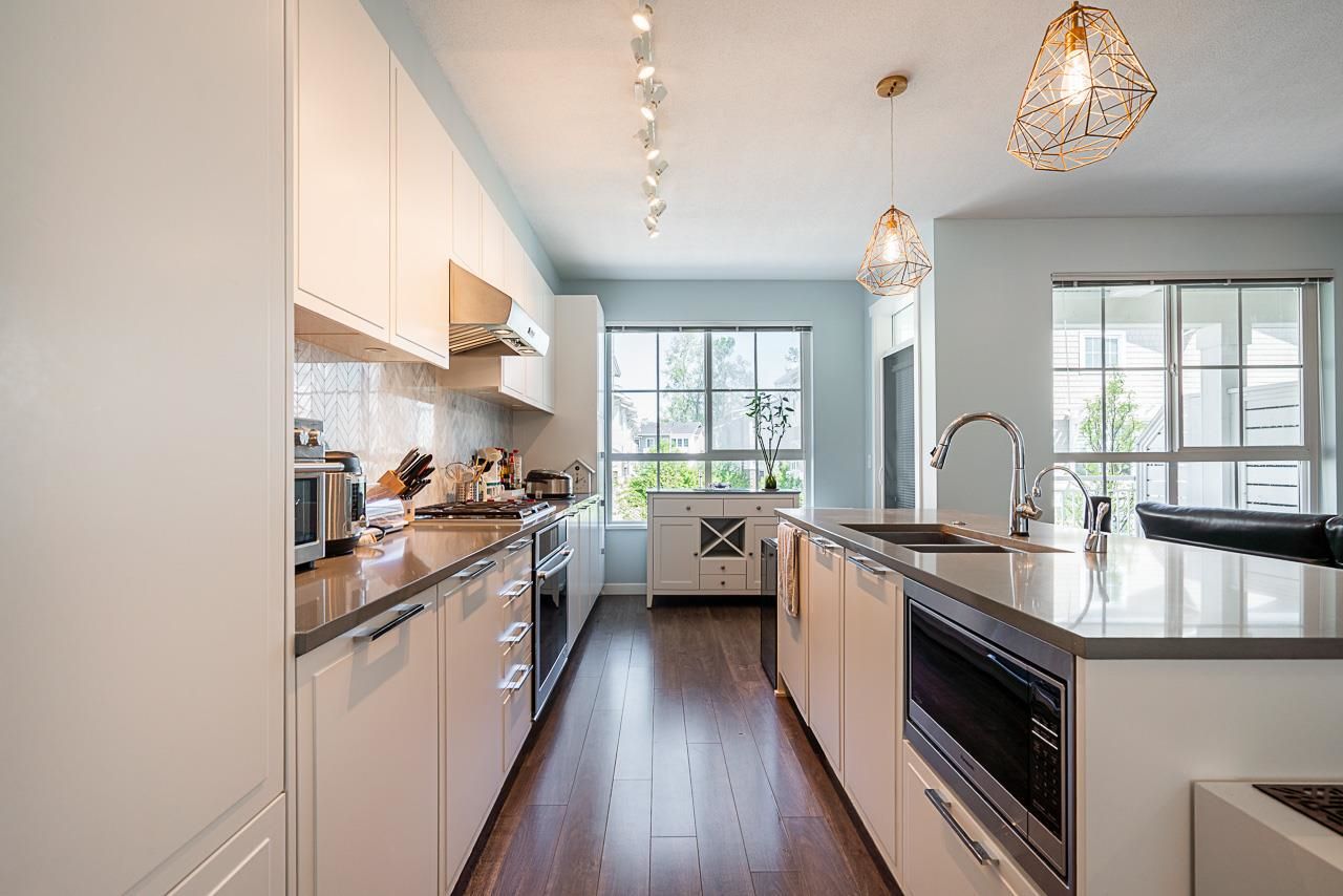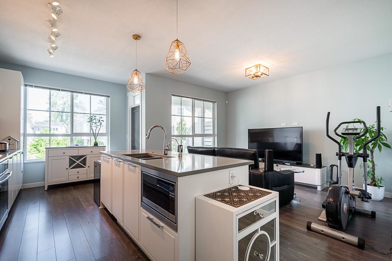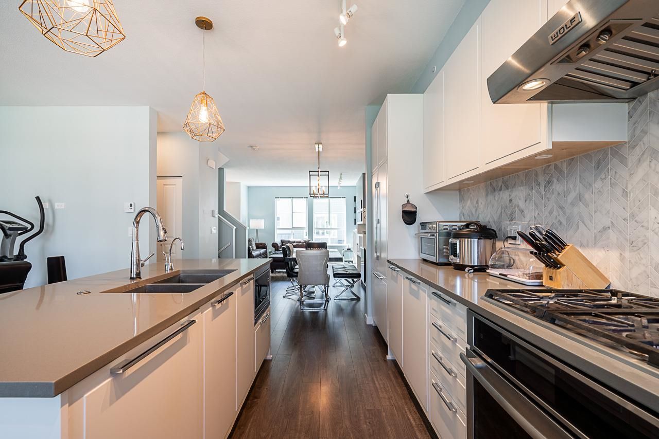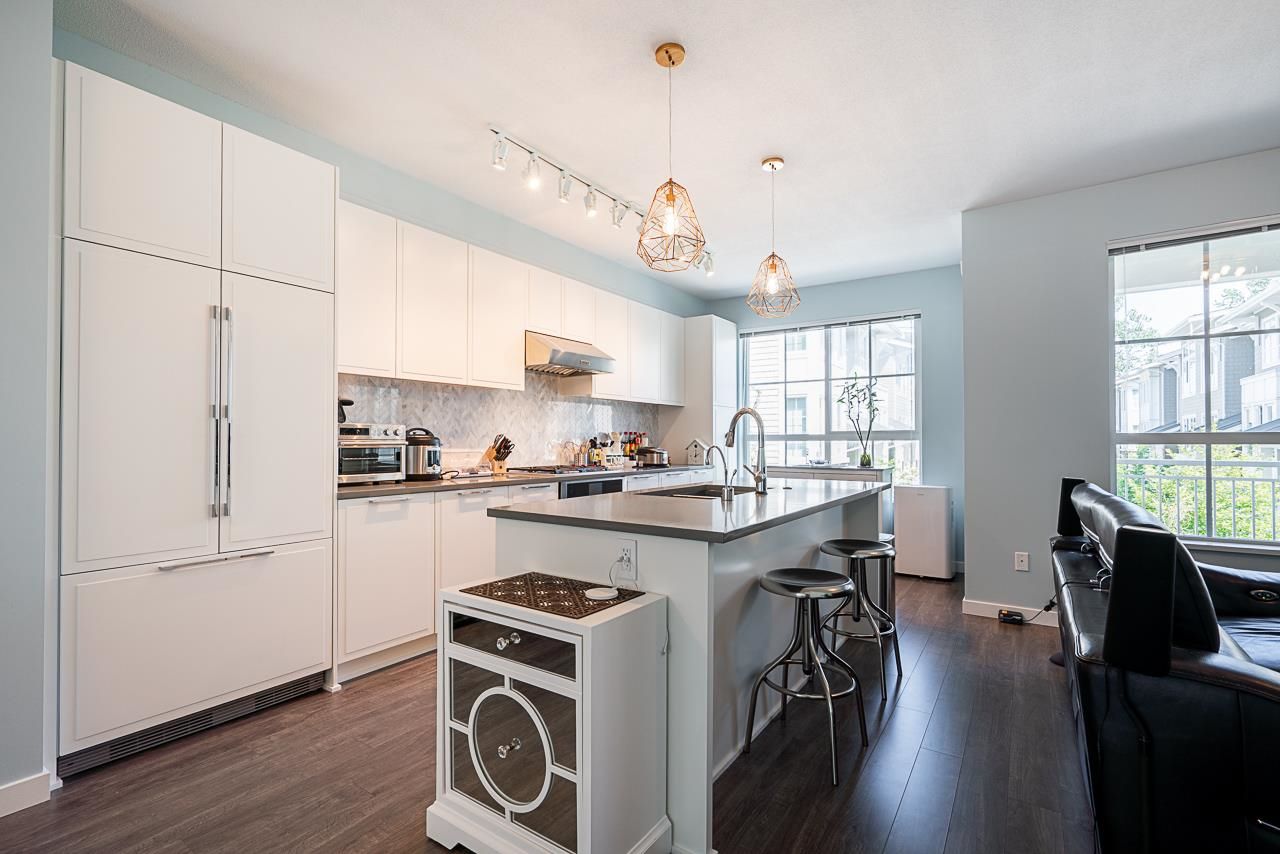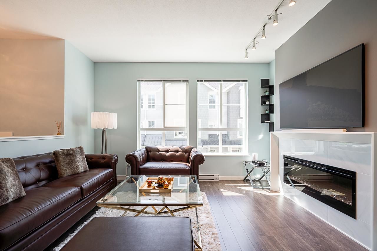 Welcome to Beaufort Landing by Polygon in the community of Hampton Cove. This 4 bedroom 3.5 bathroom offers over 2000sf of living space with N/S facing. This home features over height main floor ceilings,laminate flooring, electric fireplace and balcony off the kitchen. The gourmet kitchen boasts custom wood cabinetry, large island, upgraded high end appliances. Upgraded toilet bowl & security system. The master bedroom comes with over height ceiling with a large customs walk-in closet. Practical laundry room. 4th bedroom/games room on the bottom floor with a full bathroom. Side-by-side double car garage with customized built-in storage and flooring. This complex also features resort-style clubhouse. Steps away from the marina and golf course.