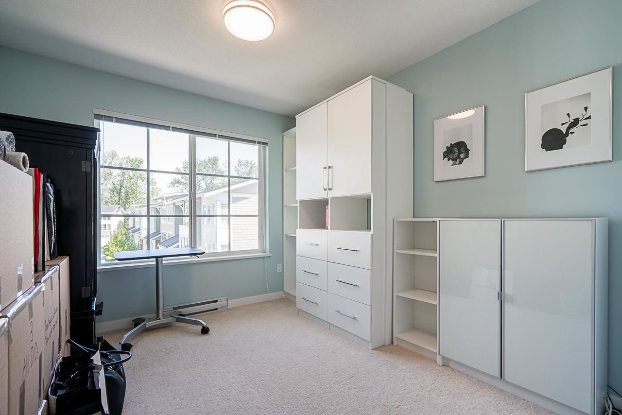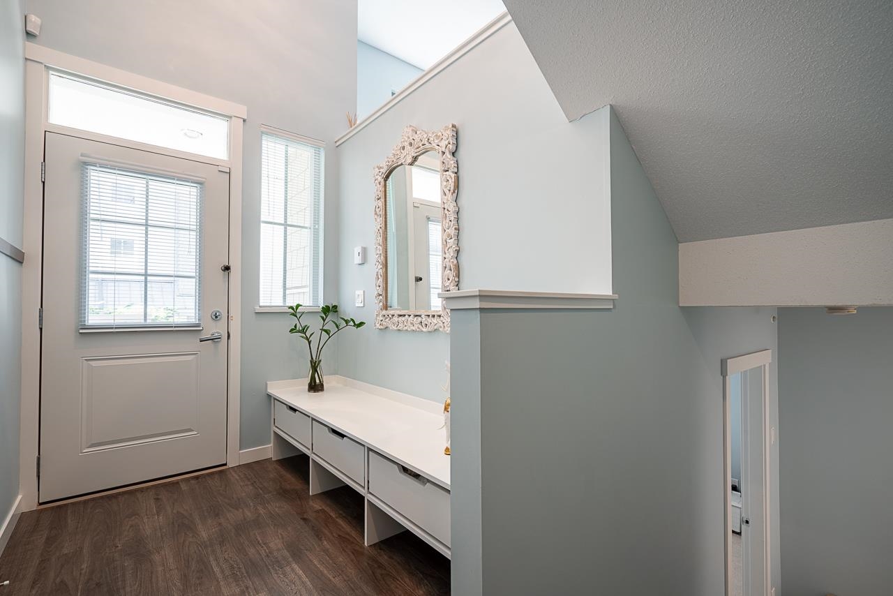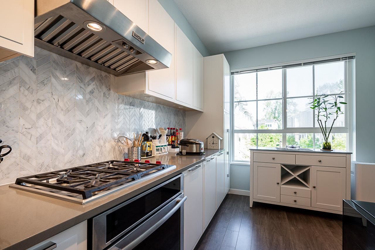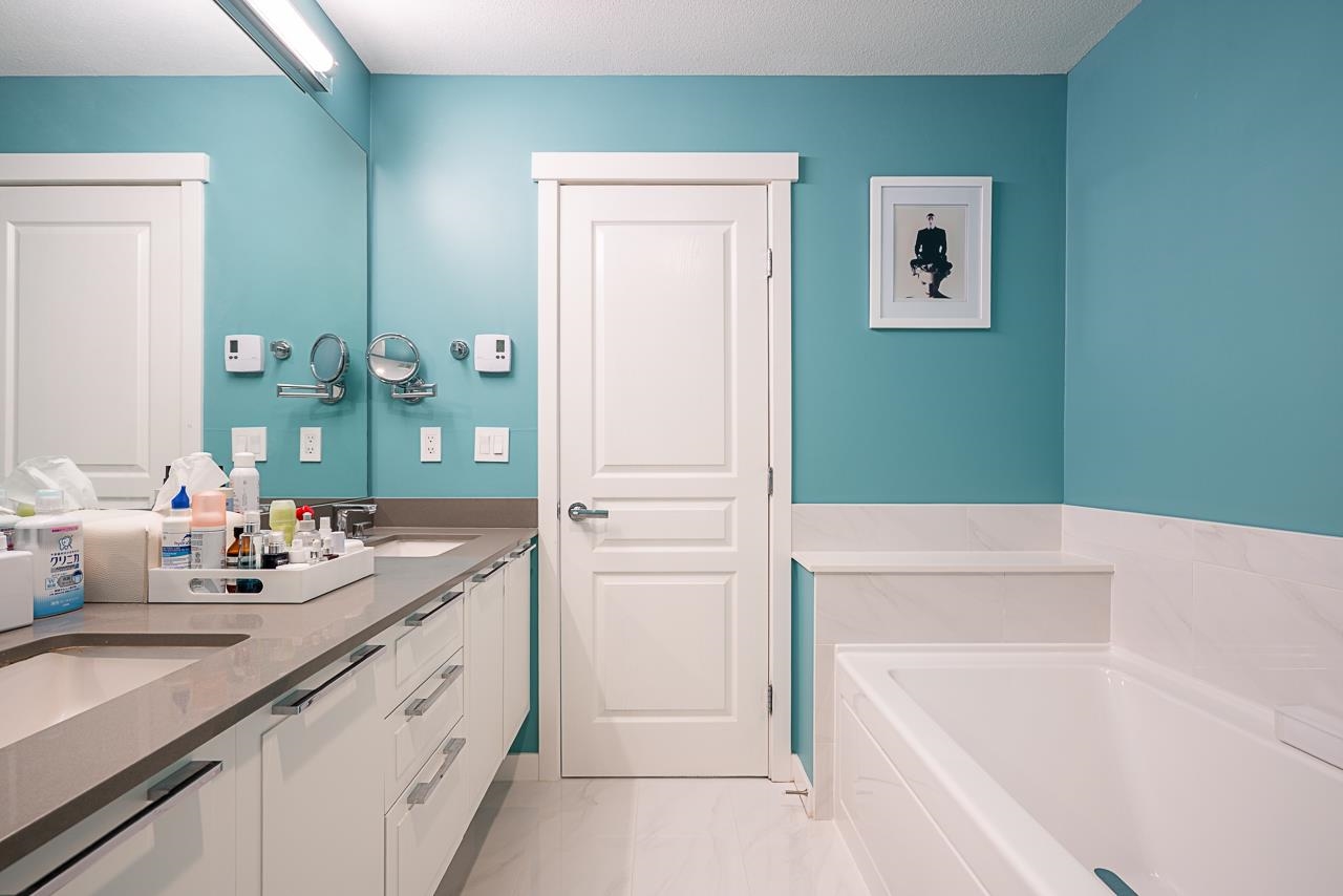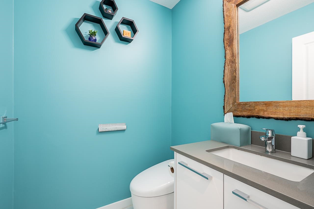 Welcome to Beaufort Landing by Polygon in the community of Hampton Cove. This 4 bedroom 3.5 bathroom offers over 2000sf of living space with N/S facing. This home features over height main floor ceilings,laminate flooring, electric fireplace and balcony off the kitchen. The gourmet kitchen boasts custom wood cabinetry, large island, upgraded high end appliances. Upgraded toilet bowl & security system. The master bedroom comes with over height ceiling with a large customs walk-in closet. Practical laundry room. 4th bedroom/games room on the bottom floor with a full bathroom. Side-by-side double car garage with customized built-in storage and flooring. This complex also features resort-style clubhouse. Steps away from the marina and golf course.