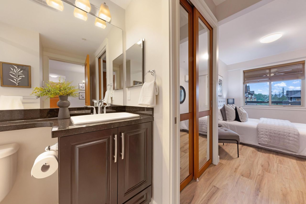 Welcome to Yorkson Walnut Ridge 2. A charming building with a gym & amenity room in a desirable area of Langley. Close to all amenities, but far enough that it's quiet. West facing unit with unobstructed view and AC. Heated floors fogless mirror, and soaker tub in the bathroom. Granite countertops, stainless steel appliances, & an enclosed deck/solarium so you can enjoy it year round. New luxury vinly flooring, fridge, garborator, and paint. Driving, Willowbrook Mall 12 mins away, other retail, services, and highway 1 four minutes away. Walking distance to elementary and middle schools and a short drive to high schools. Sports fields, dog park, & bike park all walking distance as well. 2 pets allowed, 2 parking (1 EV Ready), 1 storage. A must see! Open Houses Sat/Sun May 24/25 (1-3).