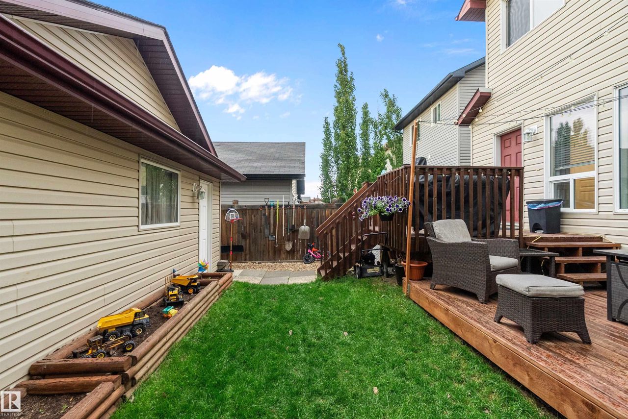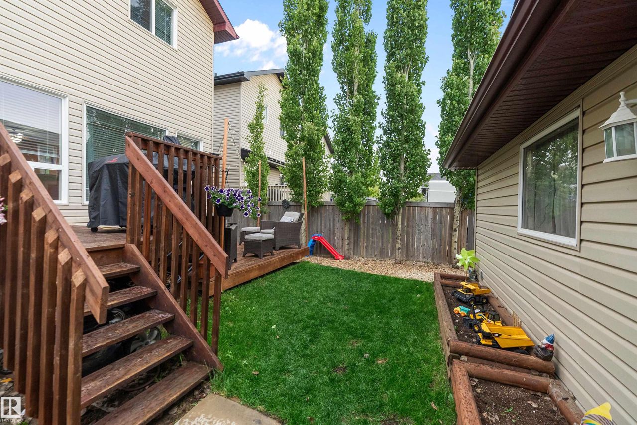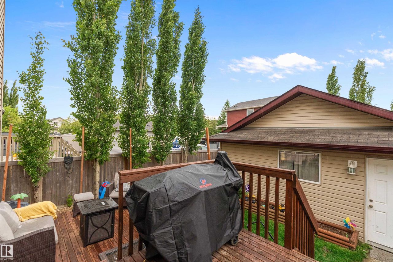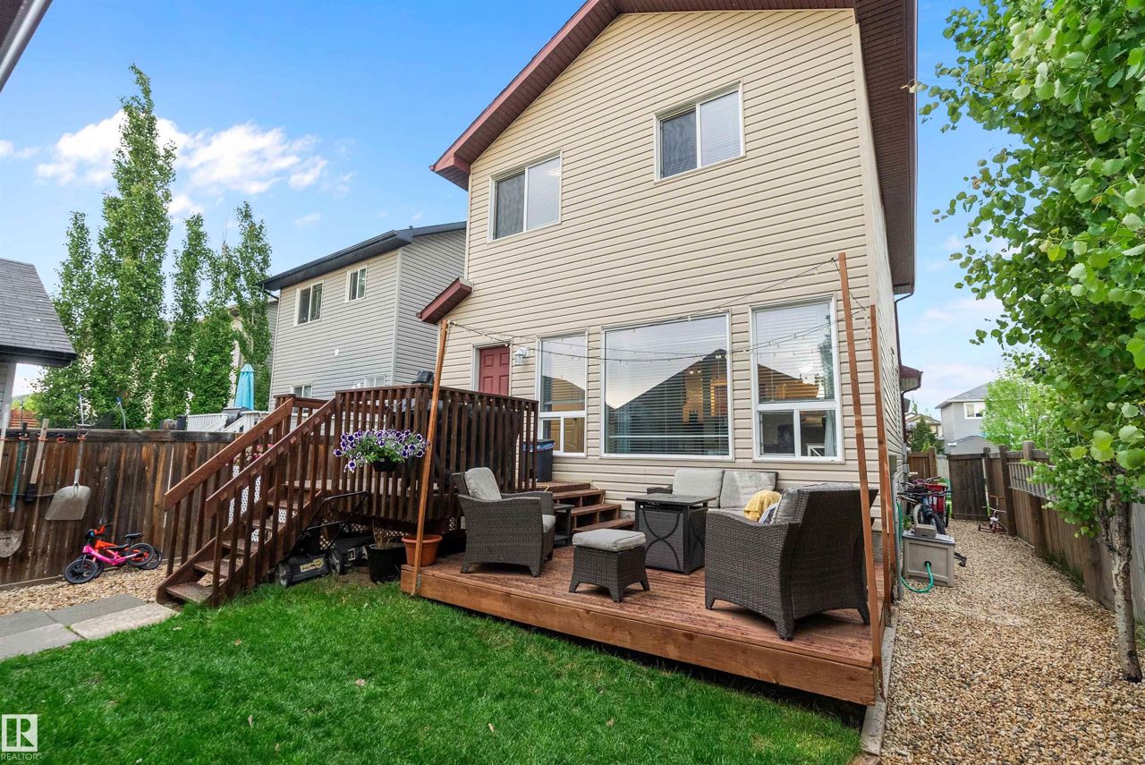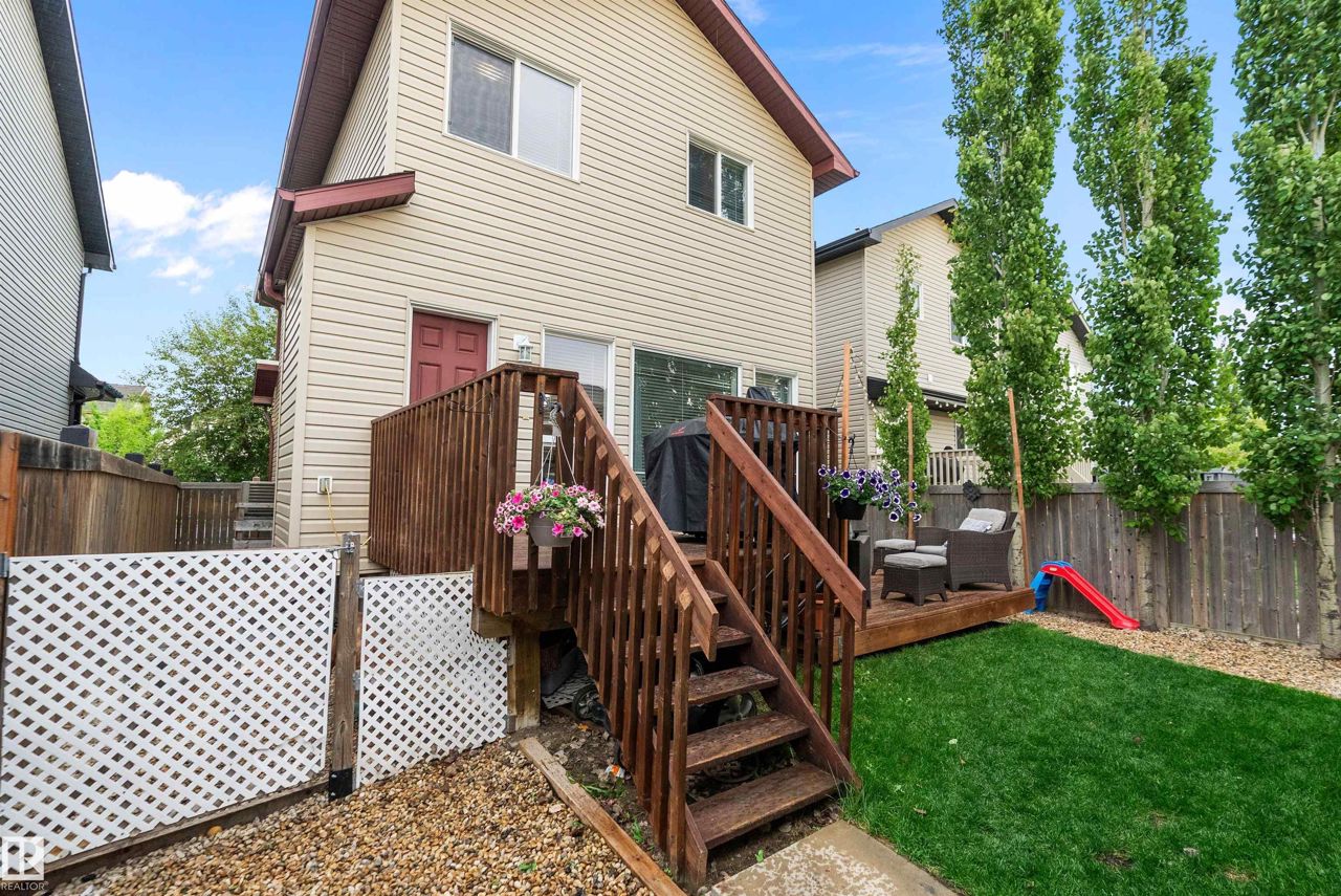 Discover this beautifully maintained 1500+ sq ft 2-storey former show home located in the sought-after community of West Haven, Leduc. With charming curb appeal and a welcoming front porch, this home offers comfort, space, and style. The main floor features a bright and open layout with a spacious living room, a kitchen with an eat-at island and plenty of cabinetry, a dedicated dining area, a versatile den or home office, and a convenient half bath. Upstairs, you'll find a laundry room, two generous guest bedrooms, a 4pc main bathroom, and a lovely primary suite complete with a walk-in closet and 4pc ensuite. The unfinished basement is a blank canvas—ready for your personal touch. Outside, enjoy a large backyard with a huge deck, perfect for relaxing or entertaining. The double detached garage provides ample parking and storage. Recent updates include a new washer, dishwasher, and microwave (2024), and a hot water tank (2022). A perfect family home with room to grow!