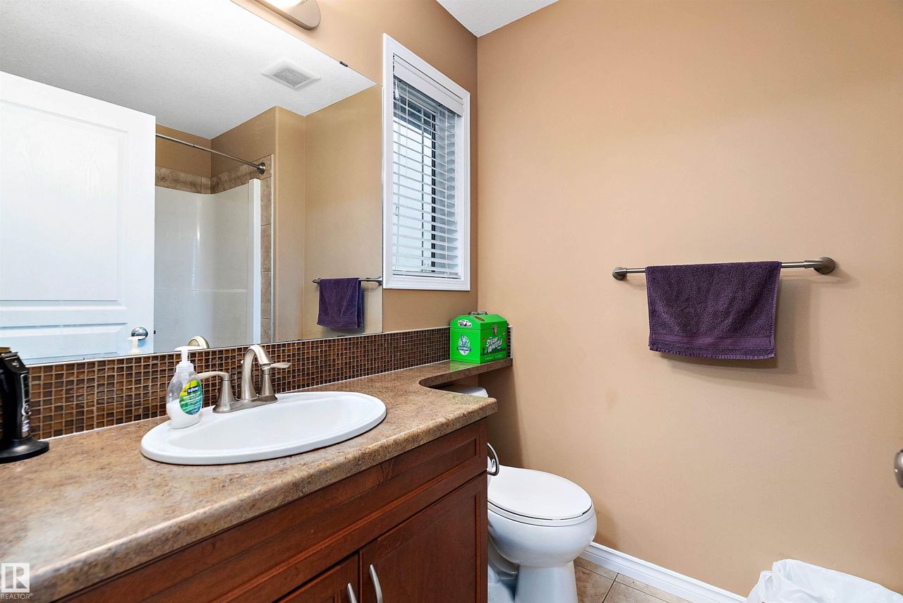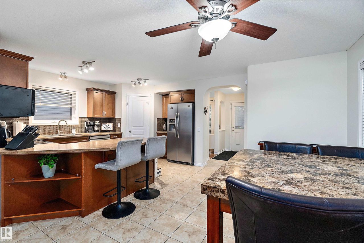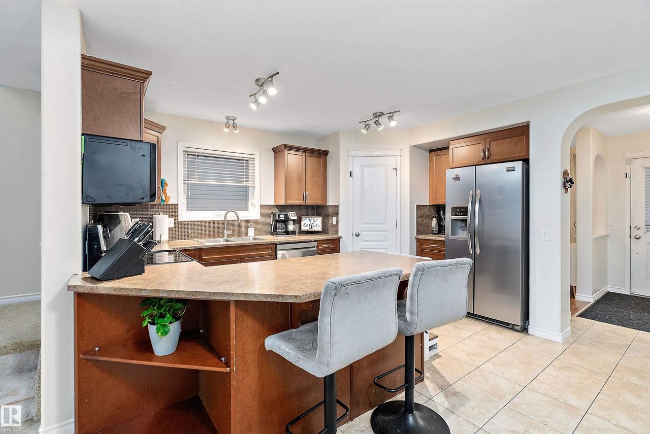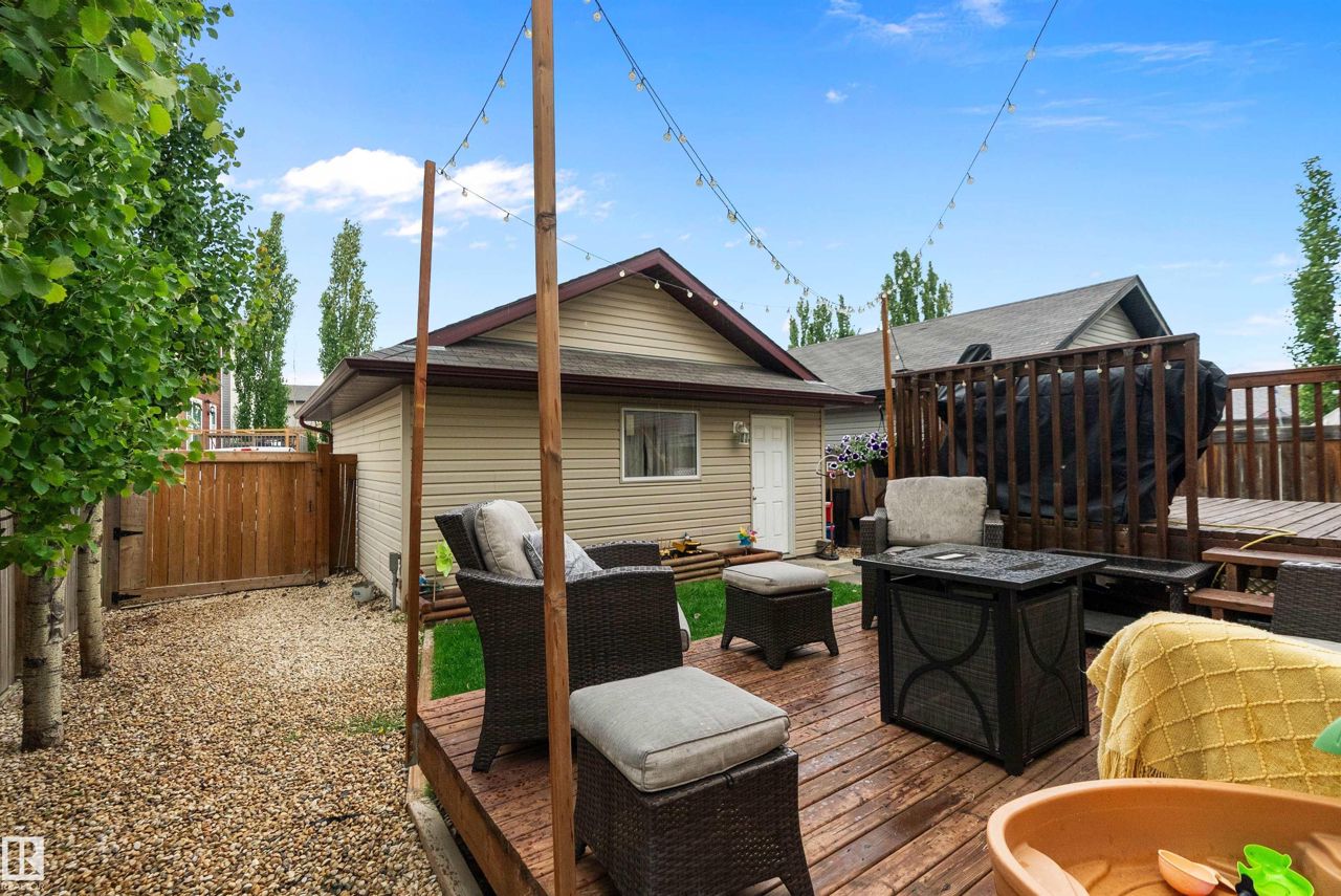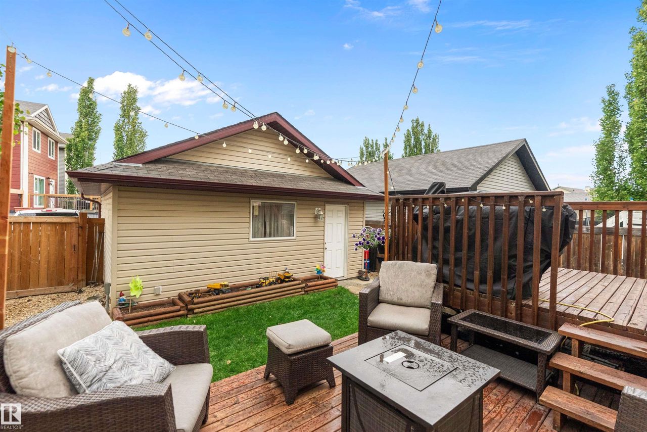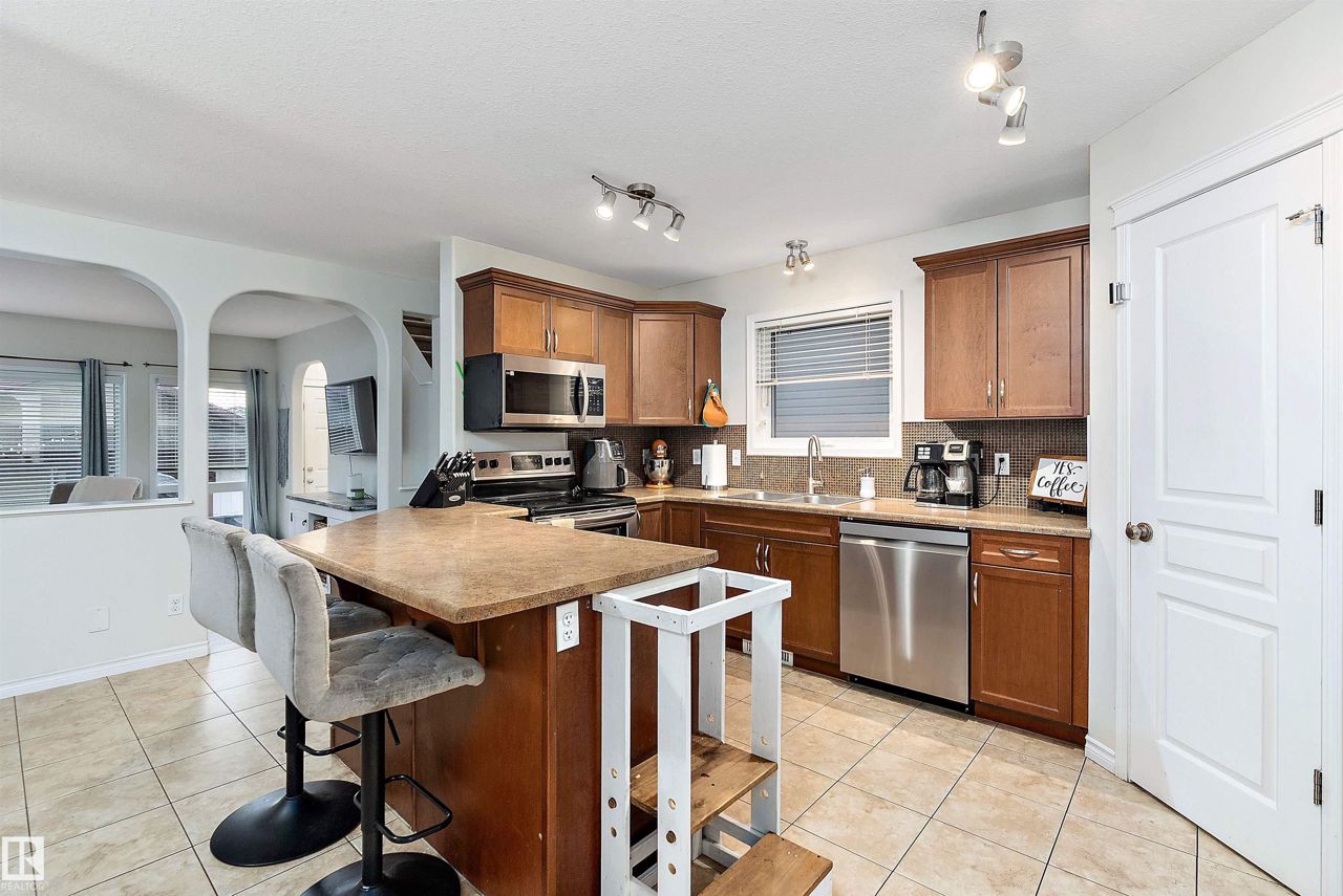 Discover this beautifully maintained 1500+ sq ft 2-storey former show home located in the sought-after community of West Haven, Leduc. With charming curb appeal and a welcoming front porch, this home offers comfort, space, and style. The main floor features a bright and open layout with a spacious living room, a kitchen with an eat-at island and plenty of cabinetry, a dedicated dining area, a versatile den or home office, and a convenient half bath. Upstairs, you'll find a laundry room, two generous guest bedrooms, a 4pc main bathroom, and a lovely primary suite complete with a walk-in closet and 4pc ensuite. The unfinished basement is a blank canvas—ready for your personal touch. Outside, enjoy a large backyard with a huge deck, perfect for relaxing or entertaining. The double detached garage provides ample parking and storage. Recent updates include a new washer, dishwasher, and microwave (2024), and a hot water tank (2022). A perfect family home with room to grow!